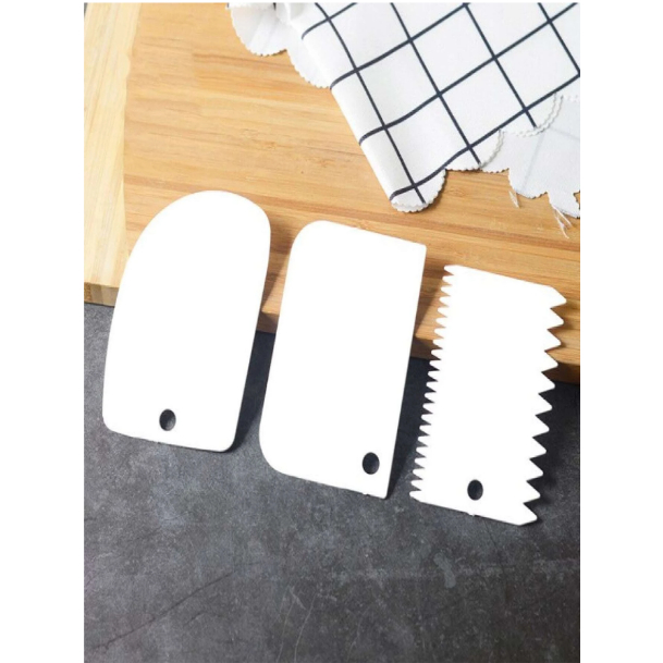 Kit 3 Espátula Para Bolo Decorativa Alisadora Textura Chantilly Confeiteiro Cobertura Creme Recheio Cortador de Massa