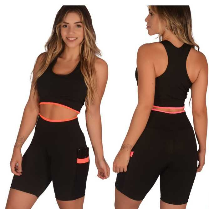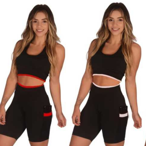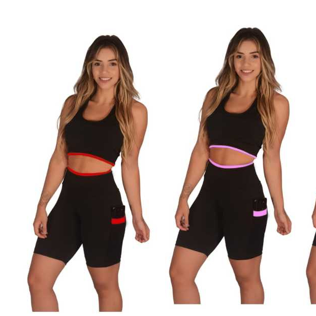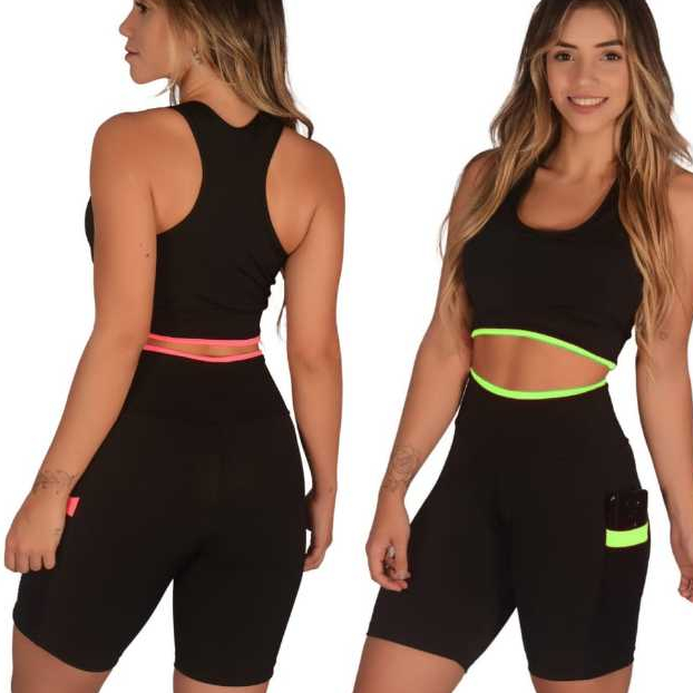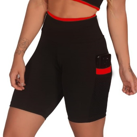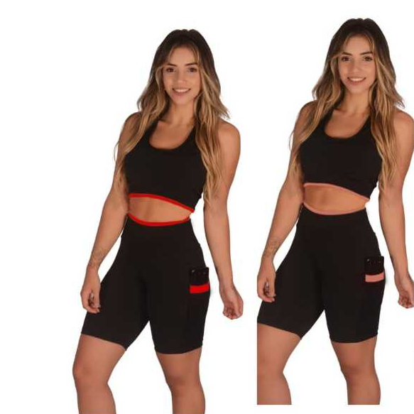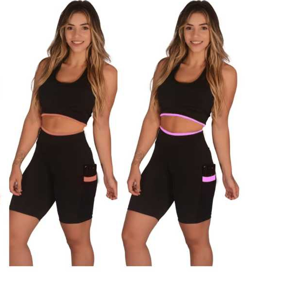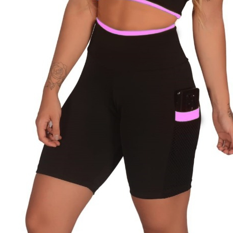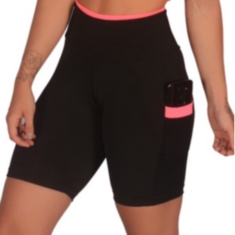 Kit 2 Short Feminino Fitness Academia com Bolso de Tela Porta Celular