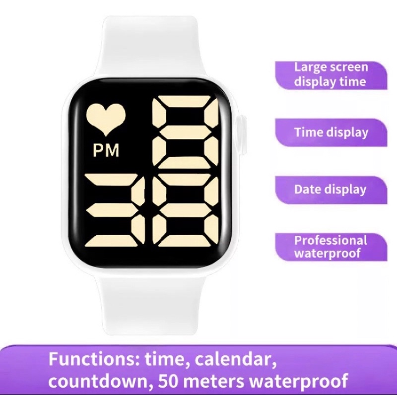relógio digital branco quadrado a prova d’água
