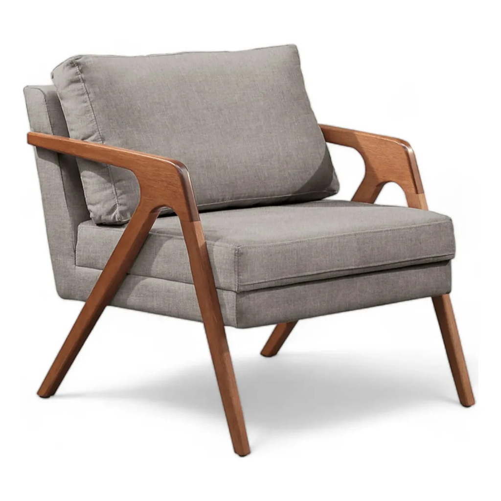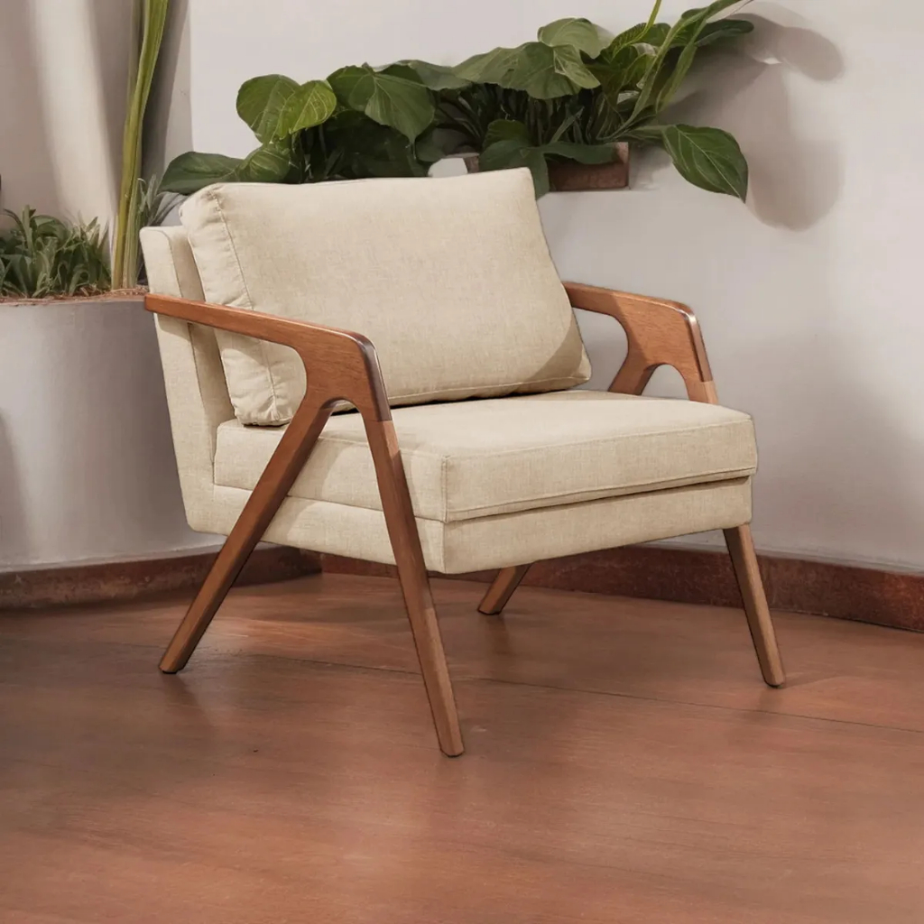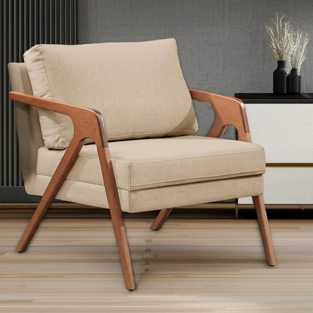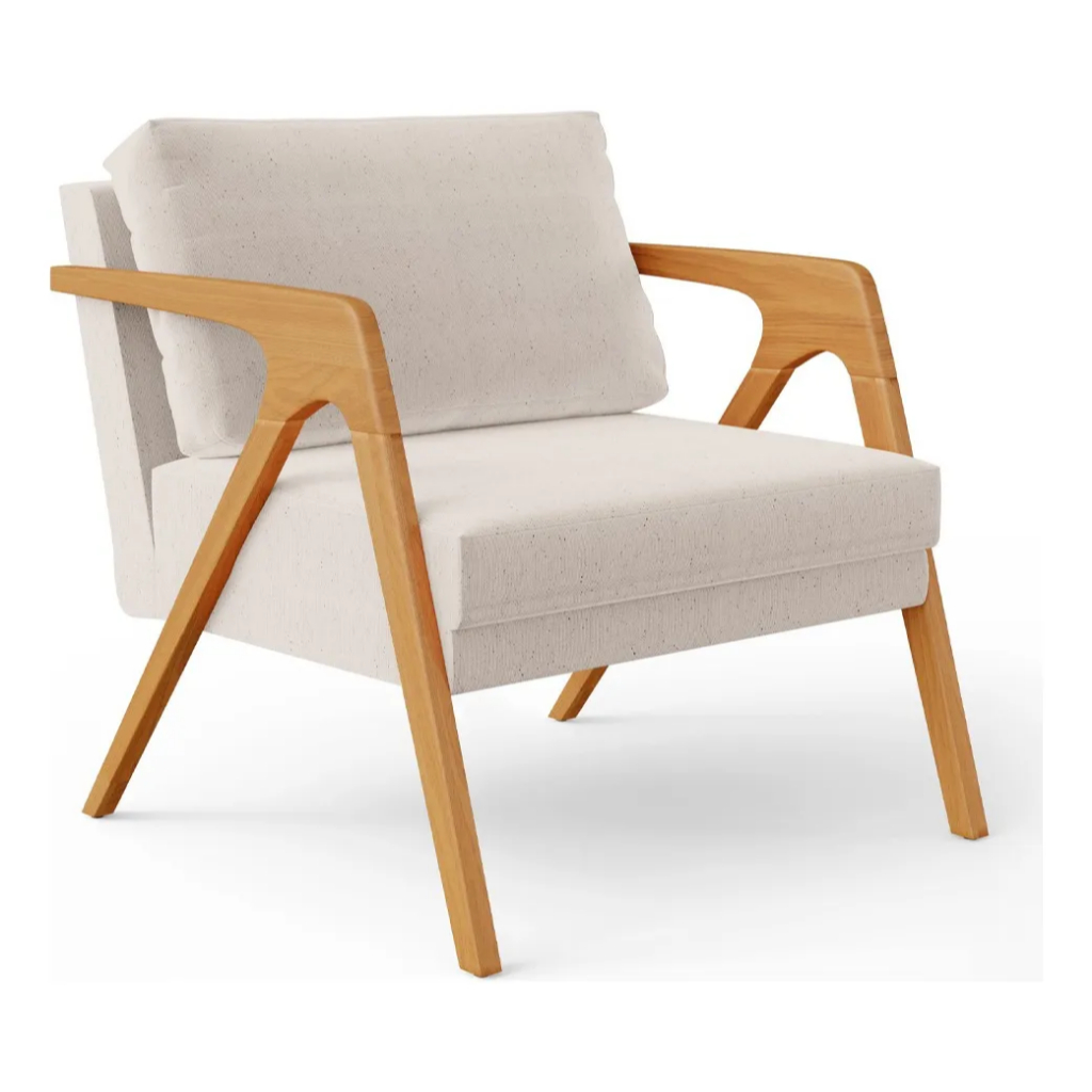 Poltrona Mona Consultório Decorativa Reforçada Cadeira Para Recepção Clinica e Sala Jantar Luxo em Linho Pés Madeira