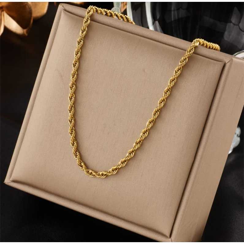 Conjunto Feminino Corrente e Pulseira Trançado Cordão Baiano 45 cm banhado a ouro 18k Dourado