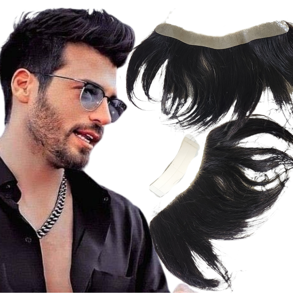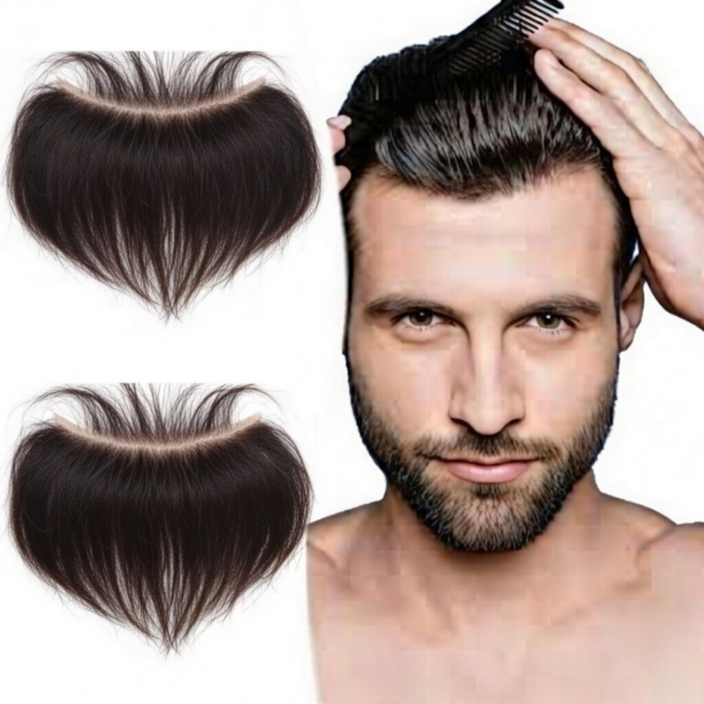 Falsa franja homem cabelo 100% humano, entrada, falha, calvície mini protese