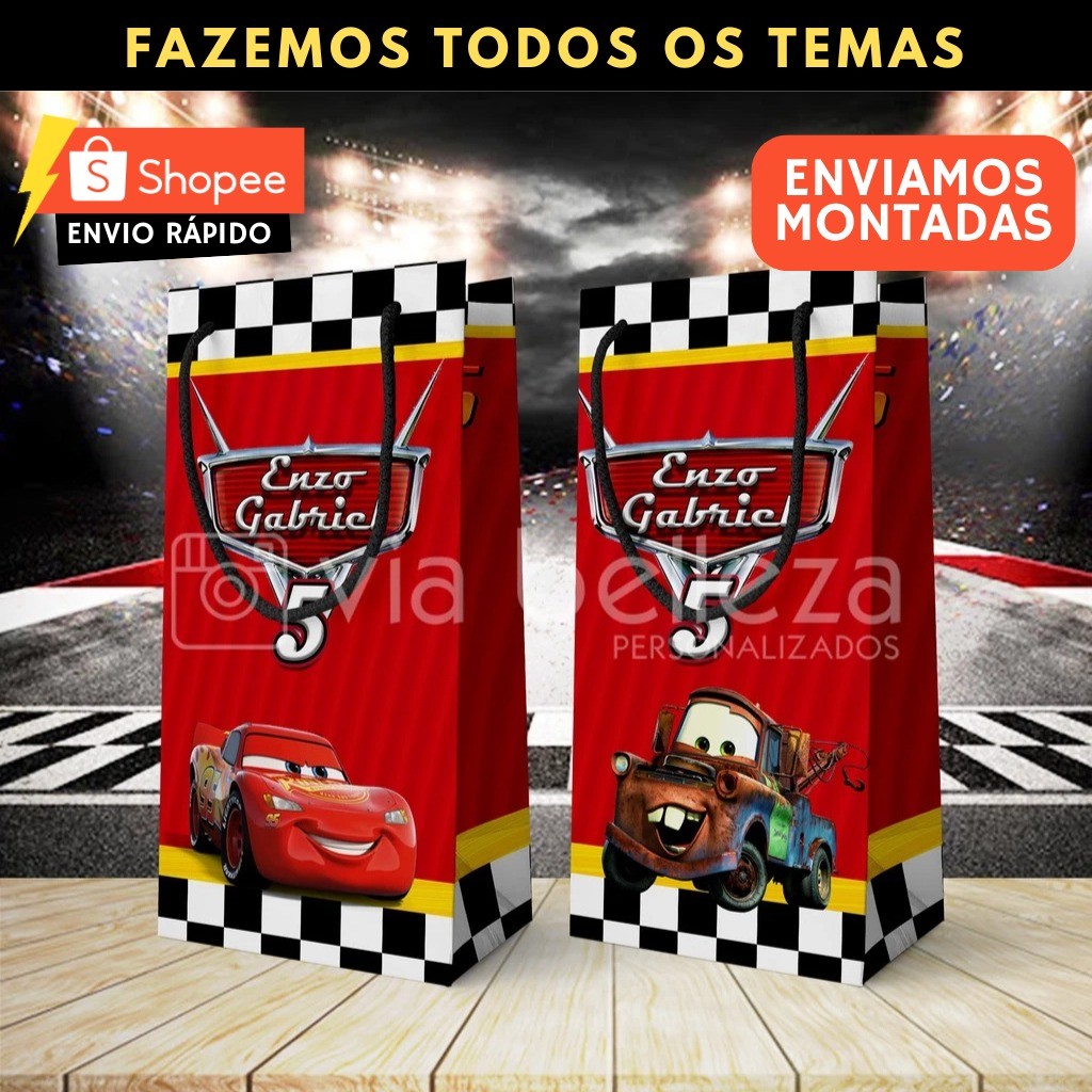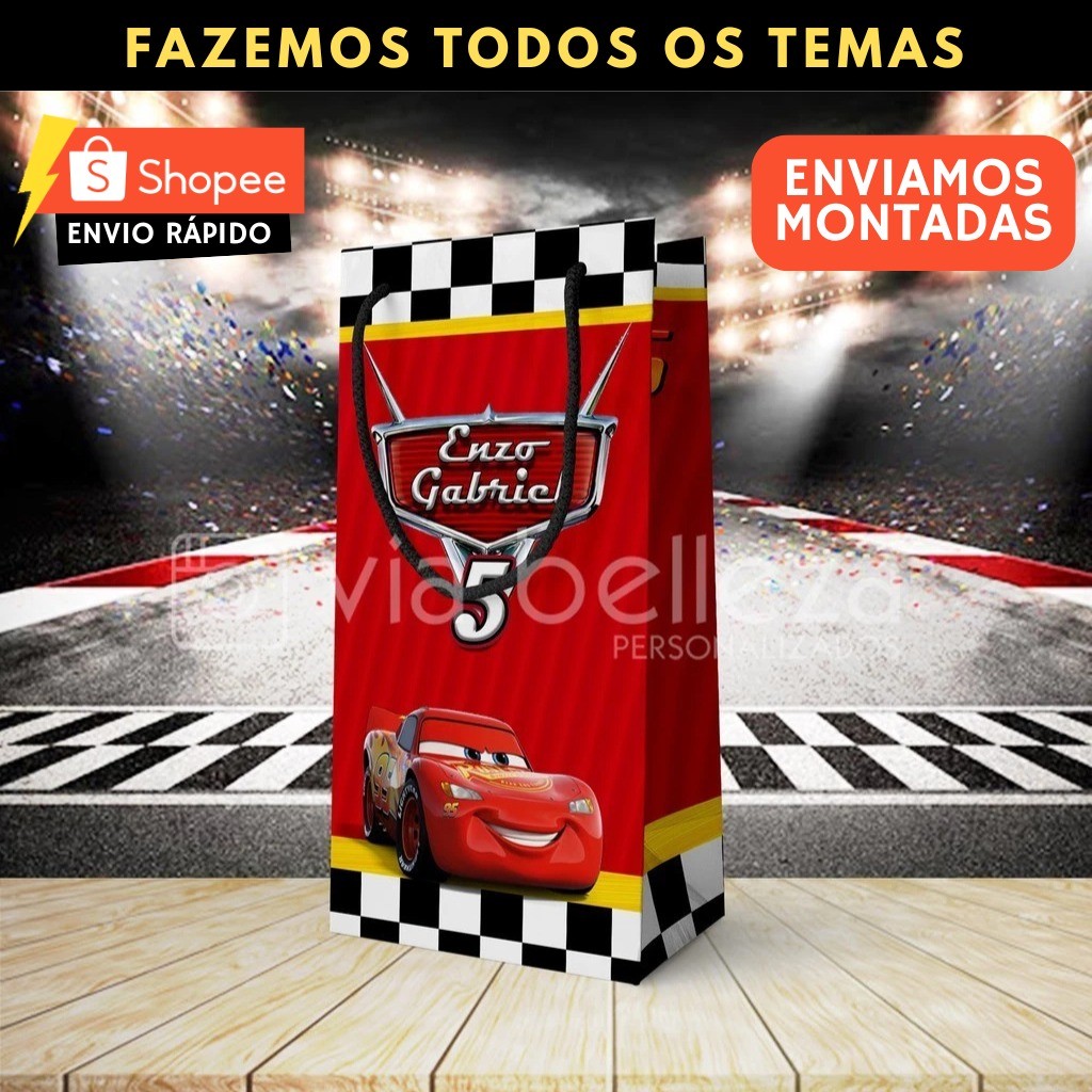 Sacolinha Personalizada Carros para Aniversário • Lembrancinha Festa Infantil • Todos os Temas • Envio Rápido 🎉