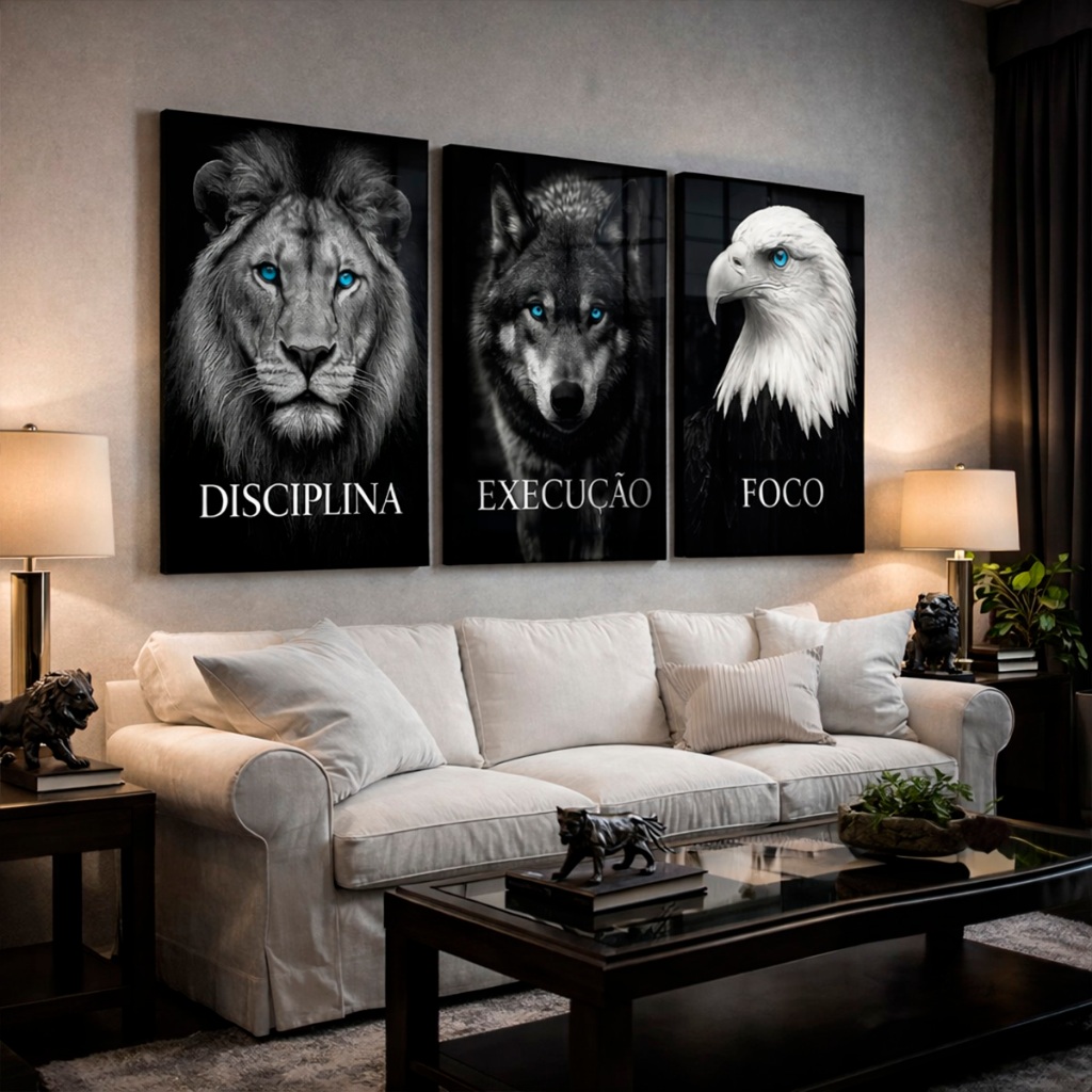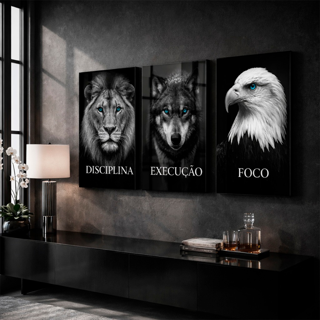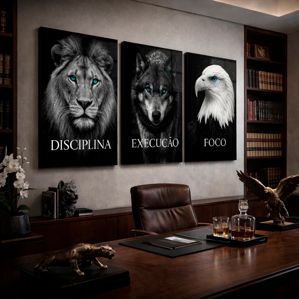 Quadro Decorativo Disciplina Foco Execução Escritório Hall Black 120x60