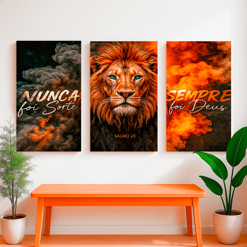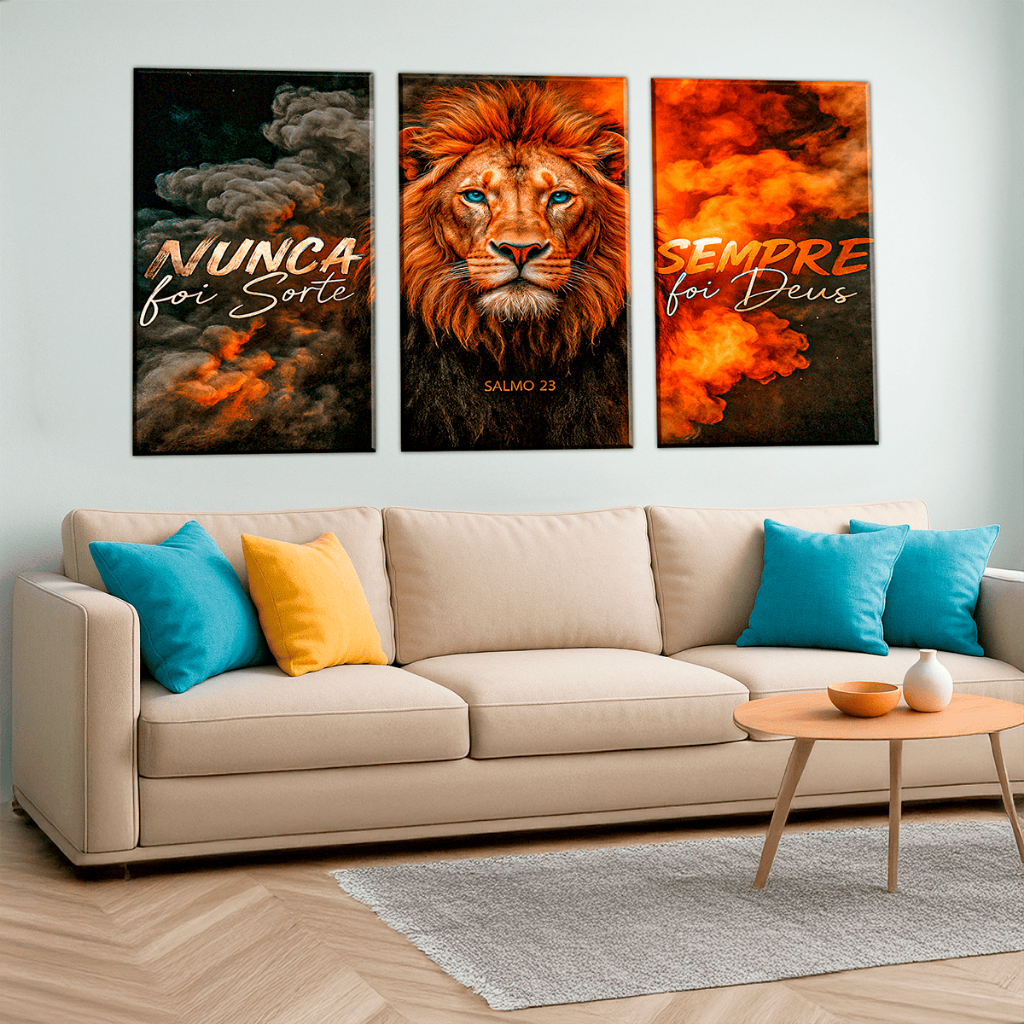 Quadro Decorativo Nunca foi Sorte Sempre Foi Deus Fumaça Leão 120x60