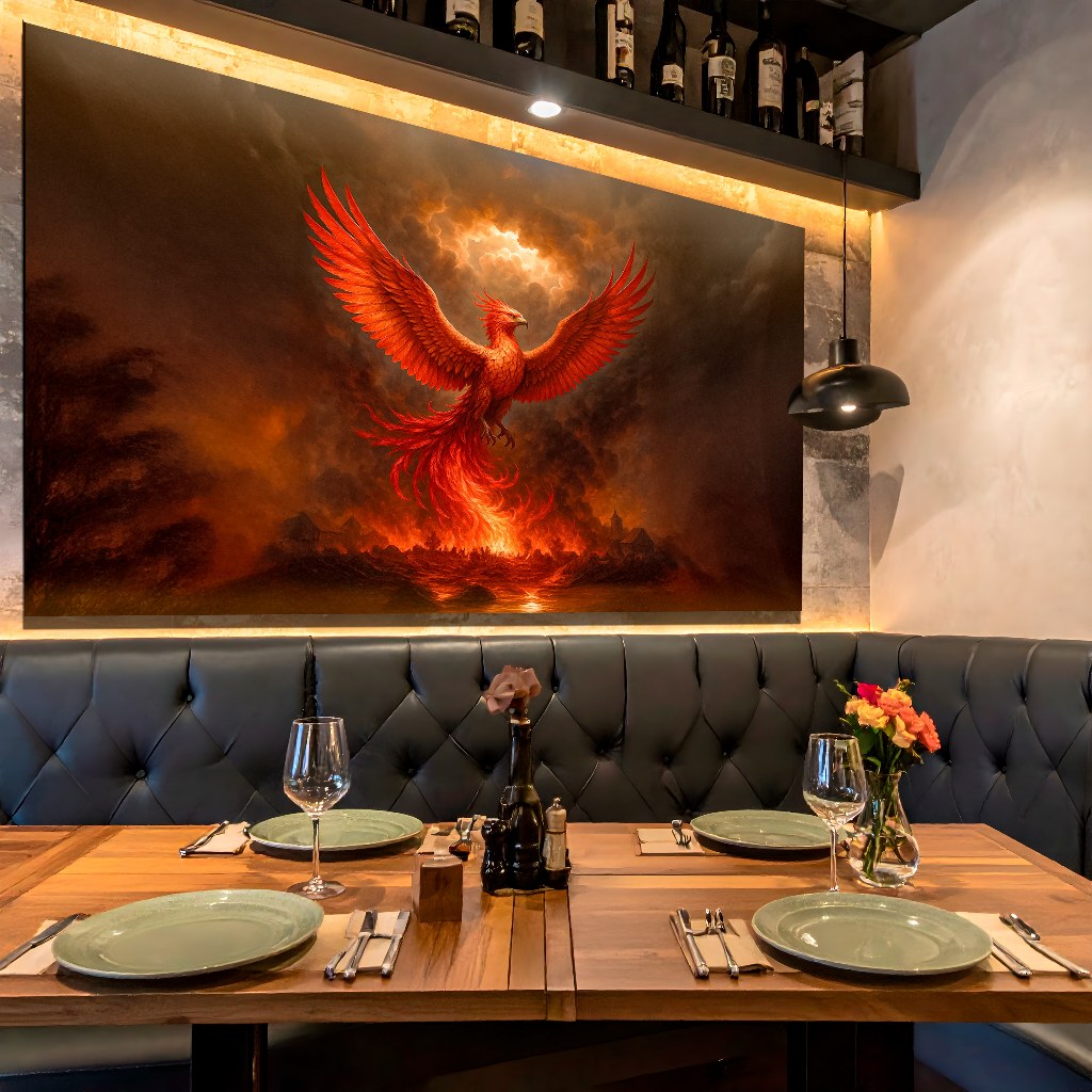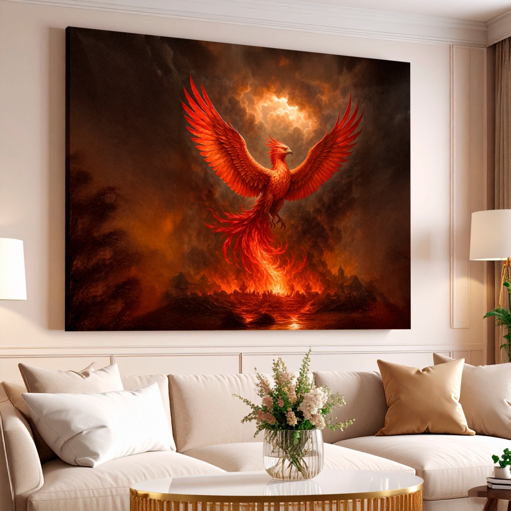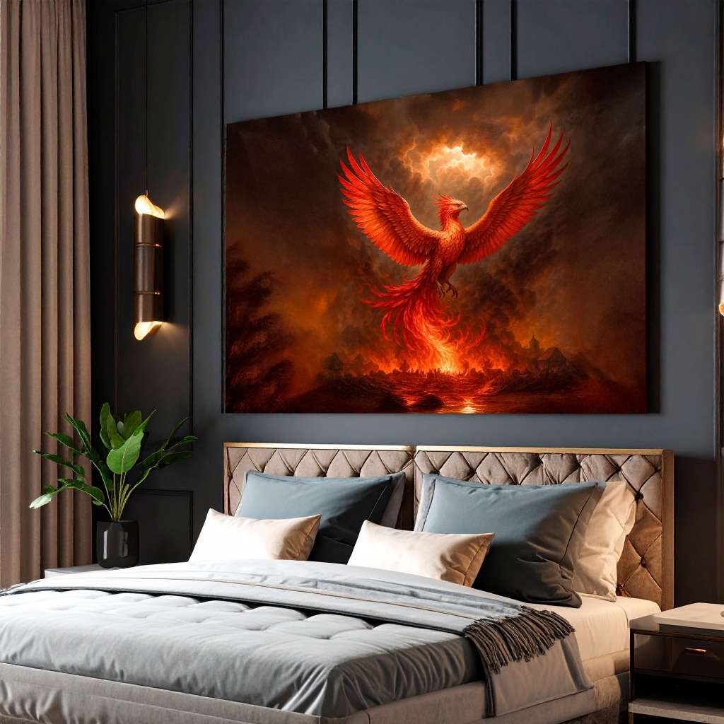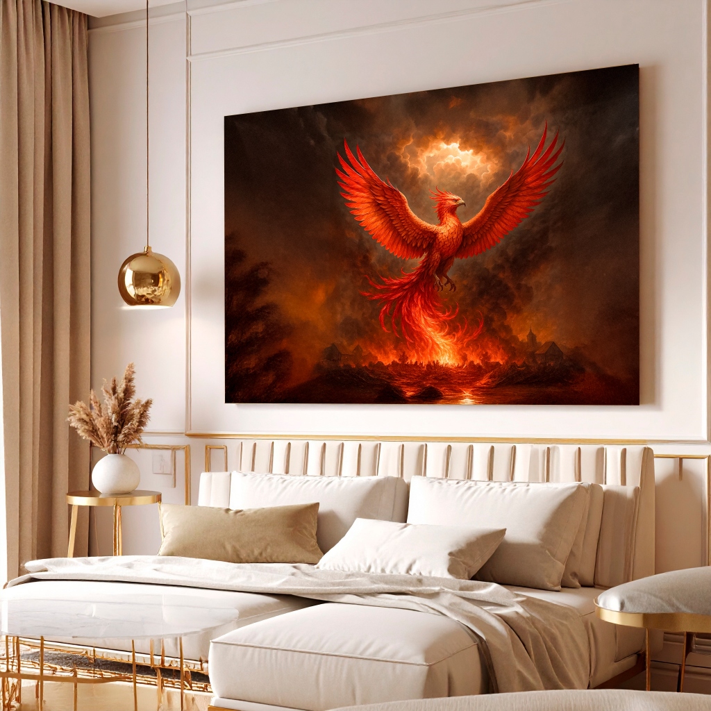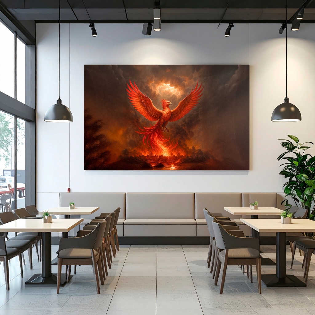 Quadro Decorativo Painel Fenix Fogo Mitologia Sala Quarto Cafeteria 110x80
