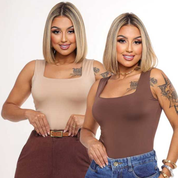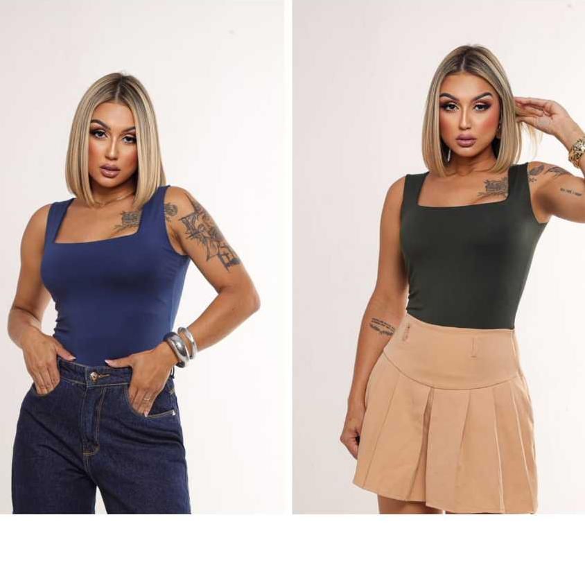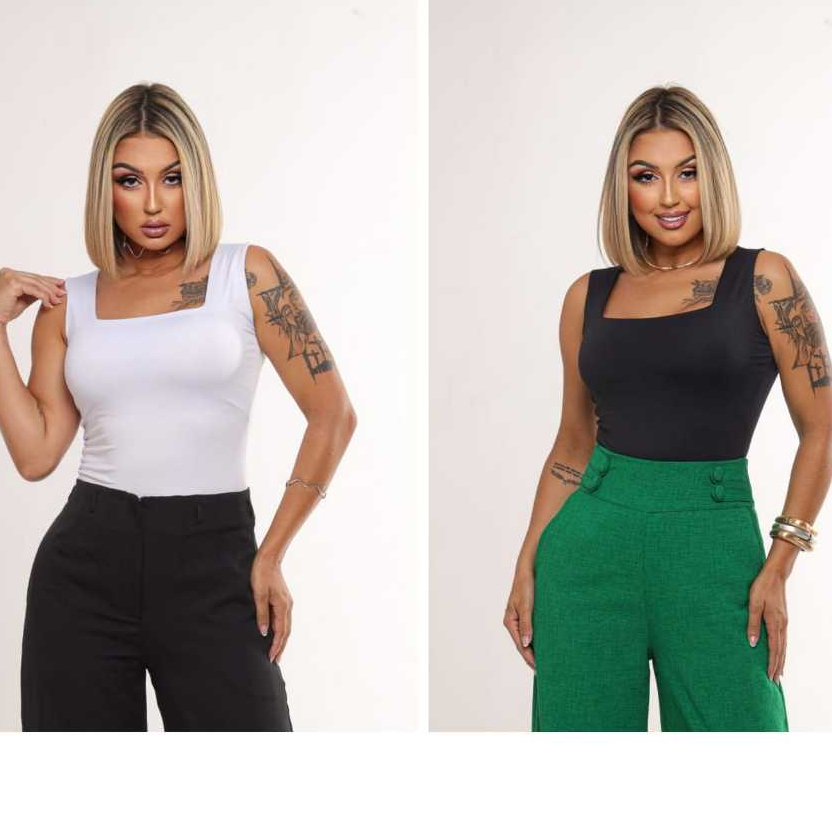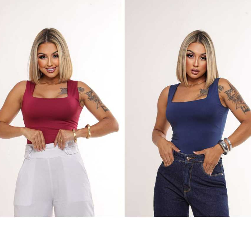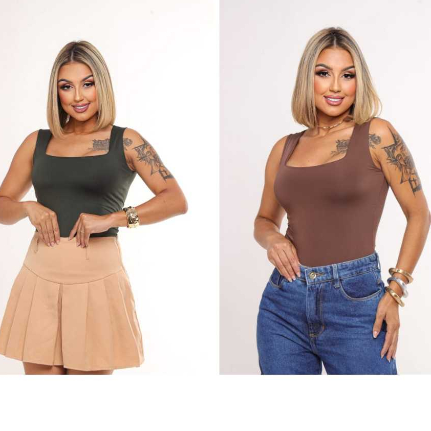 KIT 2 Blusas Regatas Femininas Decote Quadrado Forro duplo Suplex Alça larga Estilosa
