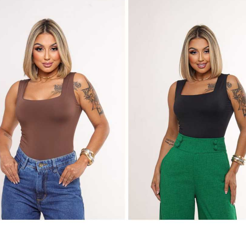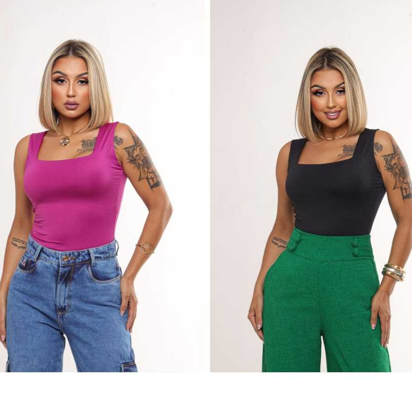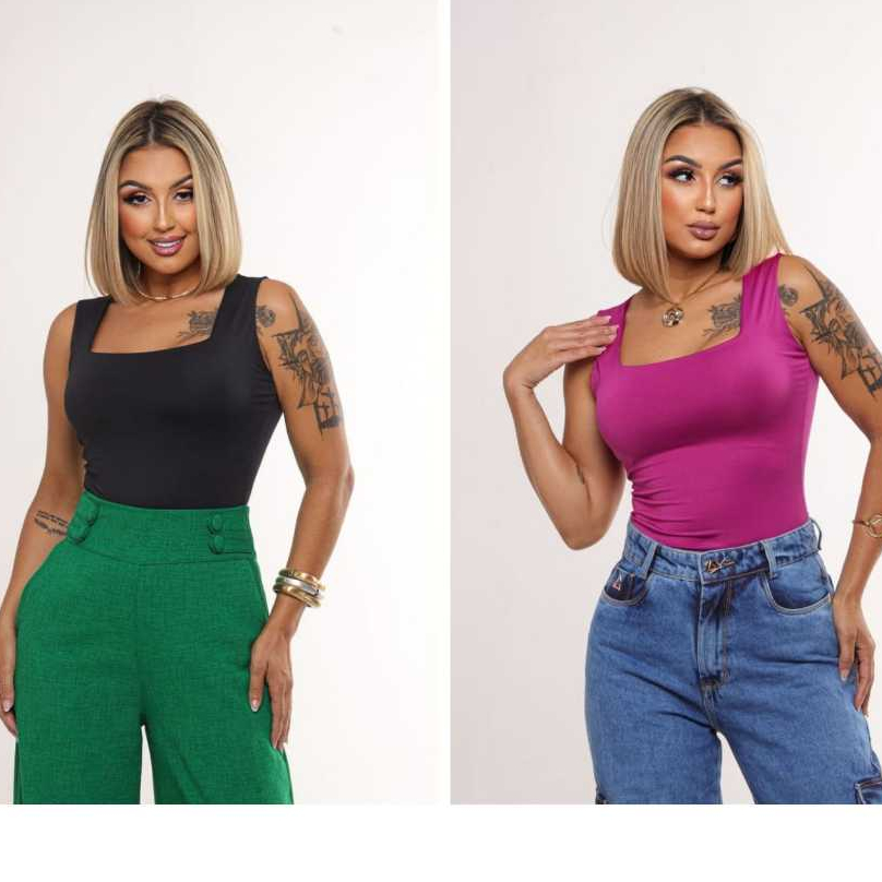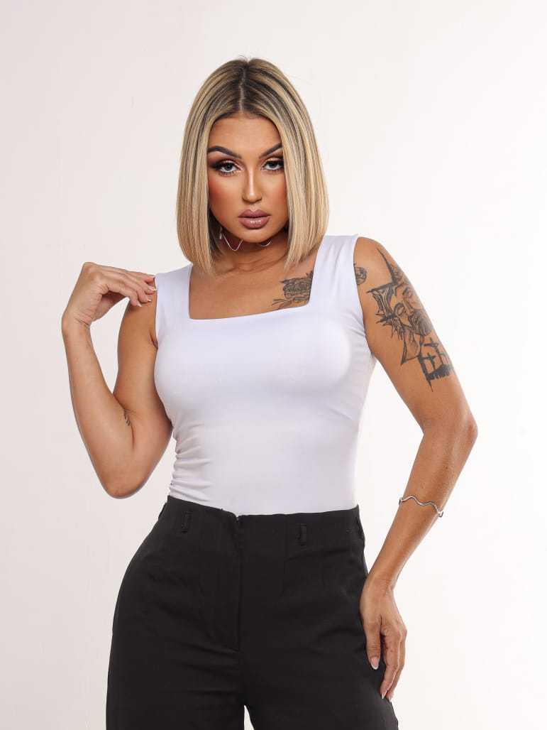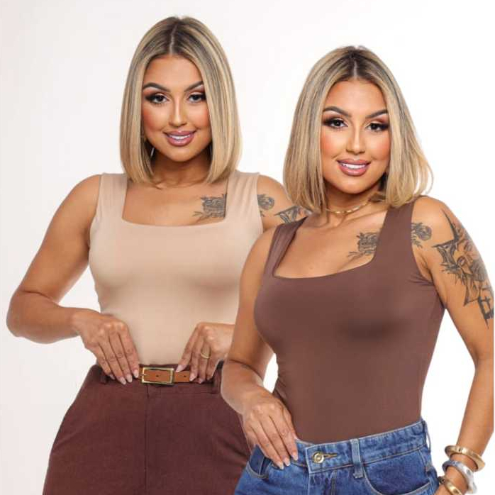 KIT 2 Blusas Regatas Femininas Decote Quadrado Forro duplo Suplex Alça larga Estilosa