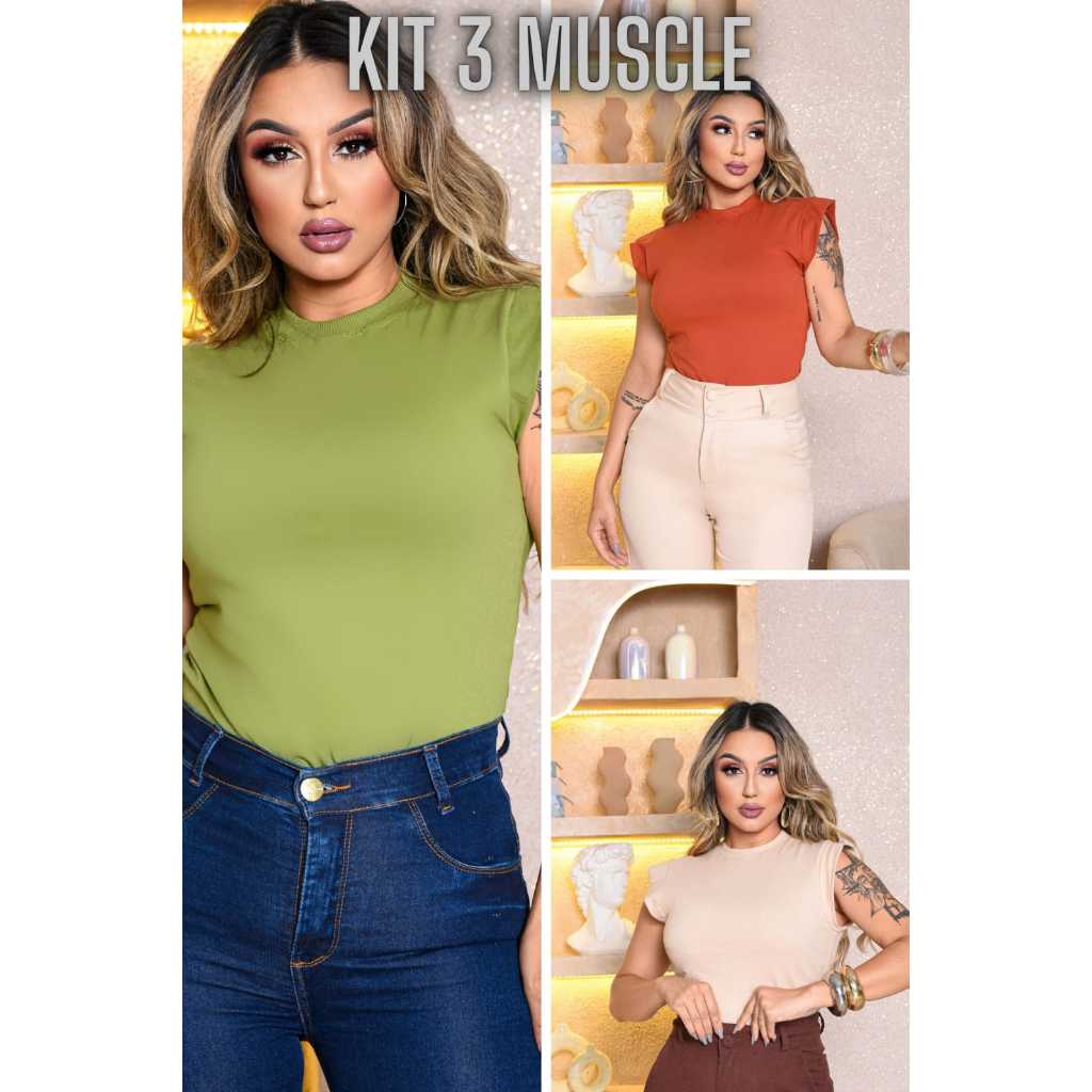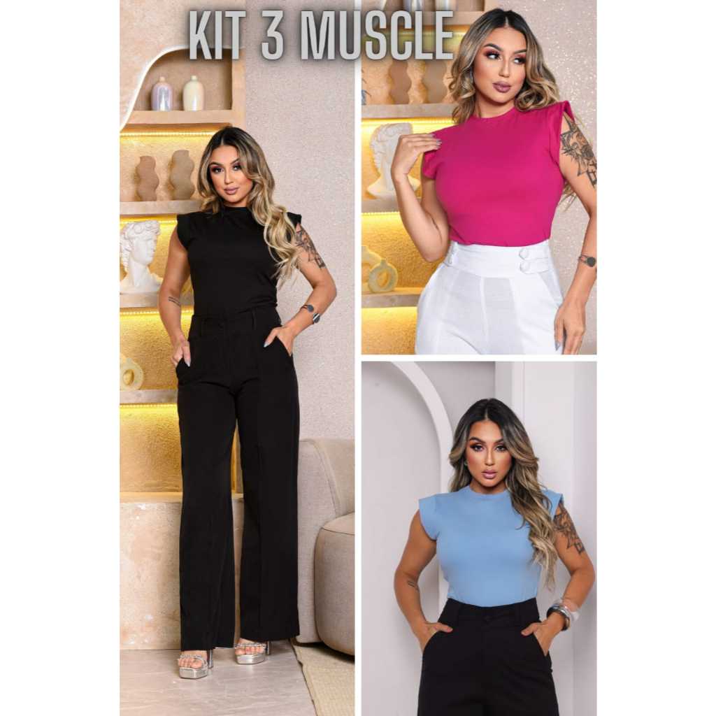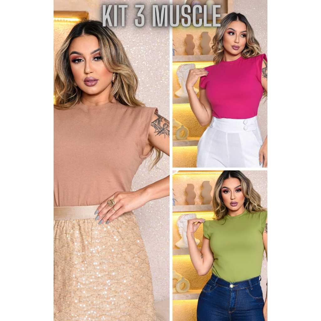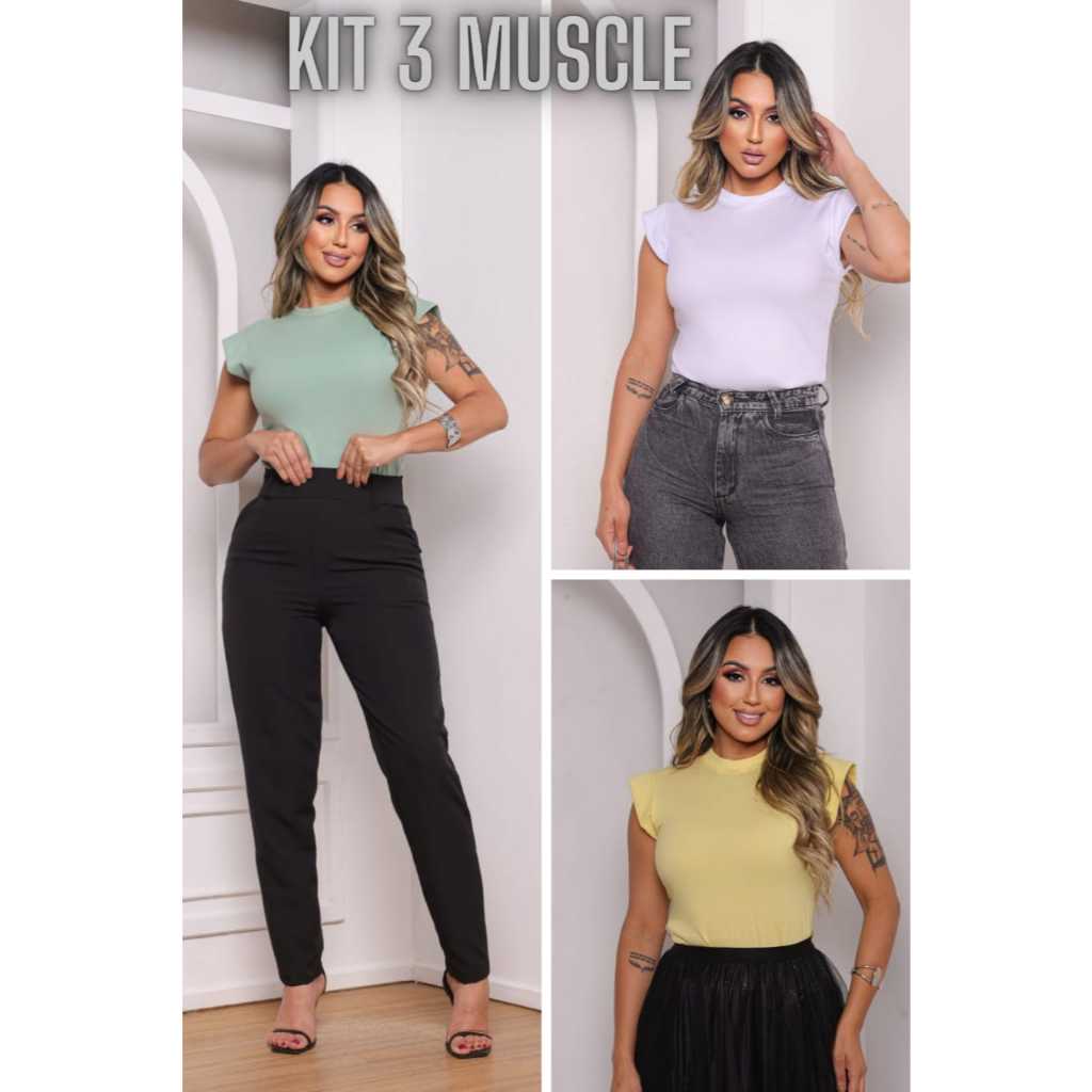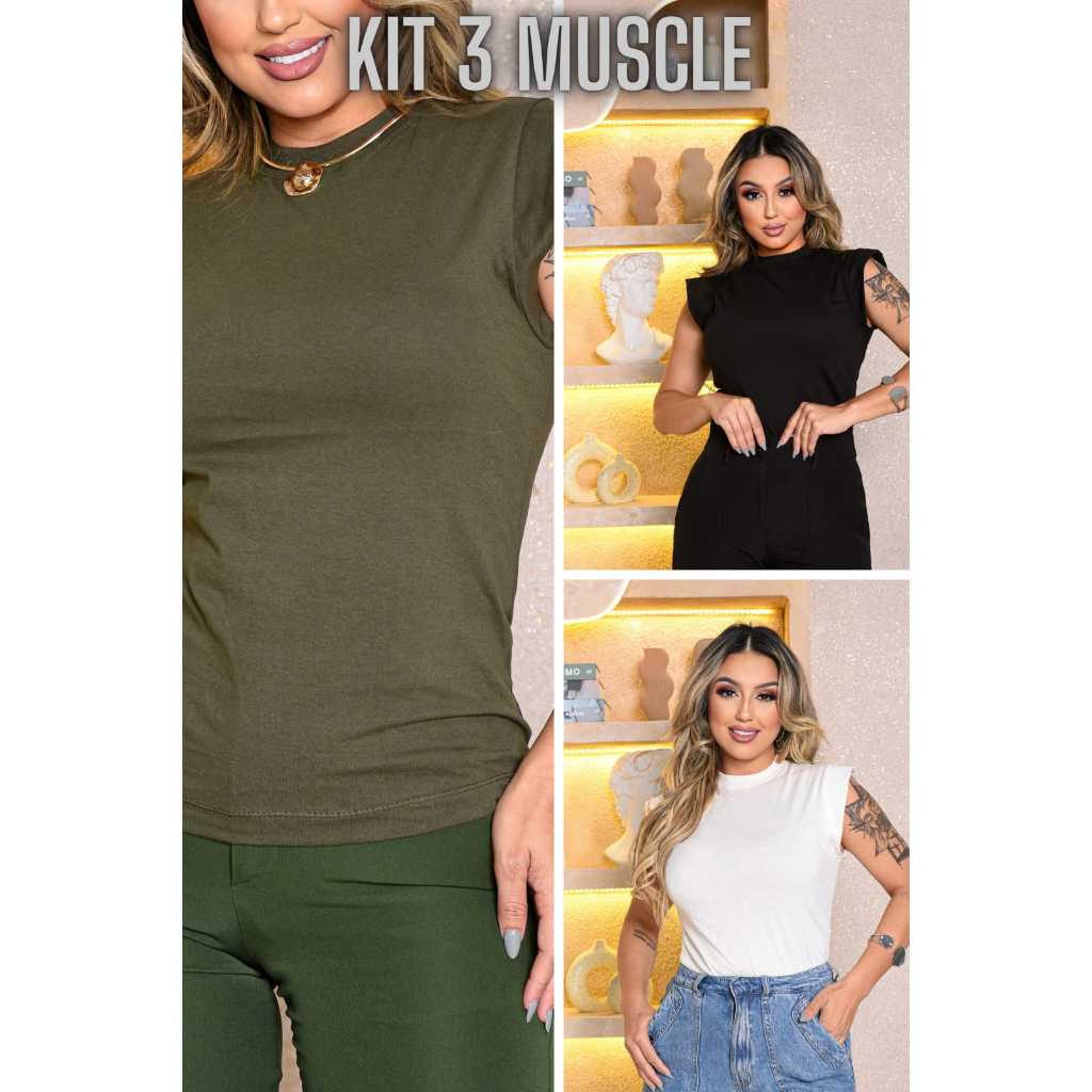 Kit 3 Blusas Femininas Estilosas Muscle tee Minimalista, Camiseta Muscle, T shirts feminina