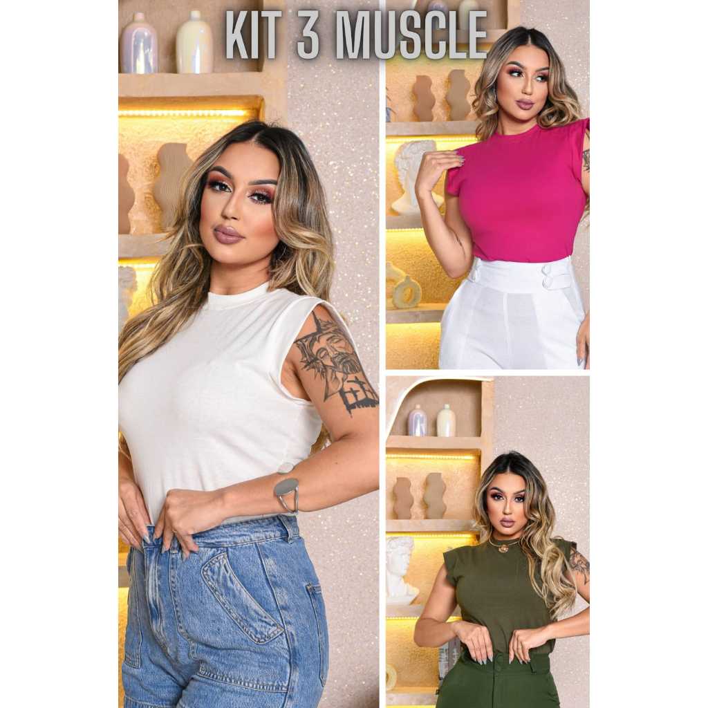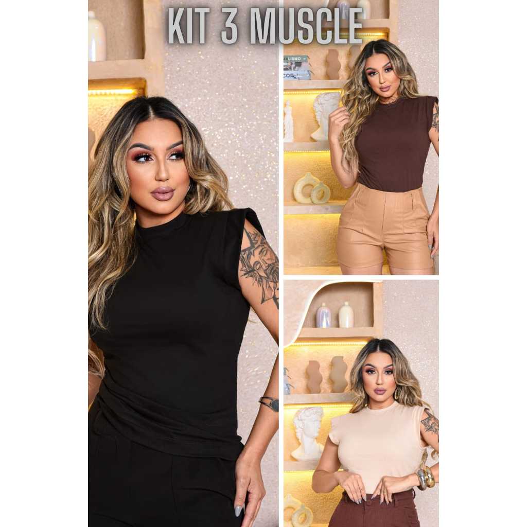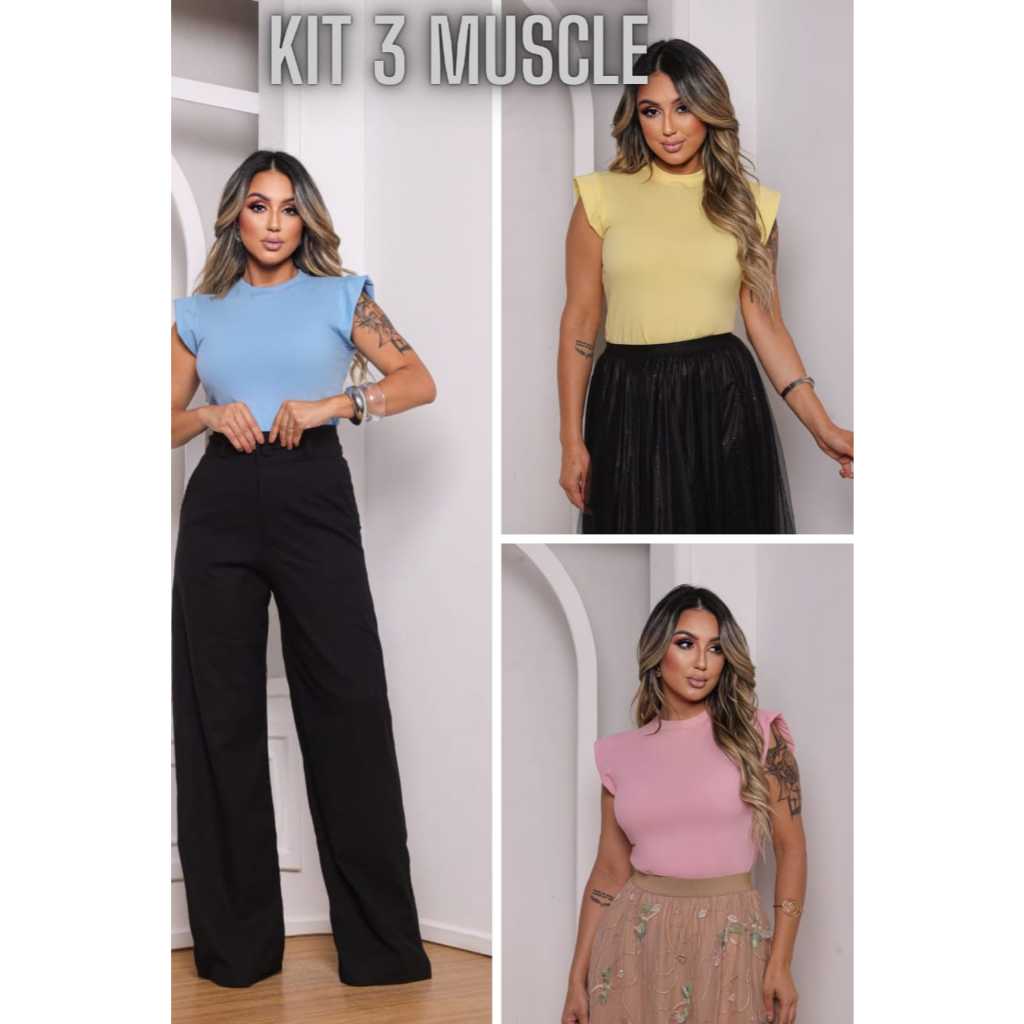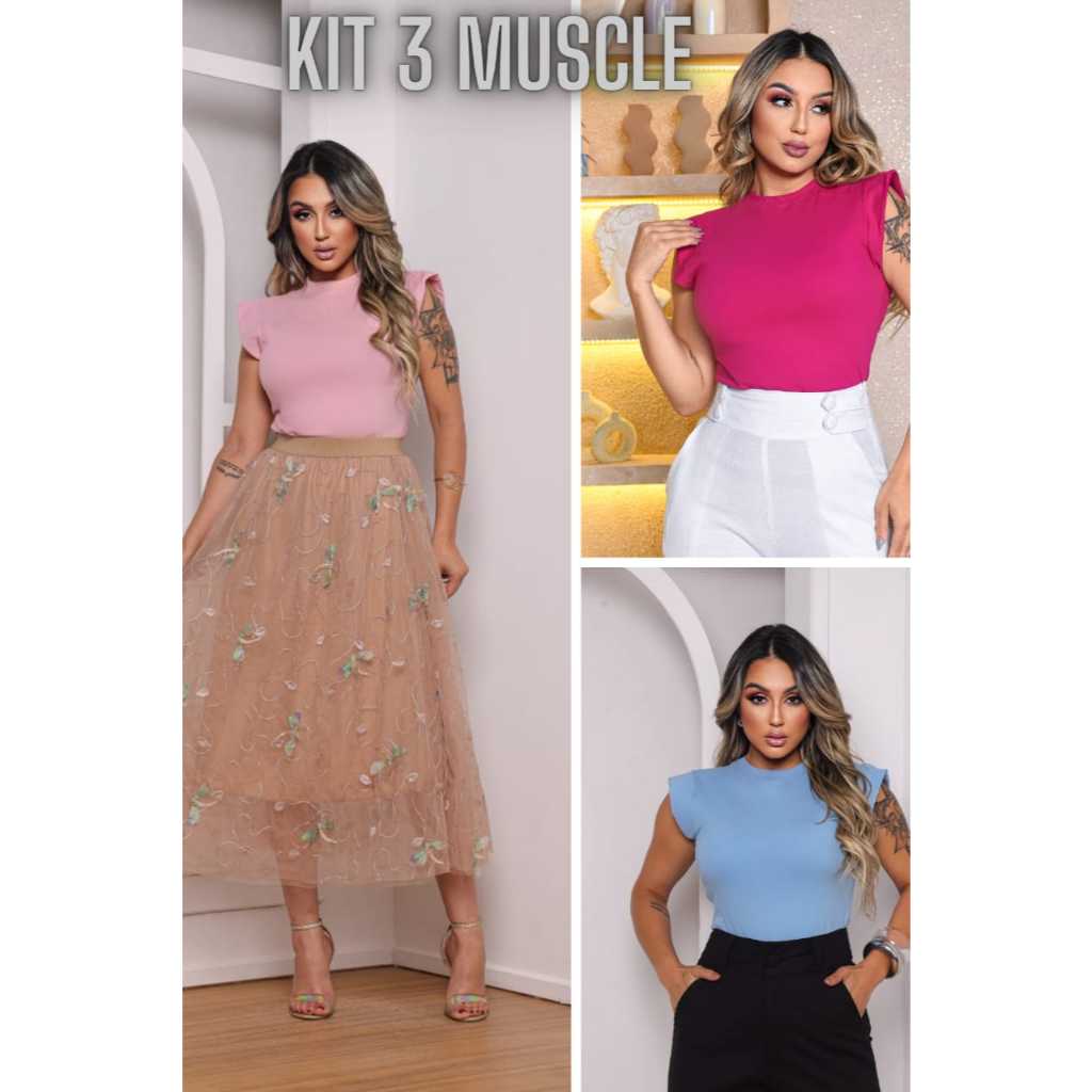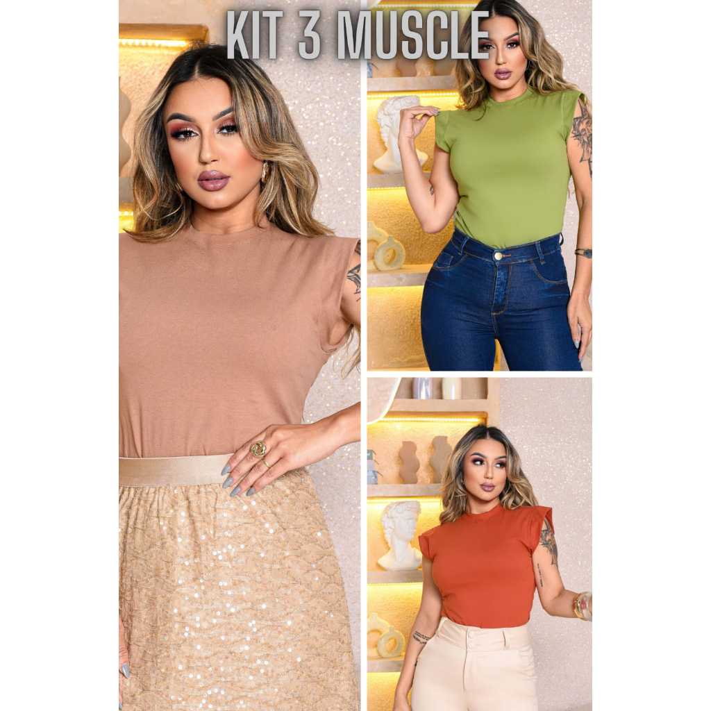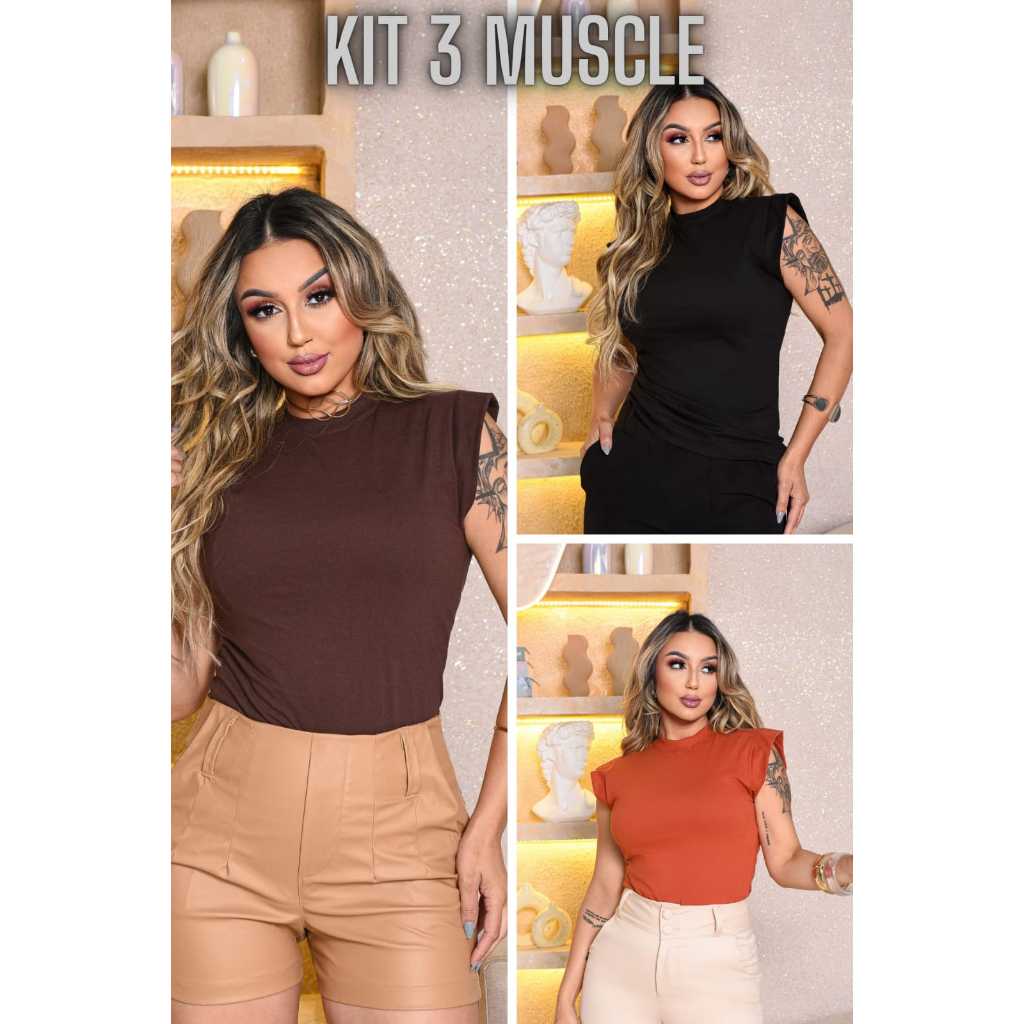 Kit 3 Blusas Femininas Estilosas Muscle tee Minimalista, Camiseta Muscle, T shirts feminina