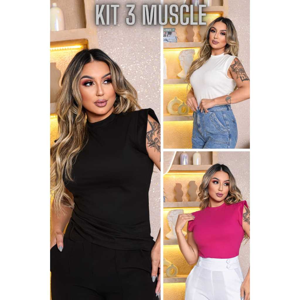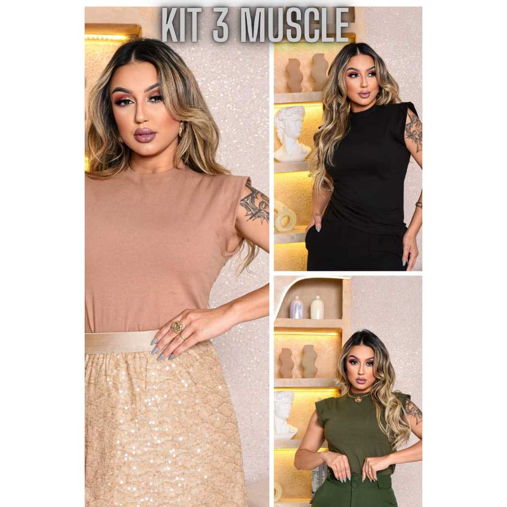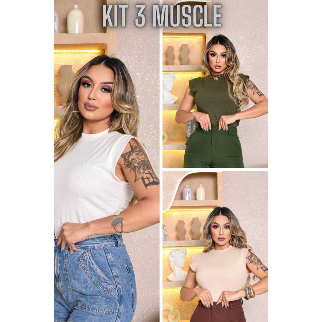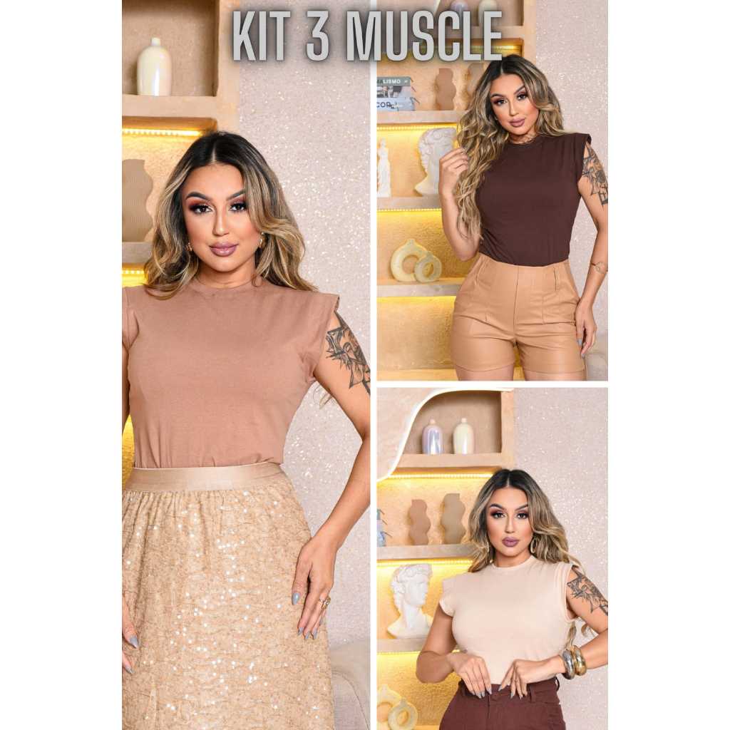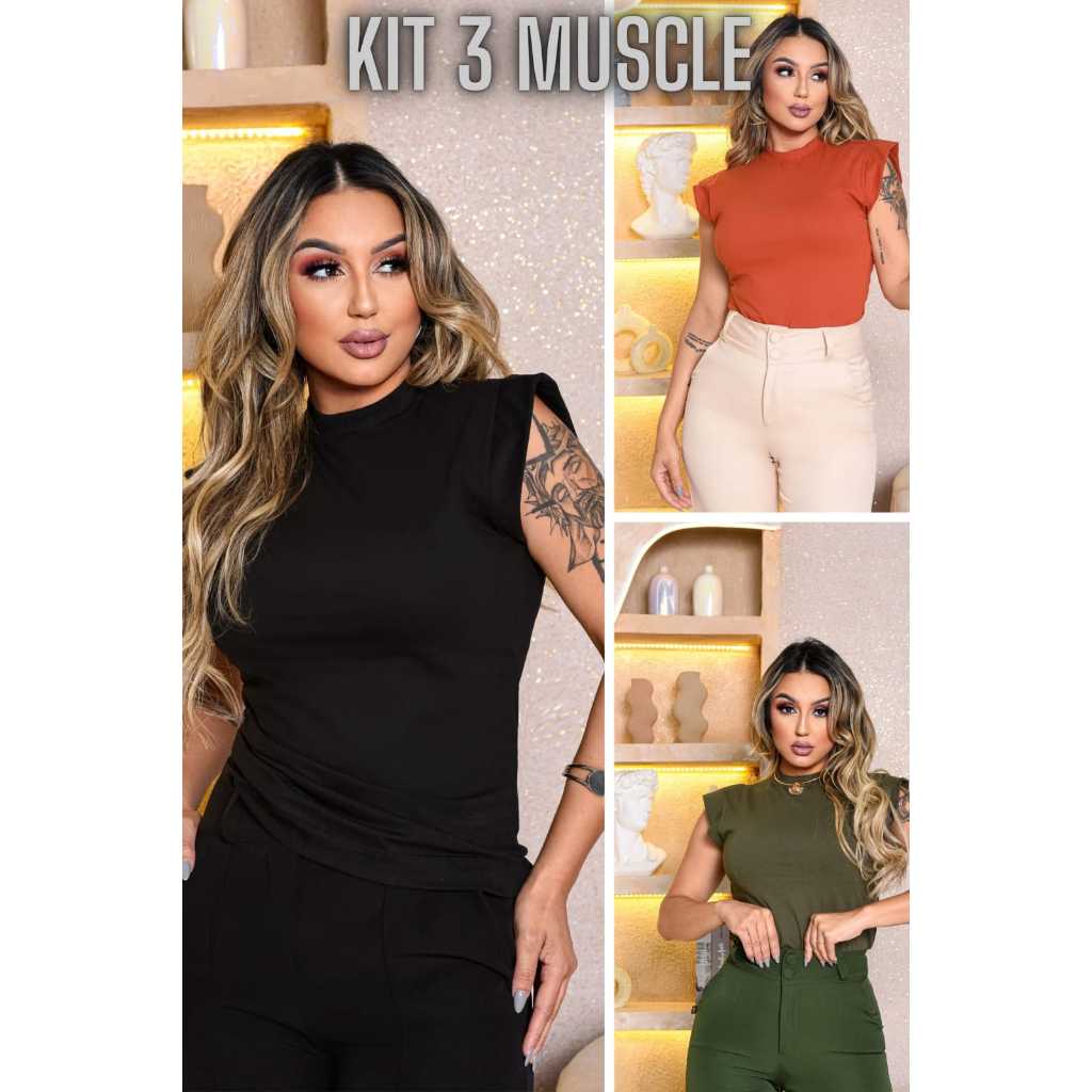Kit 3 Blusas Femininas Estilosas Muscle tee Minimalista, Camiseta Muscle, T shirts feminina