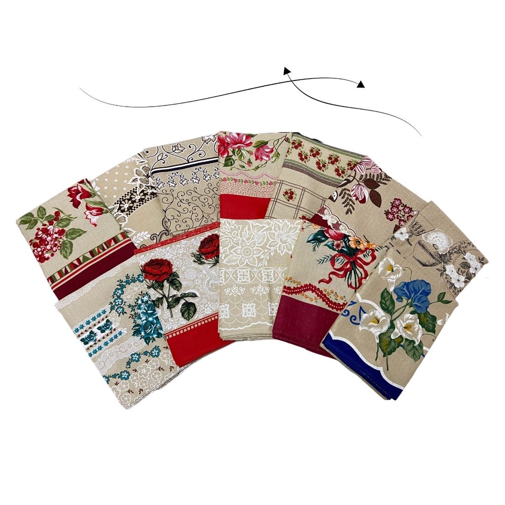 Kit 4 Peças Toalha Chá Rústica Estampada Cores Vivas Linhão Algodão 70x70CM Sortidas