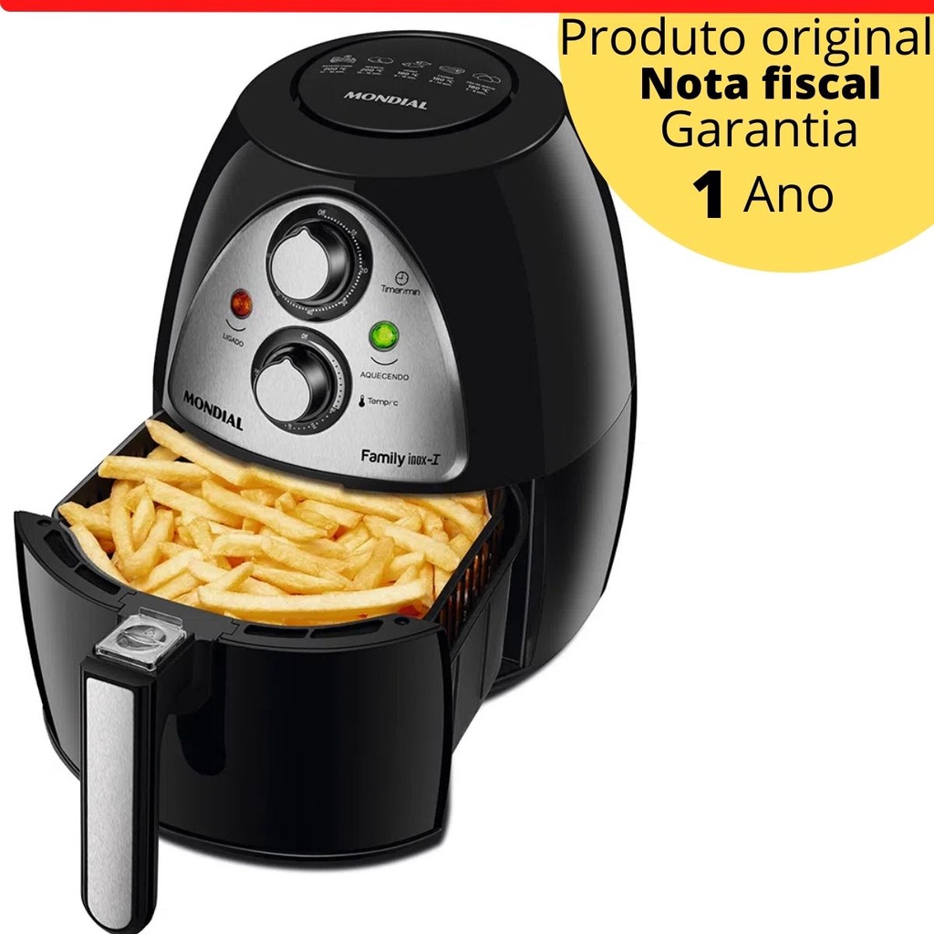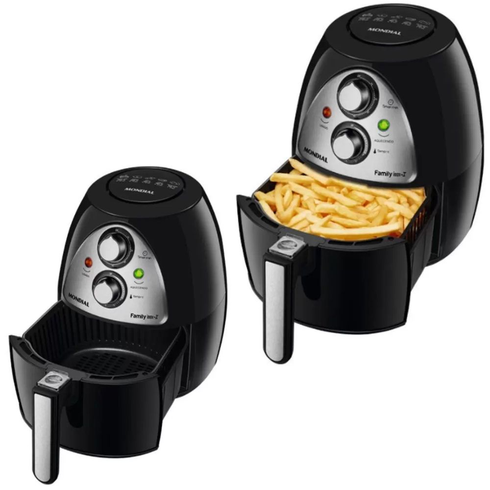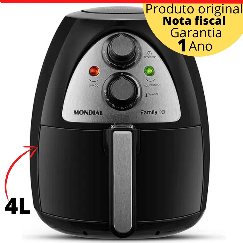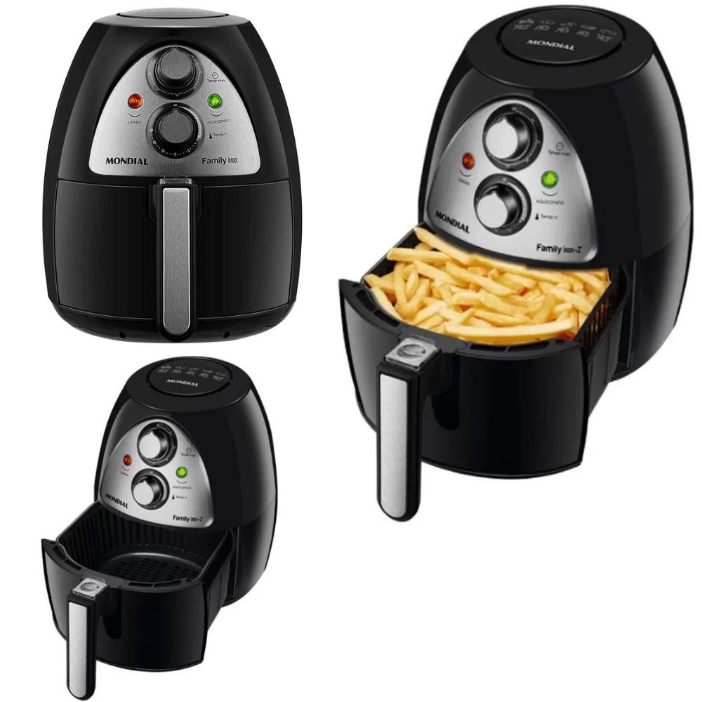 Fritadeira Elétrica Sem Óleo Air Fryer Mondial 4L tamanho Família Preto inox ideal para preparo de Batata - Carne - Hambúrguer - Pão de Queijo Bolo e muito mais