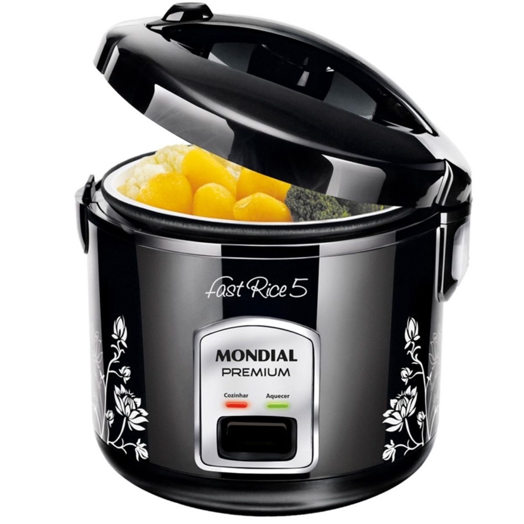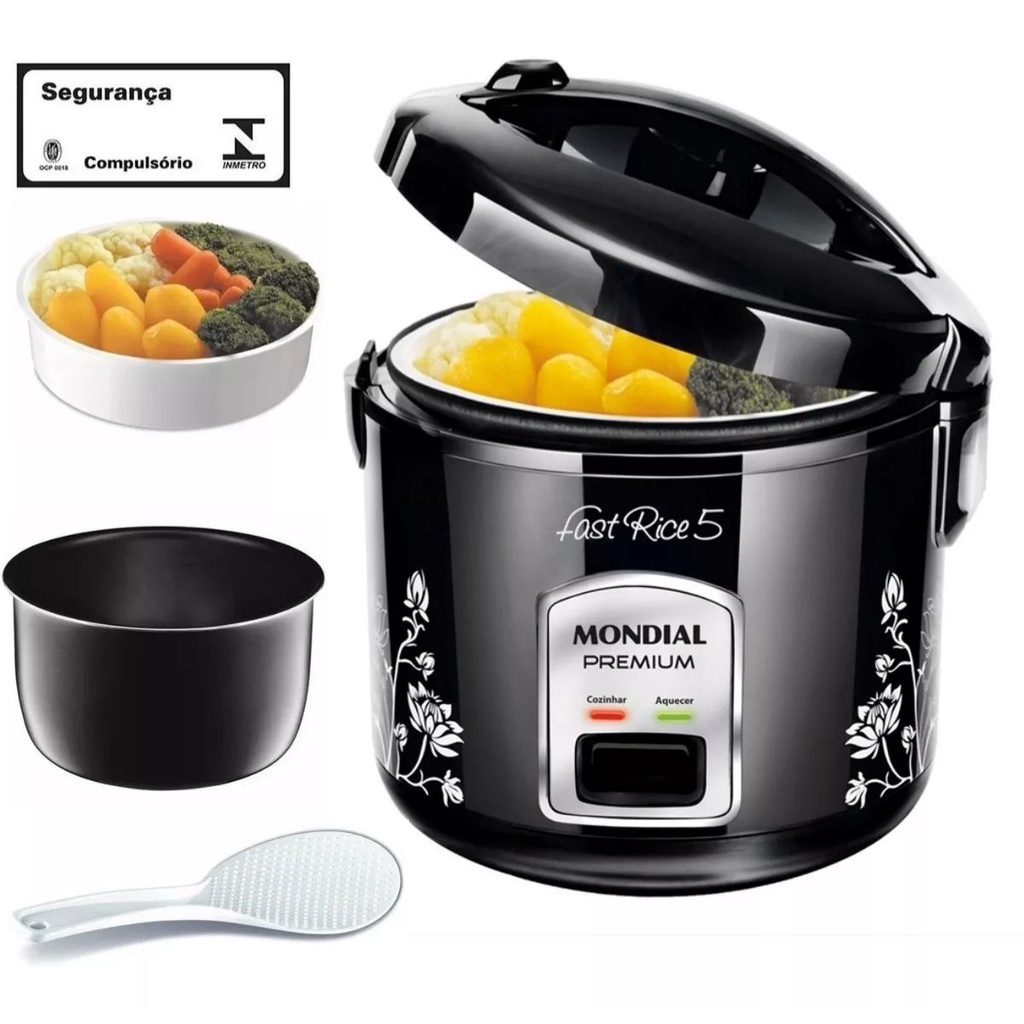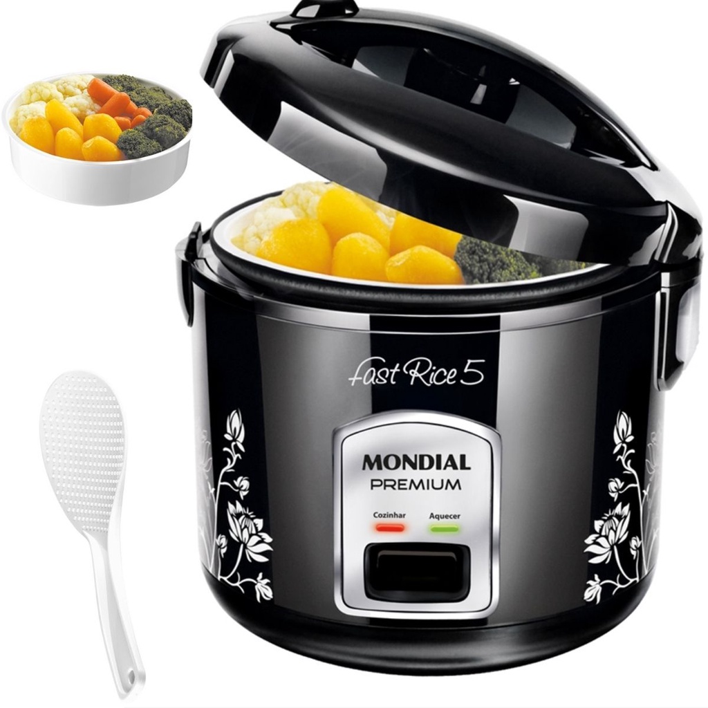 Panela Elétrica De Arroz Mondial Pe-08 5xícaras 400w Preto +Cozedor de legumes + Função Aquecer Envio Imediato