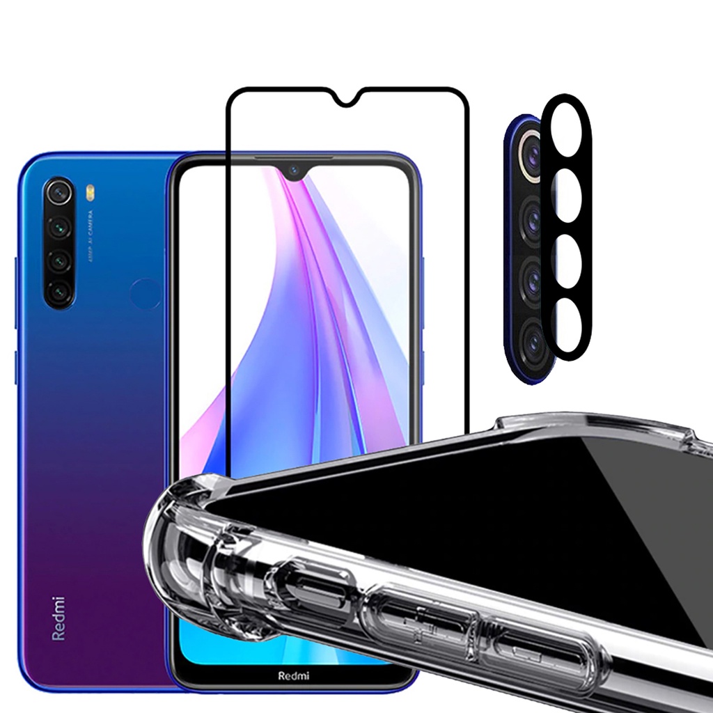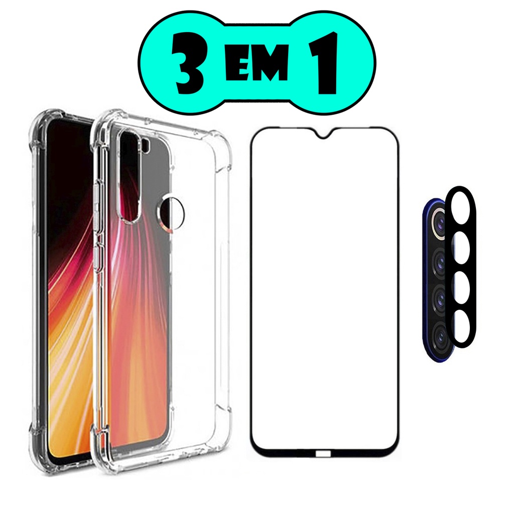 Kit Para Celular Xiaomi Redmi Note 8 Capa + Película 3d Tela toda + Pelicula da Câmera