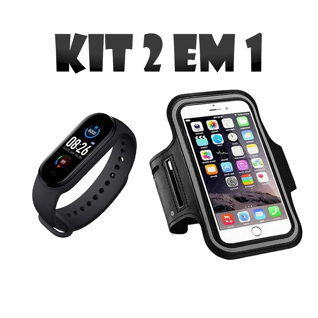 Braçadeira Capa de Corrida + Relógio Inteligente Smart M7 Esportivo