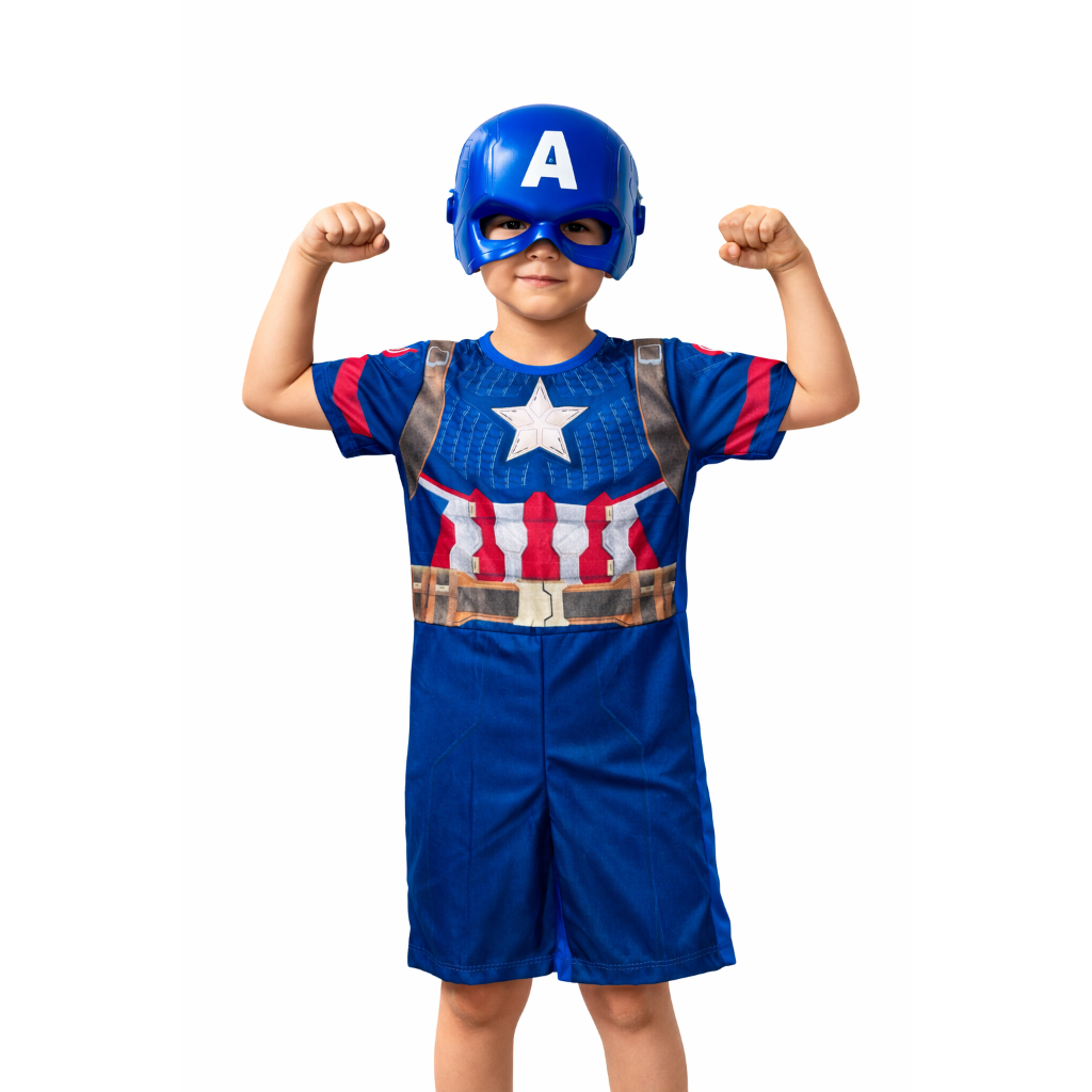 Fantasia Do Capitão América Curta Menino Com Máscara de Plástico Infantil