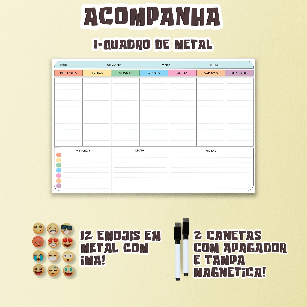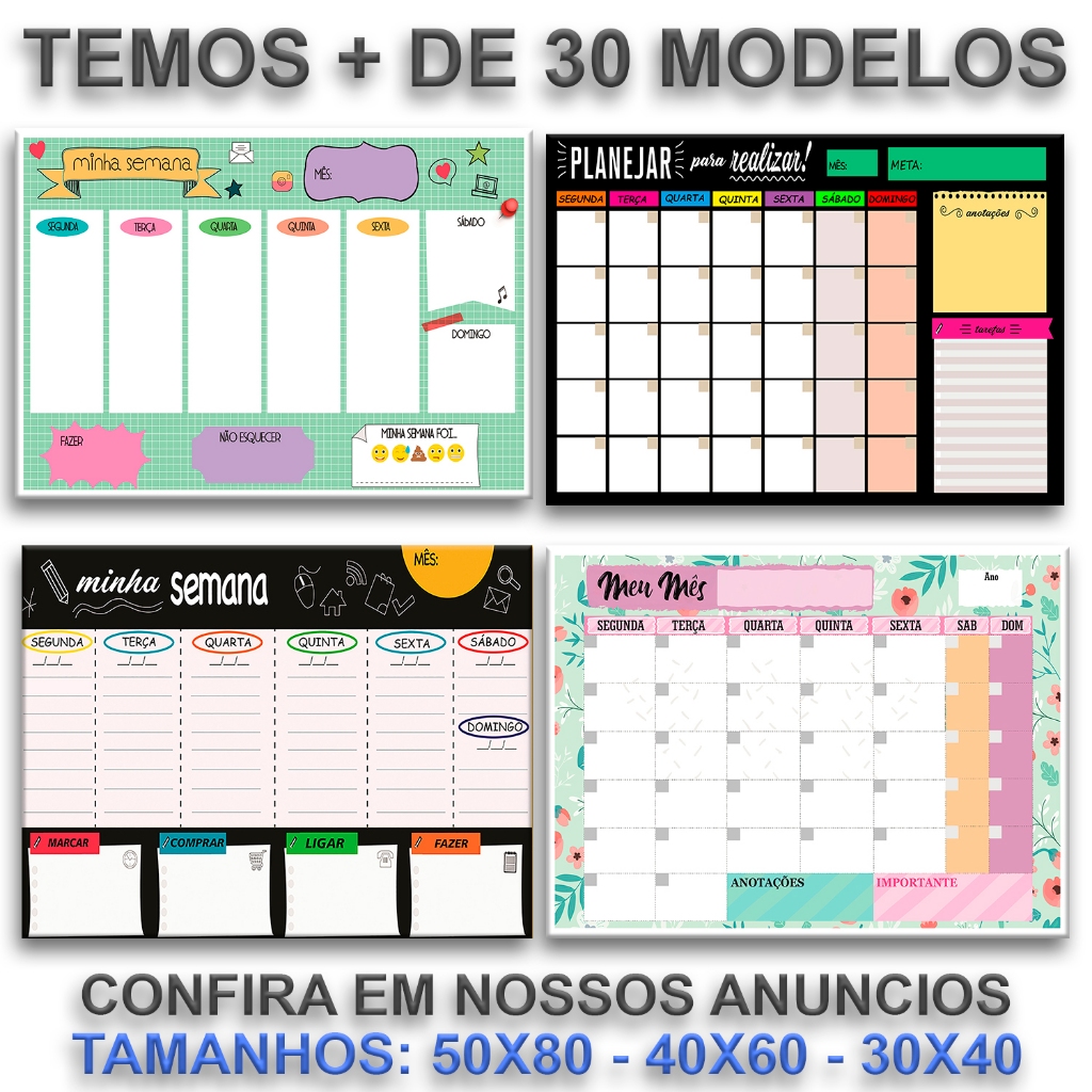 Quadro Lousa Planejador Mensal 40x60 Cm Metal lindo +12 Imãs