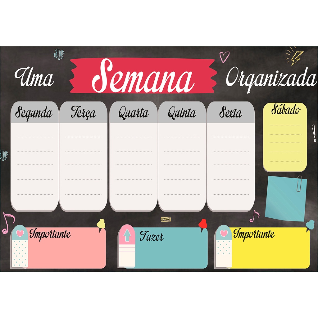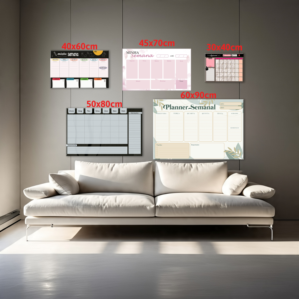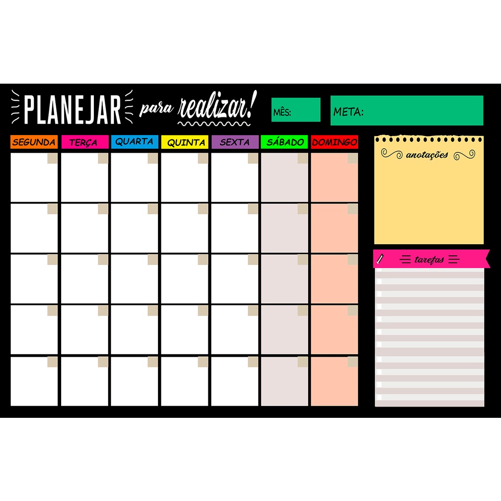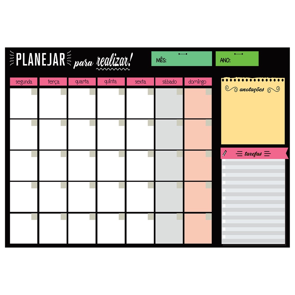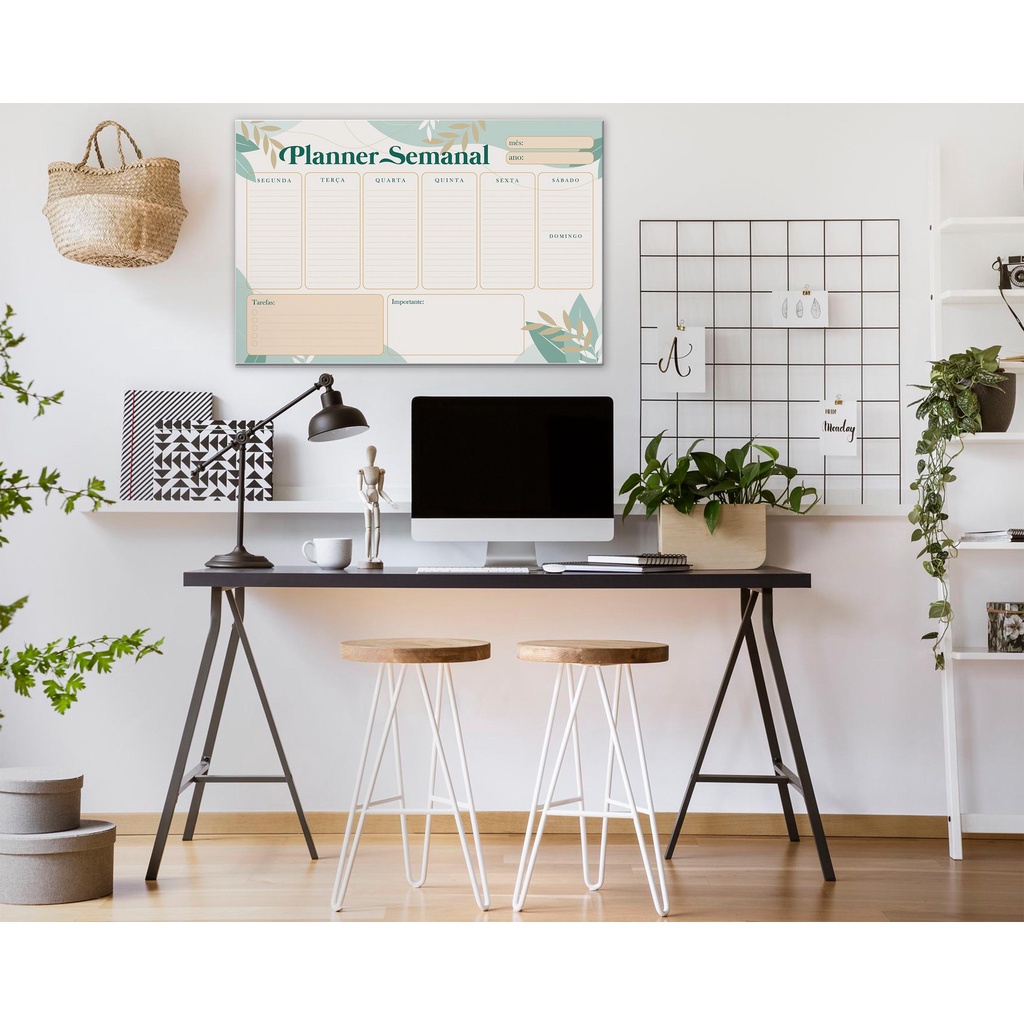Quadro Lousa Planejador Mensal / Planejamento Semanal Planner 40x60 metal com 12 Imãs e 2 Canetas com Apagador