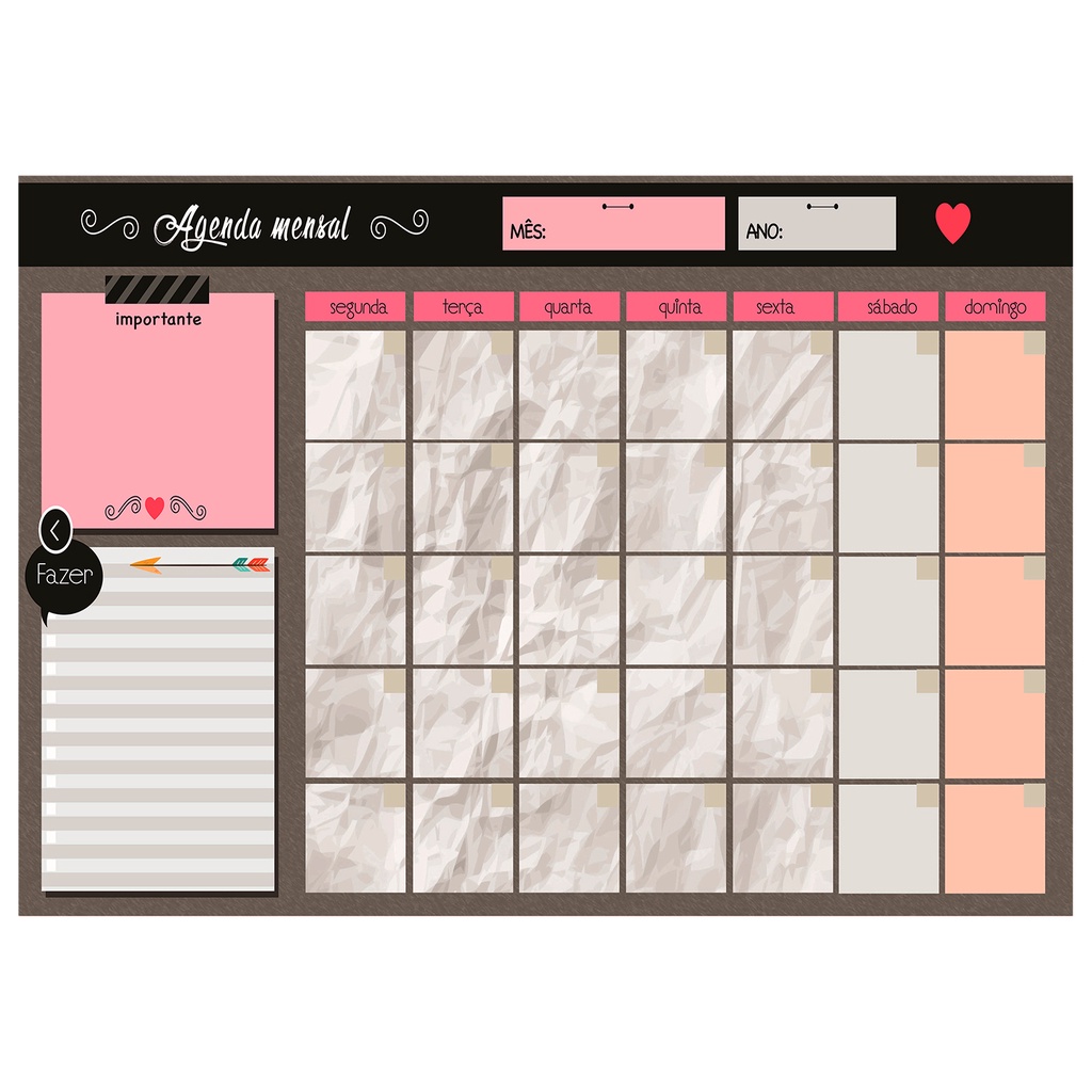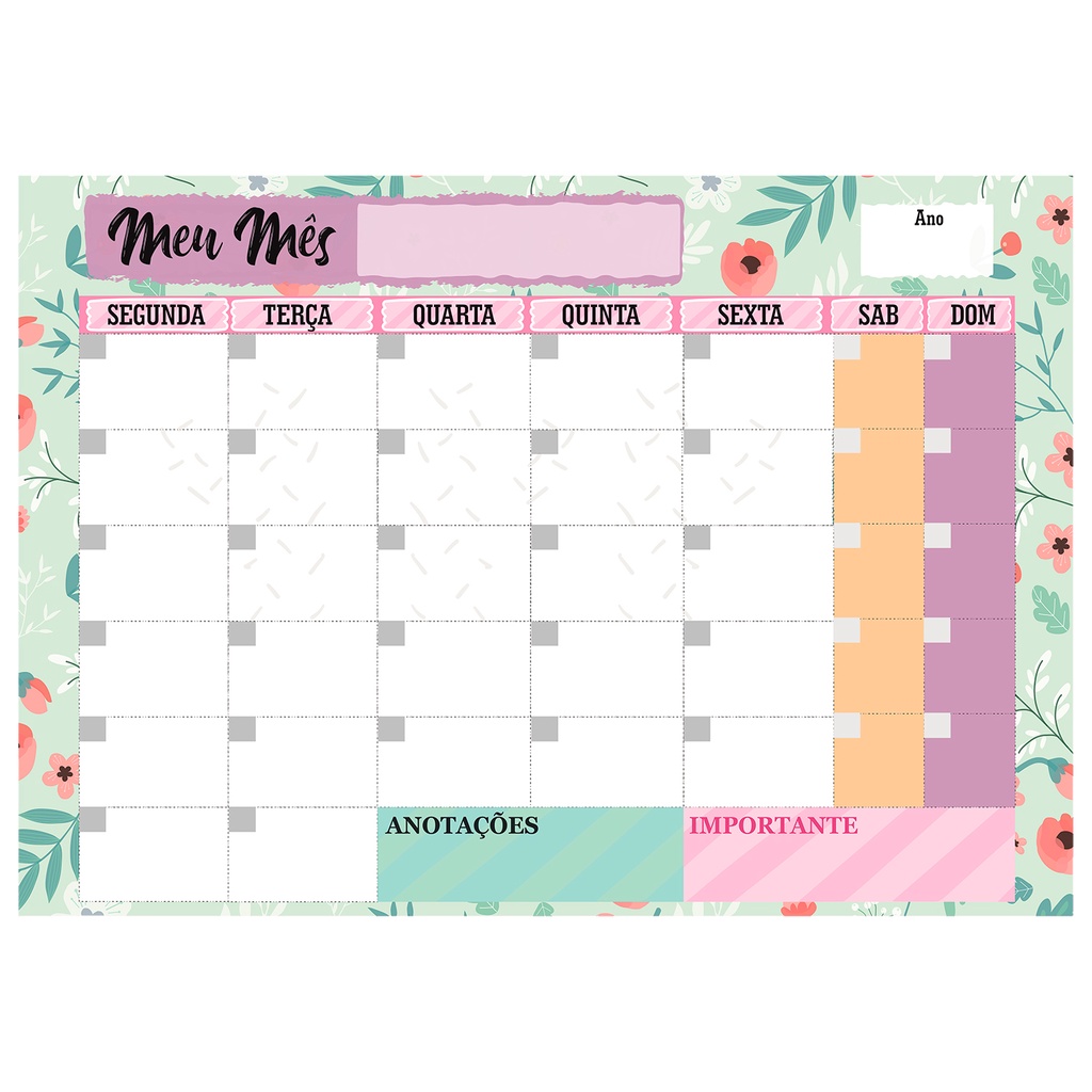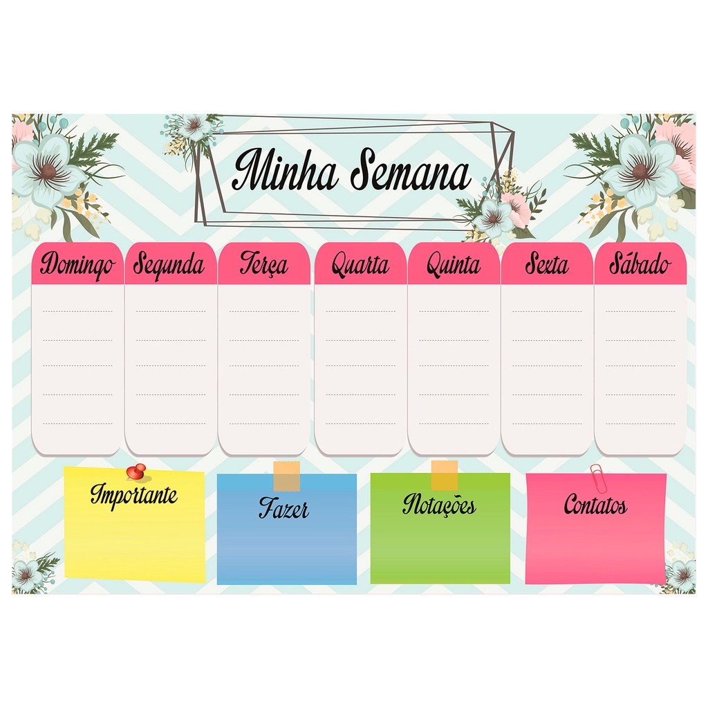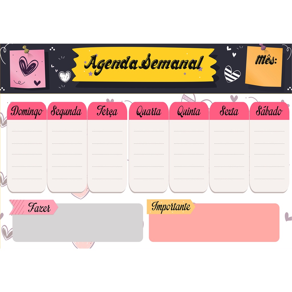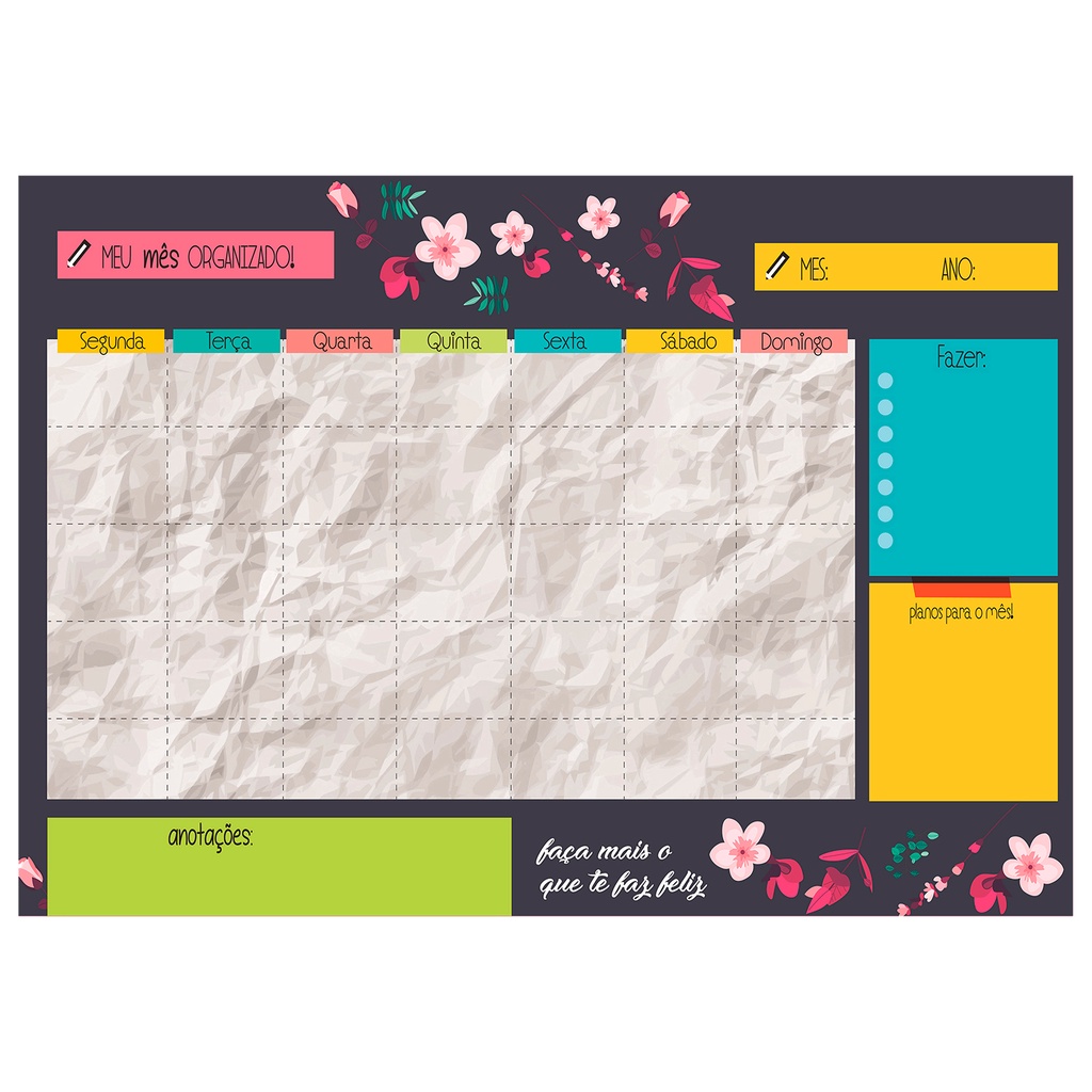 Quadro Lousa Planejador Mensal / Planejamento Semanal Planner 40x60 metal com 12 Imãs e 2 Canetas com Apagador