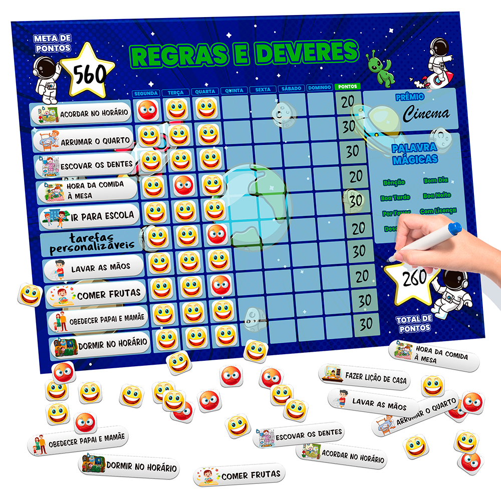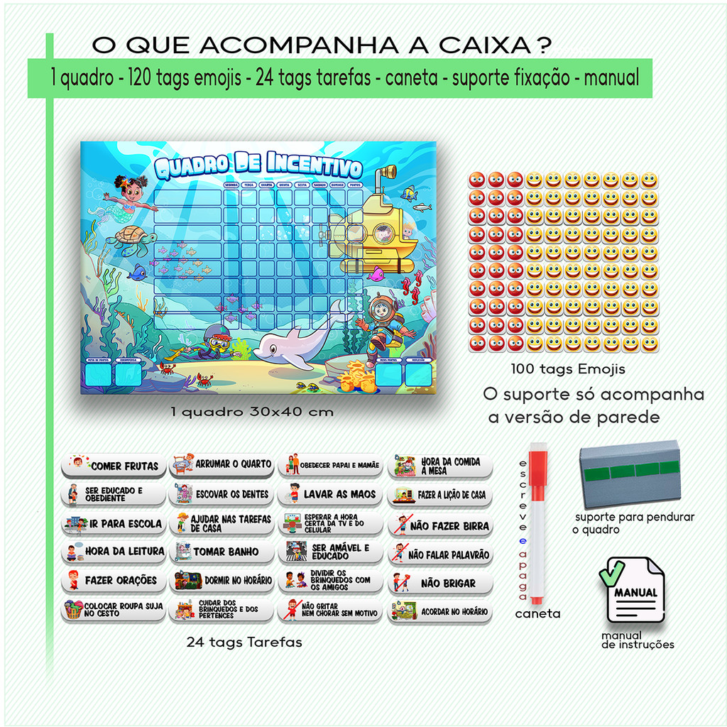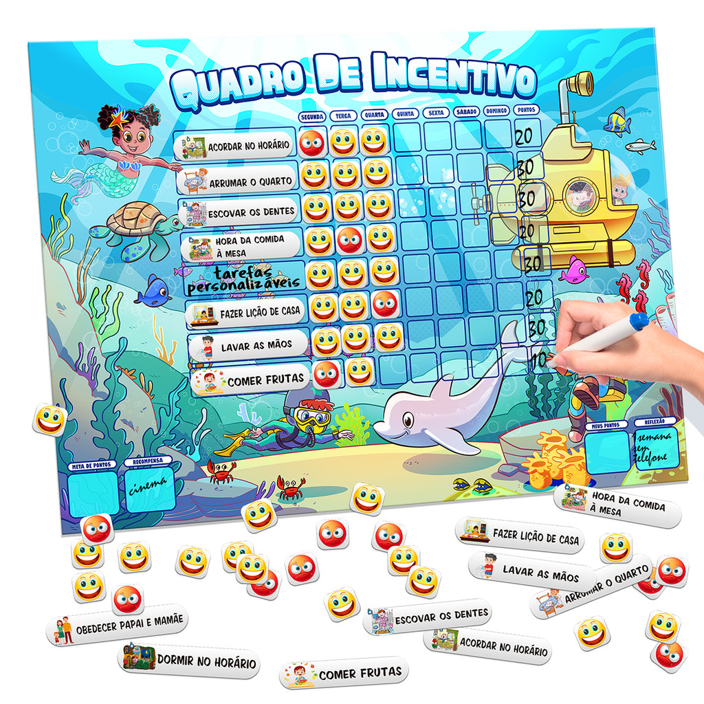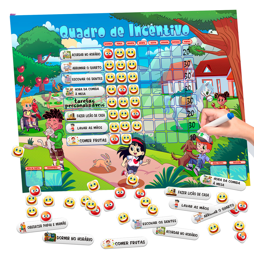 Quadro de Rotina Infantil - Quadro de Incentivo - Quadro de Tarefas - Para Geladeira ou Parede 30x40 cm g