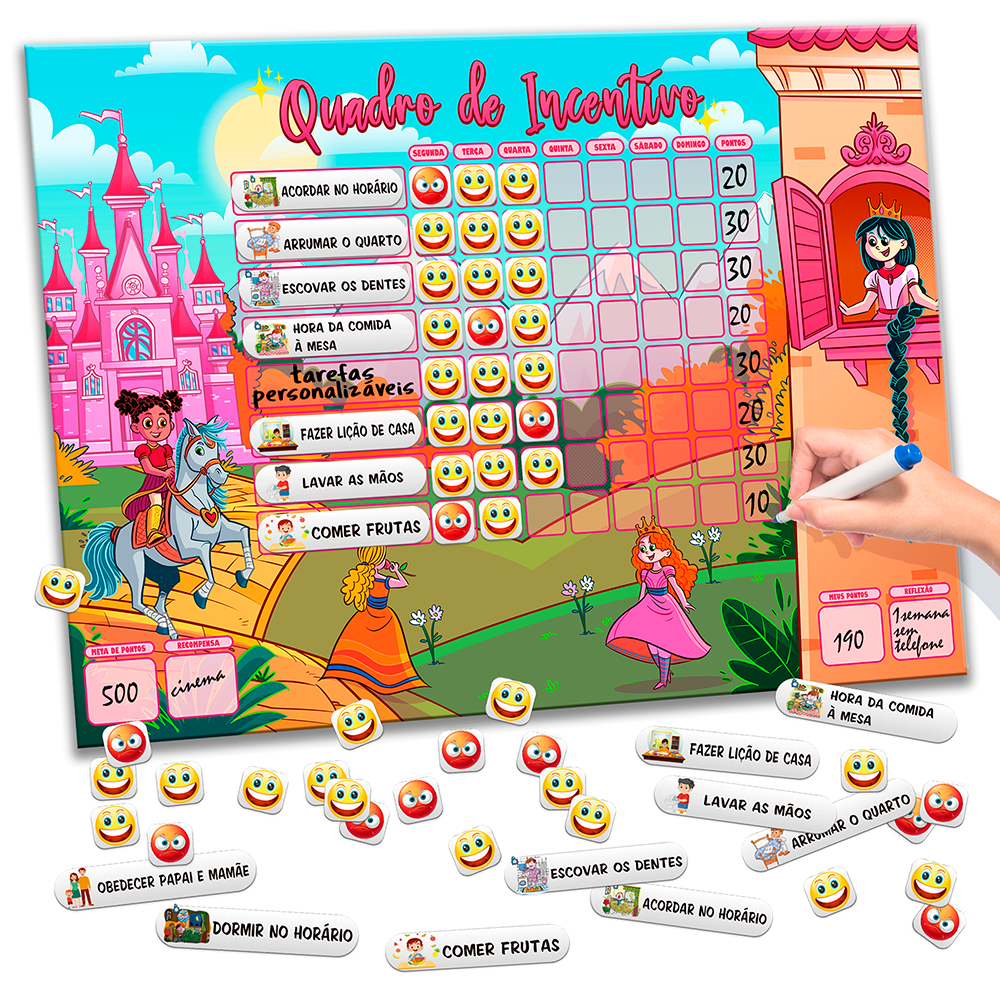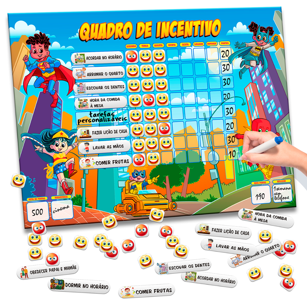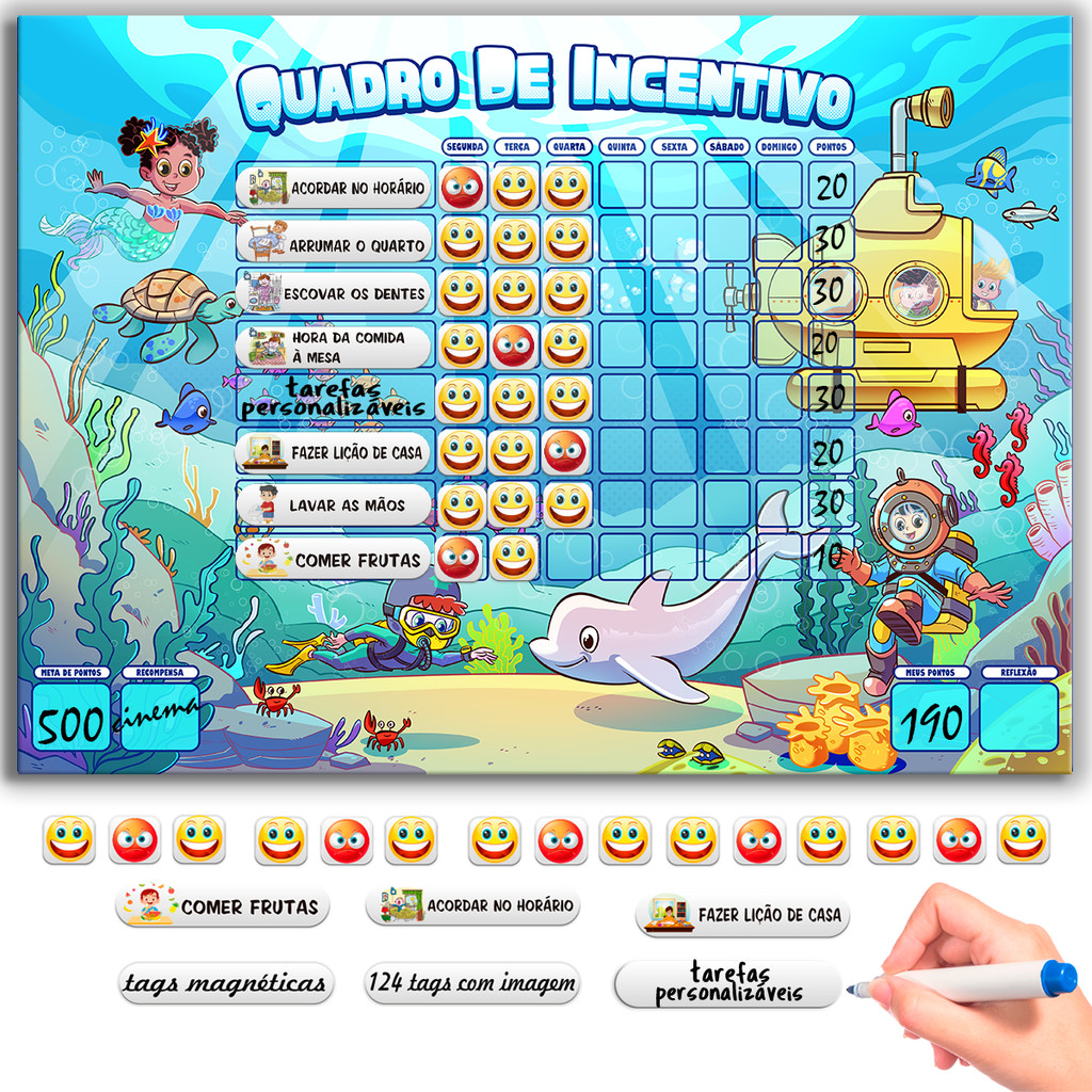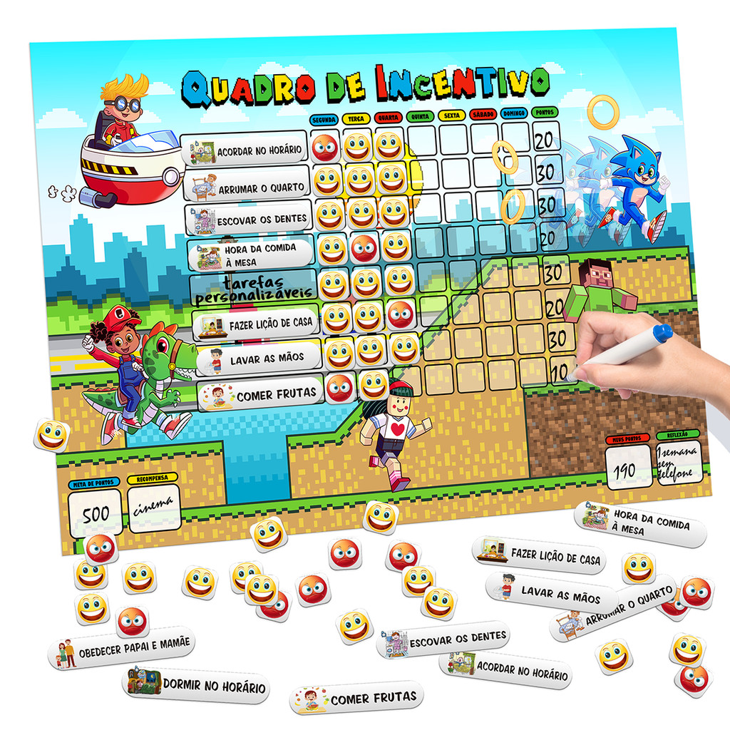 Quadro de Rotina Infantil - Quadro de Incentivo - Quadro de Tarefas - Para Geladeira ou Parede 30x40 cm g