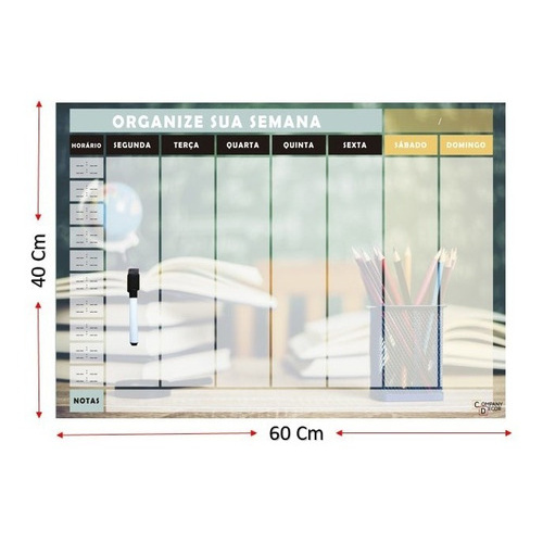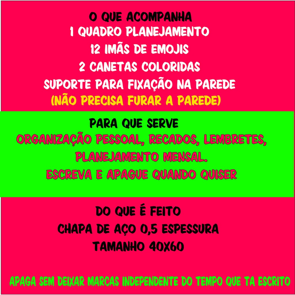 Quadro Planner Agenda Lousa Quadro Lousa Planejador Mensal Planejamento Semanal Planner 40x60 metal 2 CANETAS E 12 iMÃS