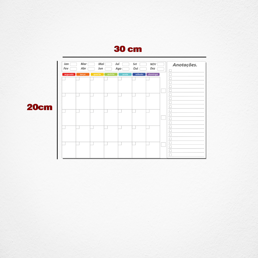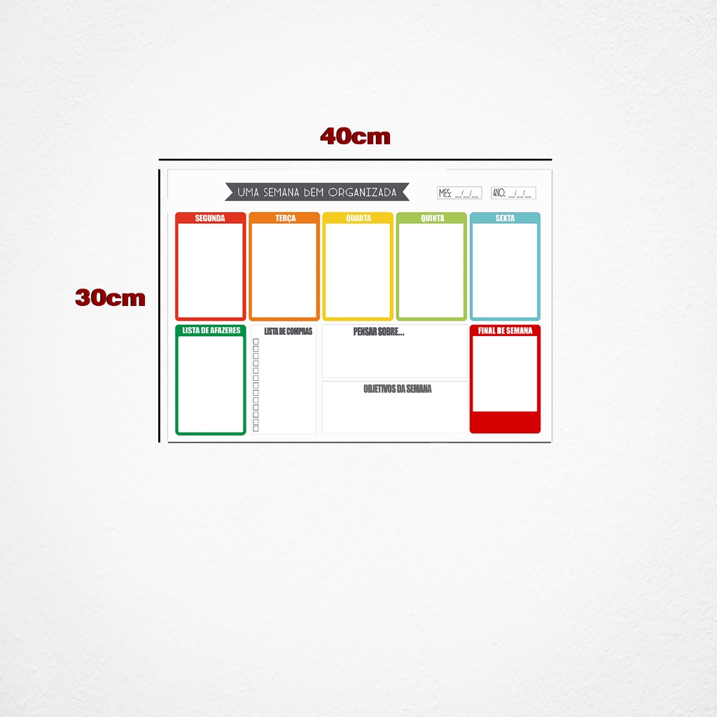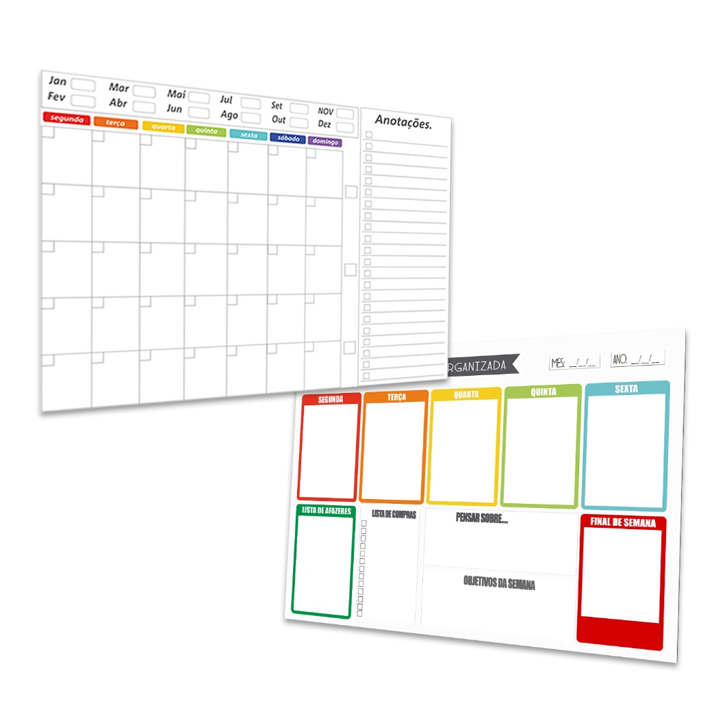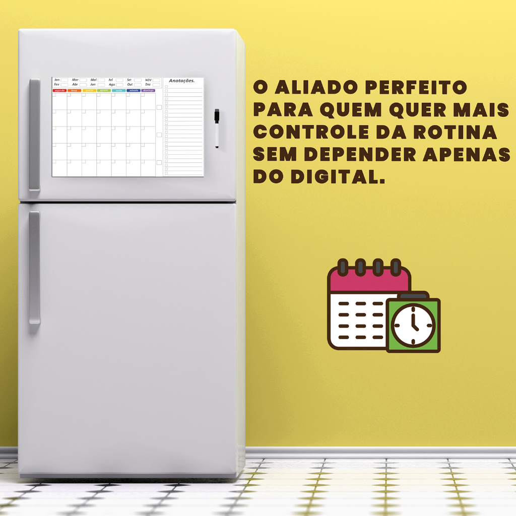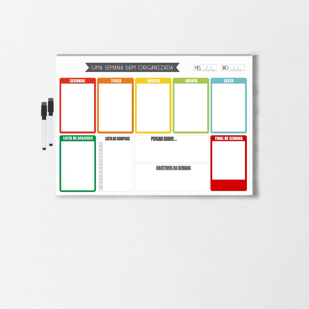 Imã Planner Lousa de Geladeira Magnética ESPECIAL - Planner Planejamento Semanal e Mensal 20x30cm e 30x40cm - 2 canetas