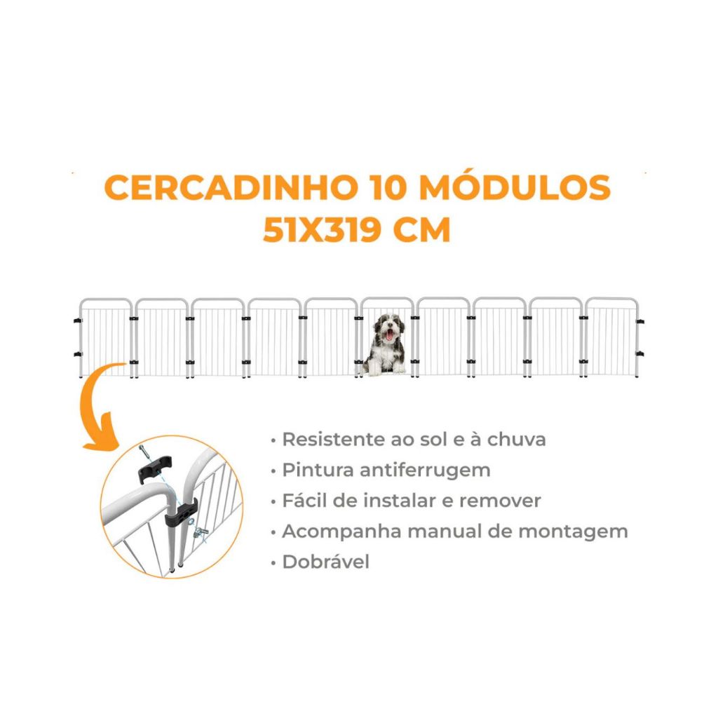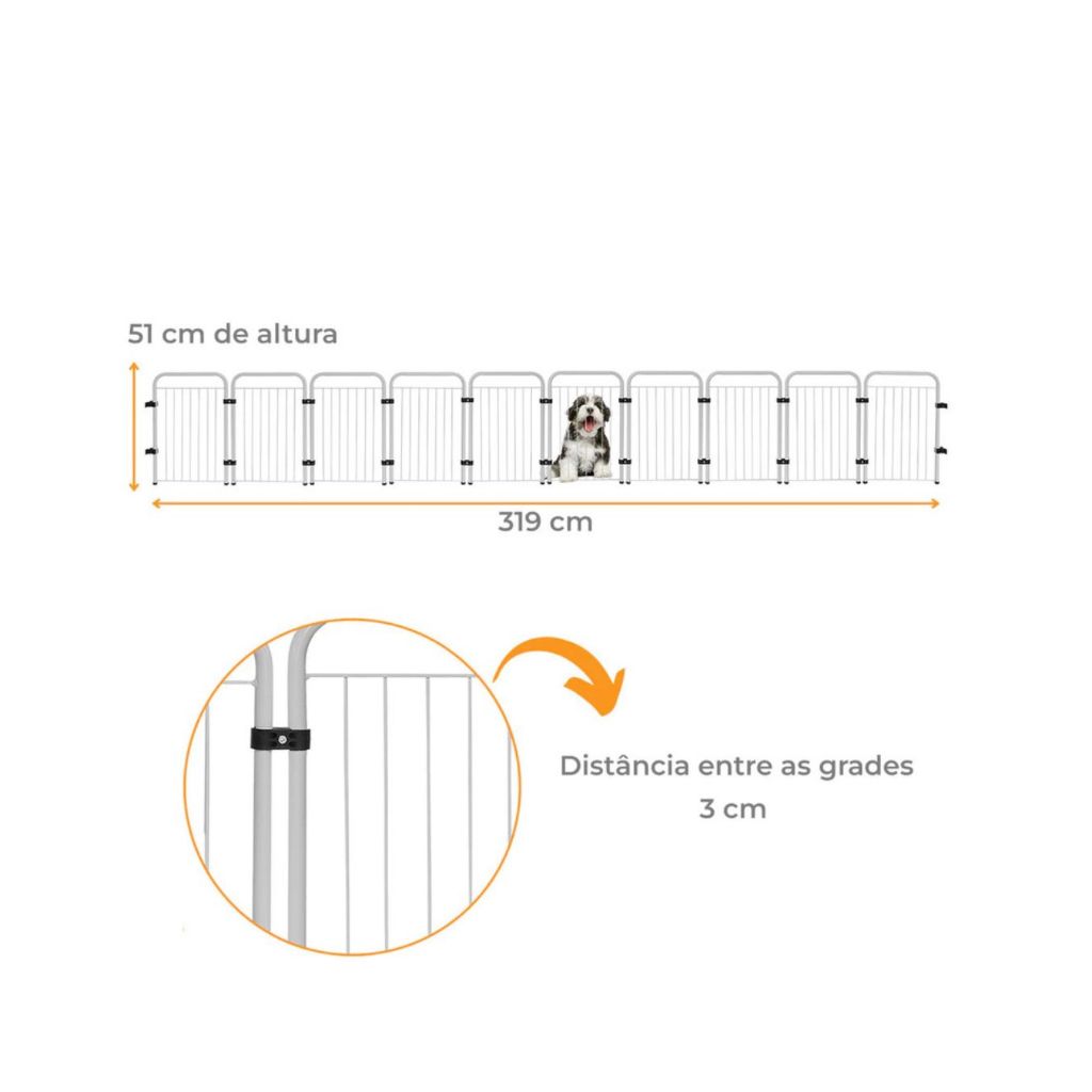 Cercado para Cachorro em Aço 10 Módulos Dobrável 3,29m x 51cm Grade de Segurança Pet