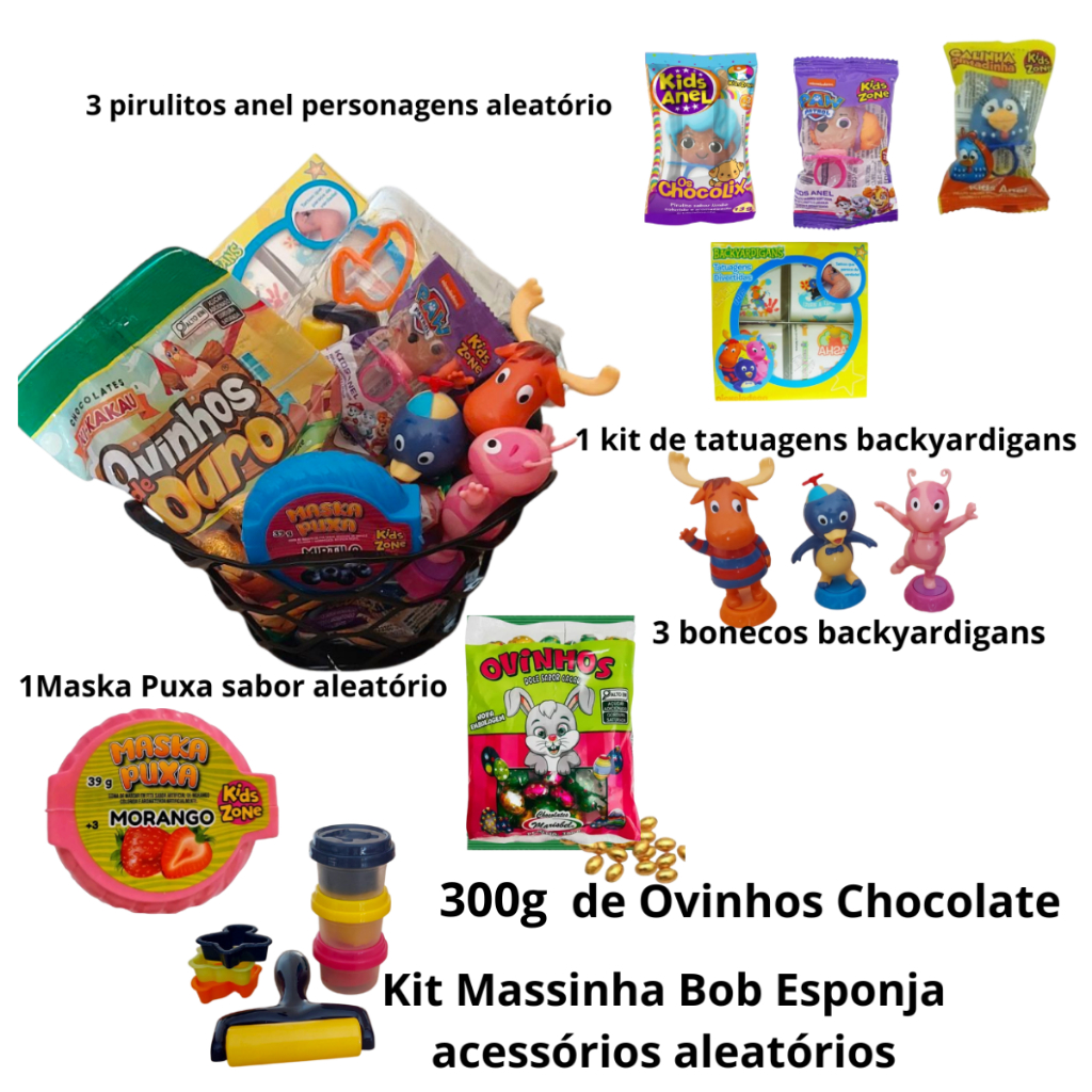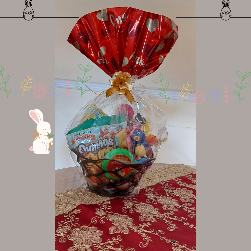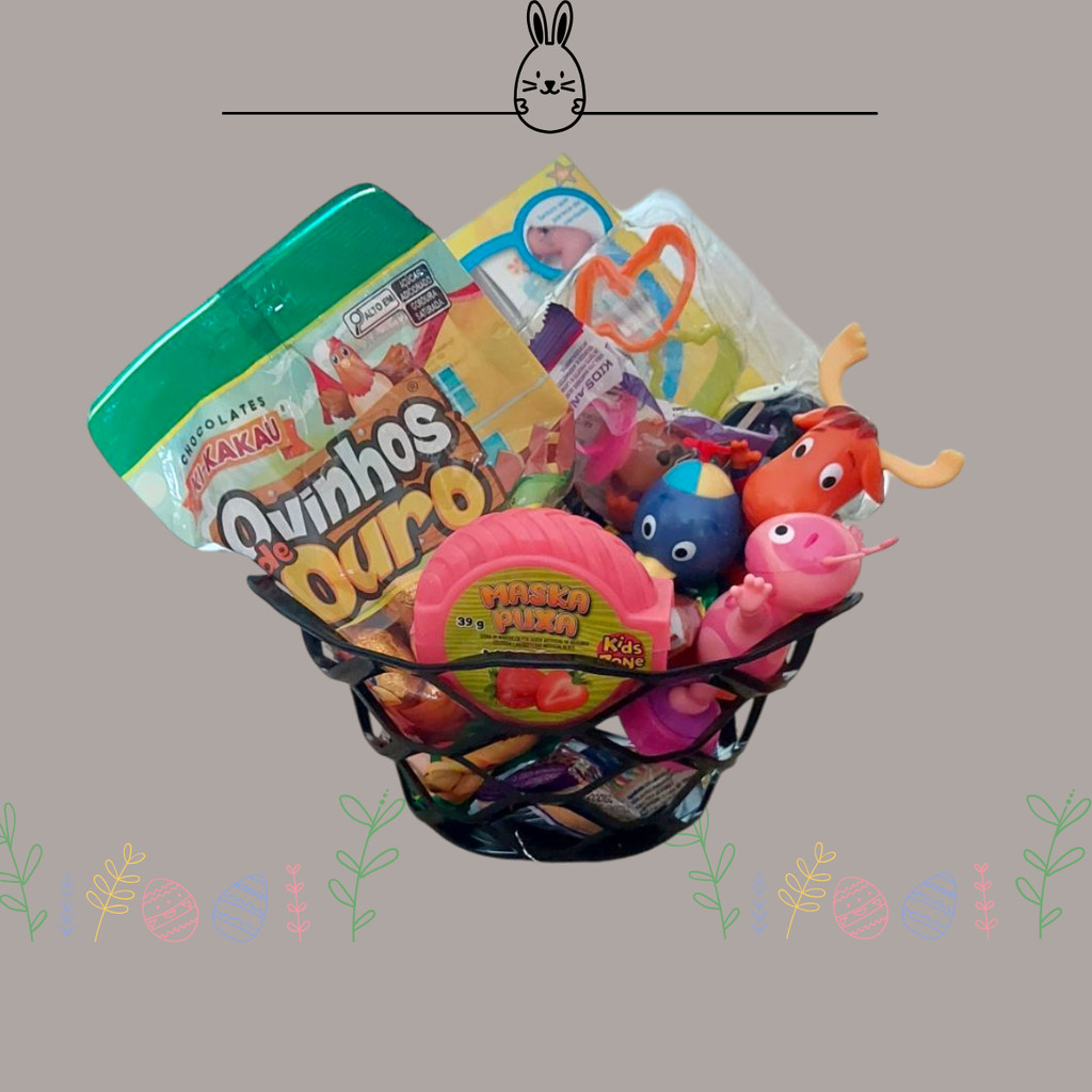 Cesta Ovo De Páscoa Chocolate Bombons Brinquedo Presente