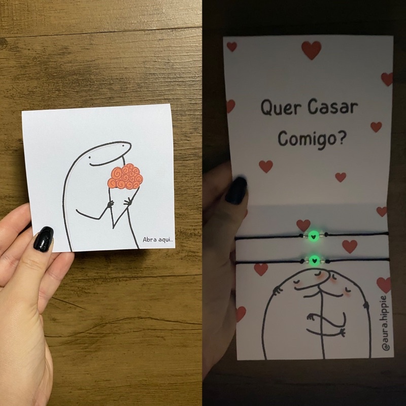 Kit Pulseiras Meme Casal Amizade Pedido de namoro Casa comigo Pedido Casamento Presente criativo coração brilha no escuro