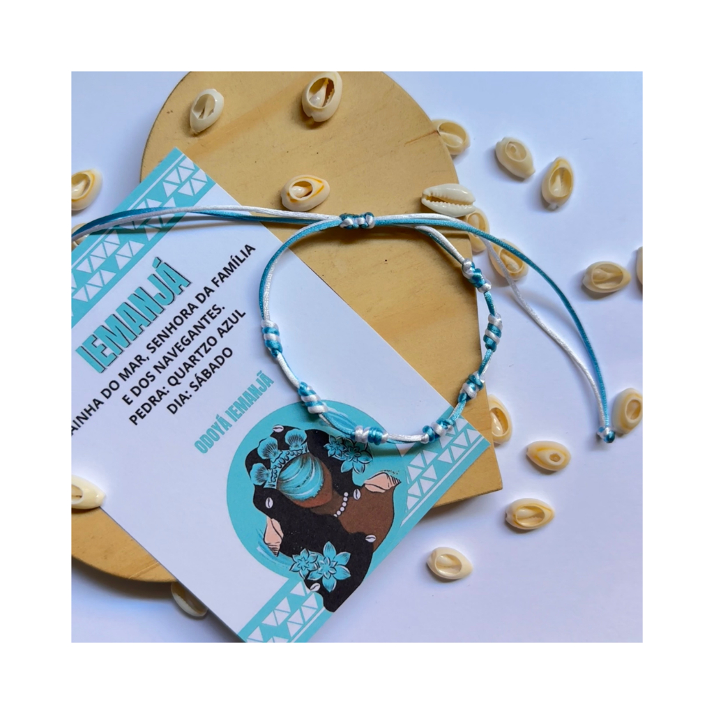 PULSEIRA 7 SETE NÓS KABALLAH CABALA PROTEÇÃO ORIXÁS BICOLOR AJUSTÁVEL - IEMANJÁ