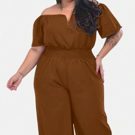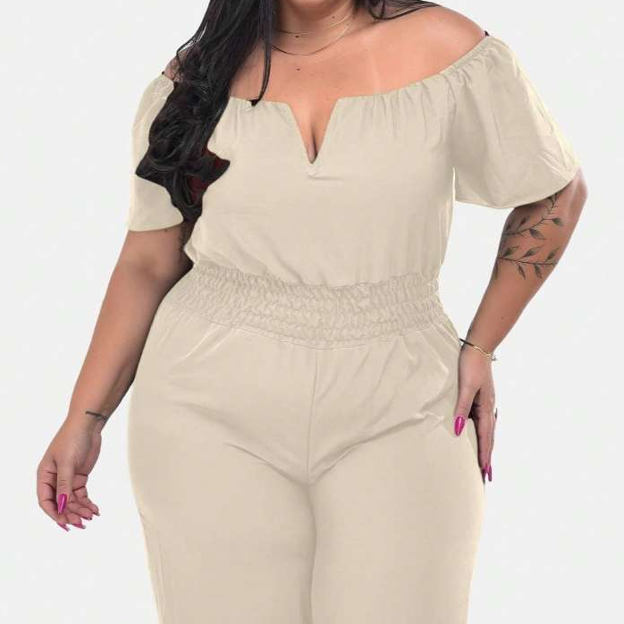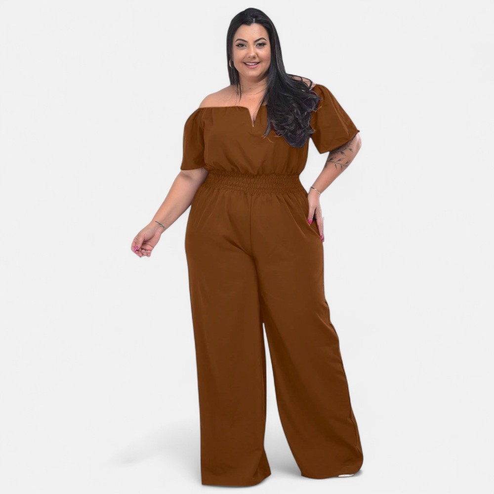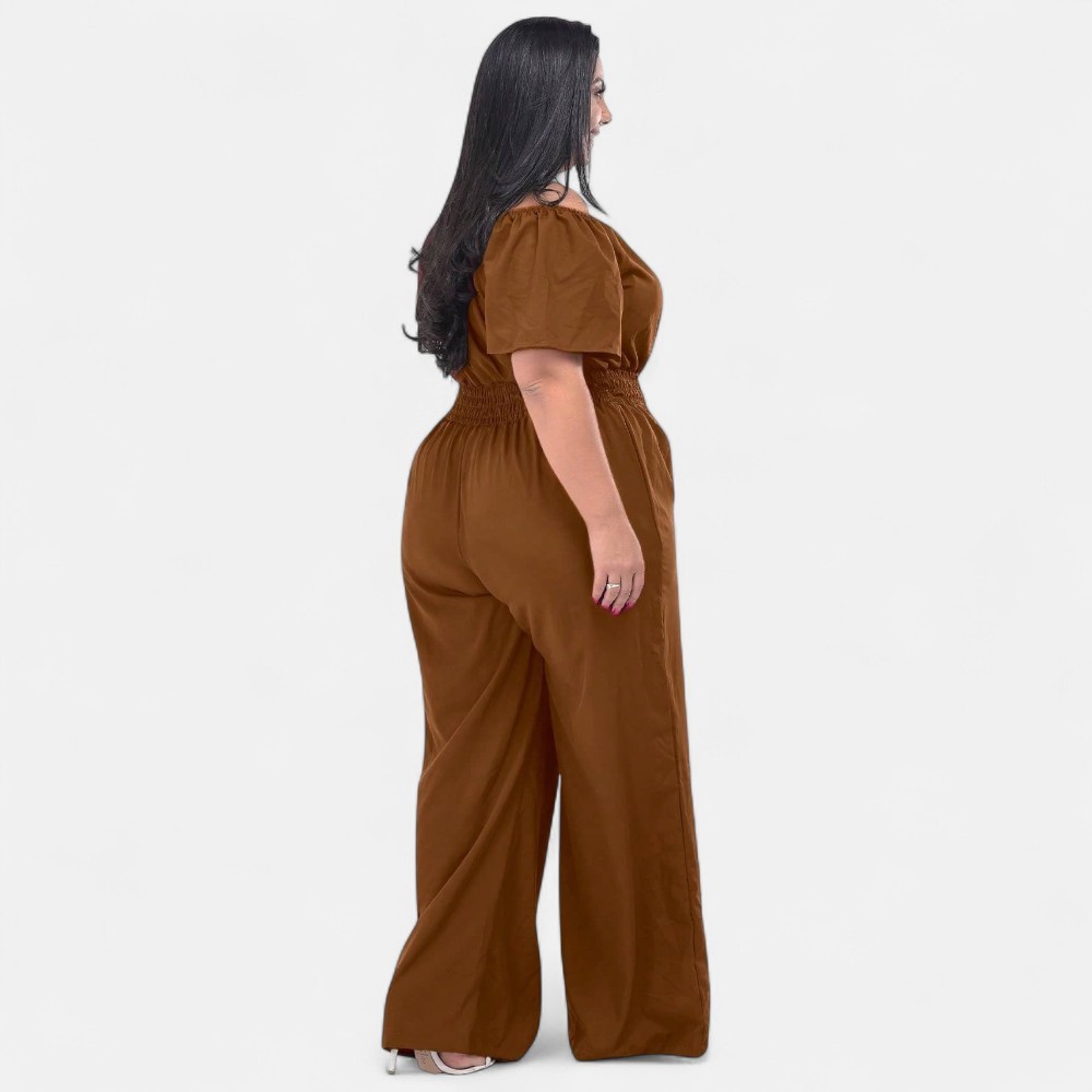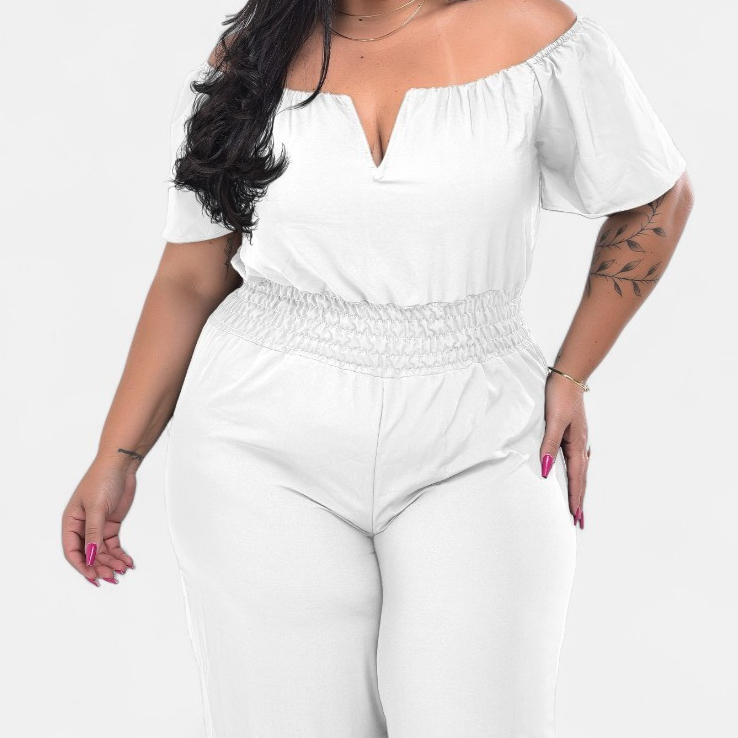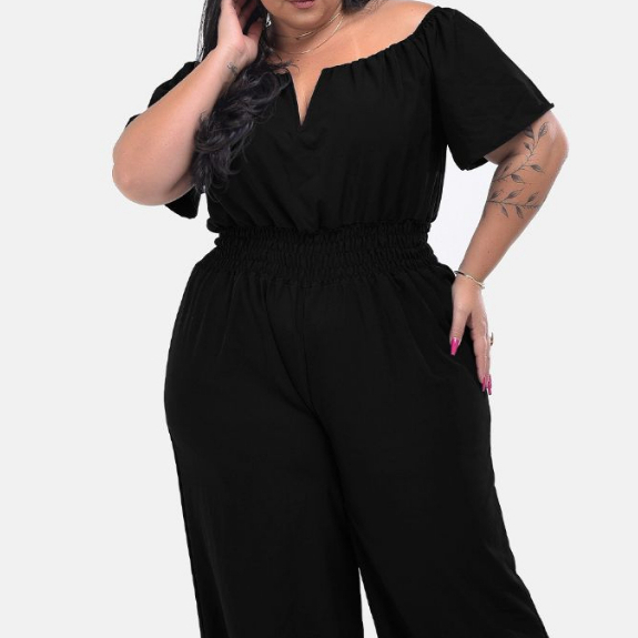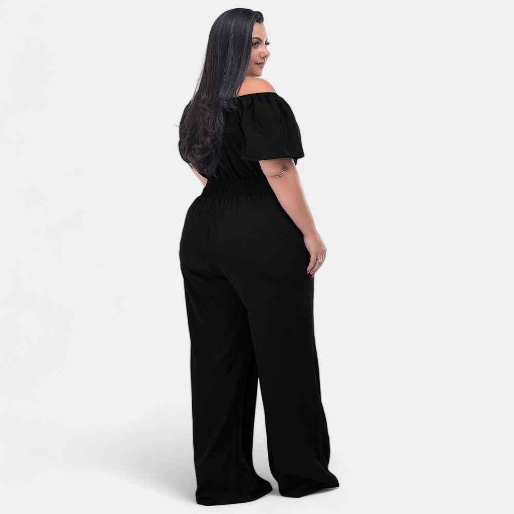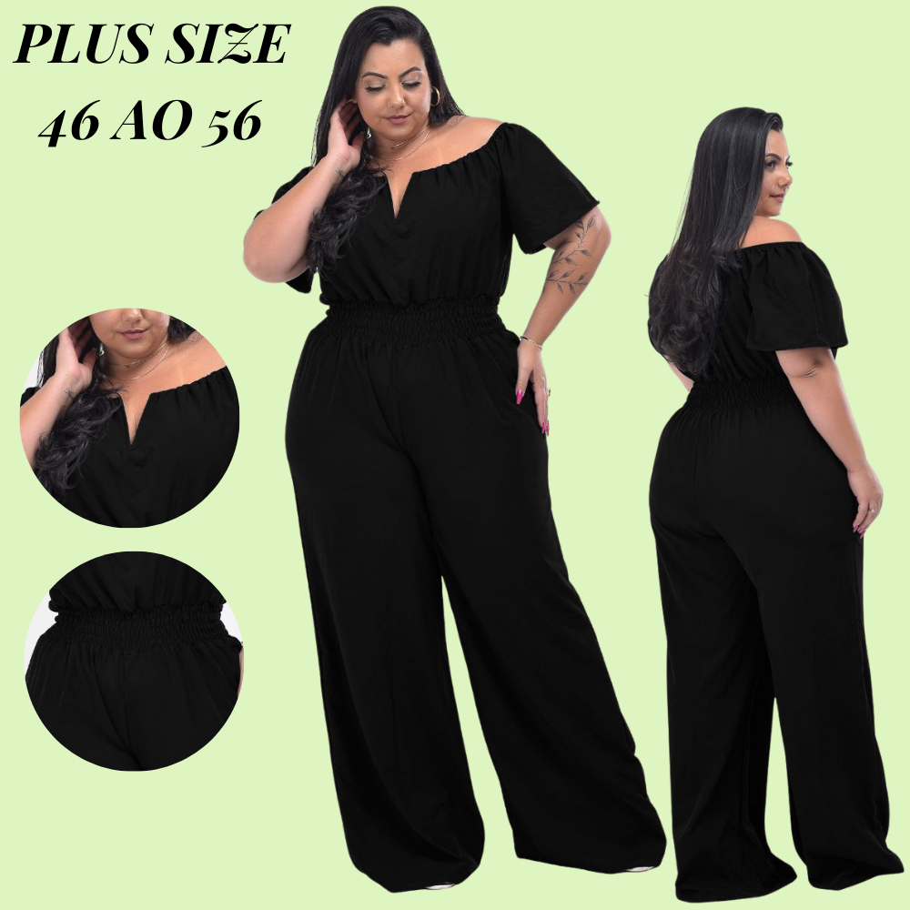 Macacão Longo Plus Saize Basico com Decote Sexy Tecido Premium