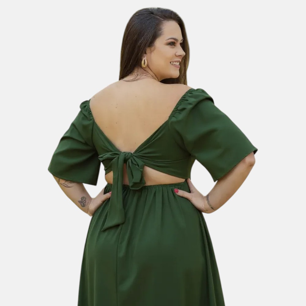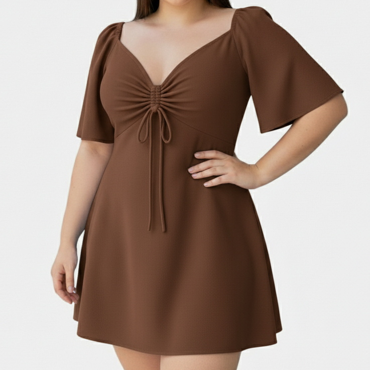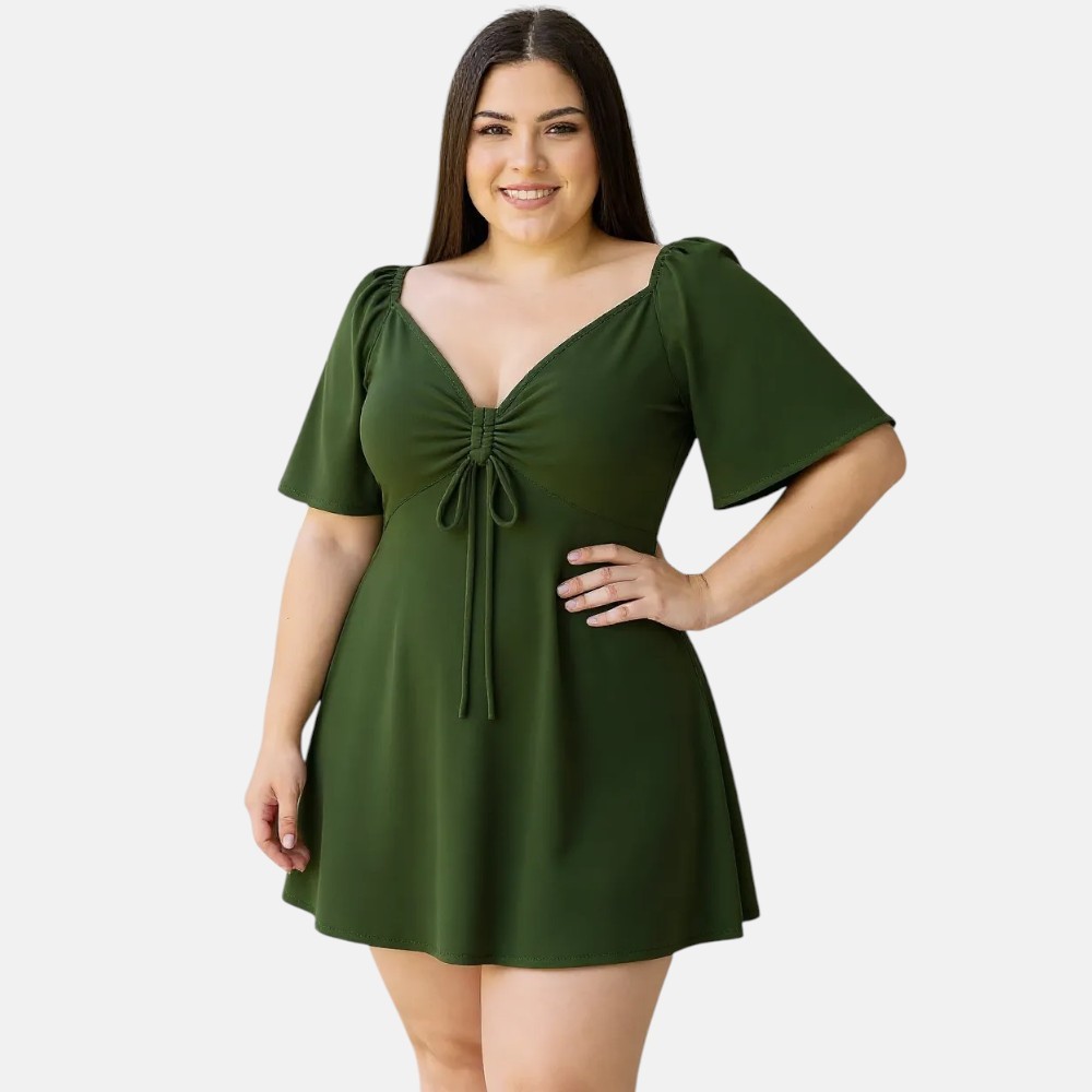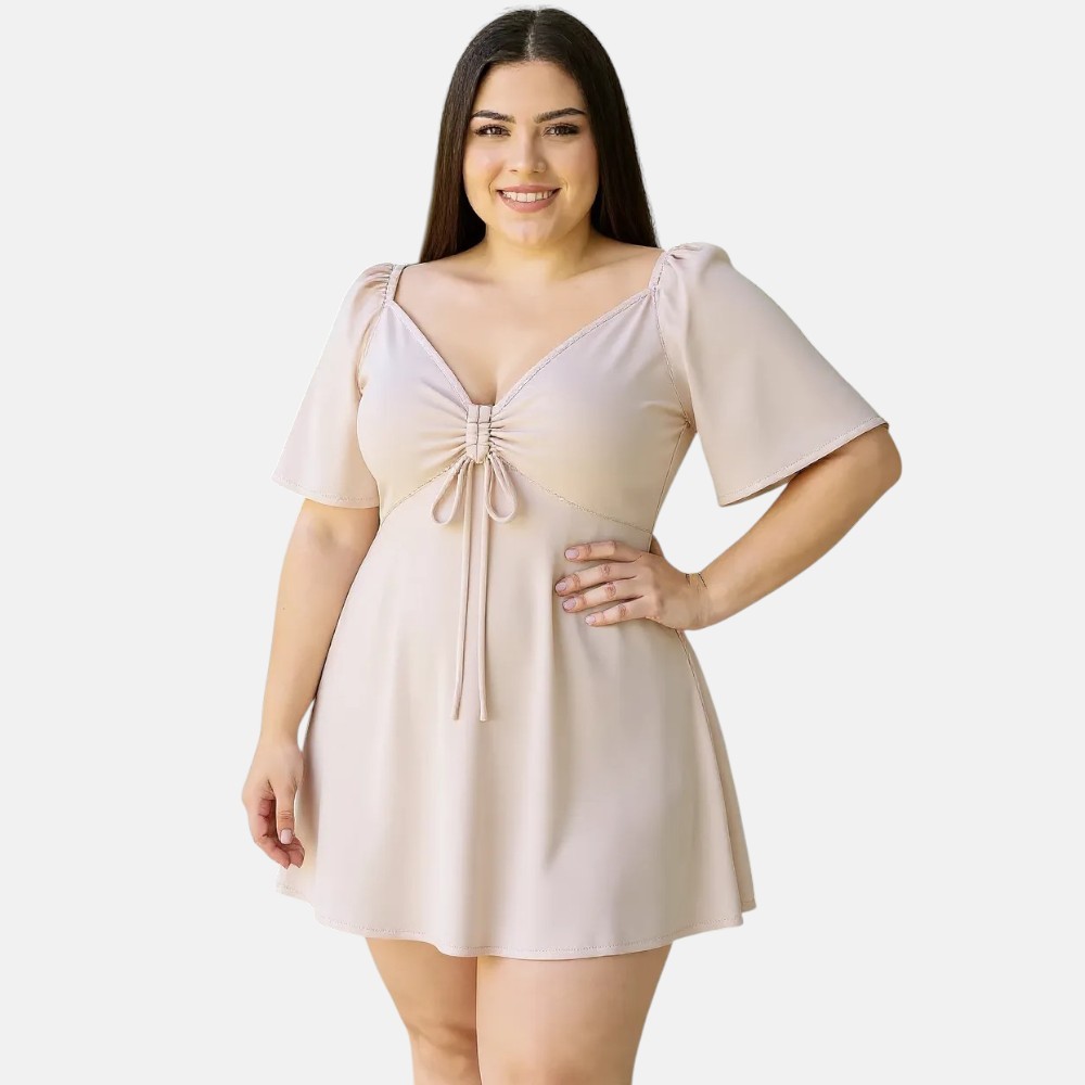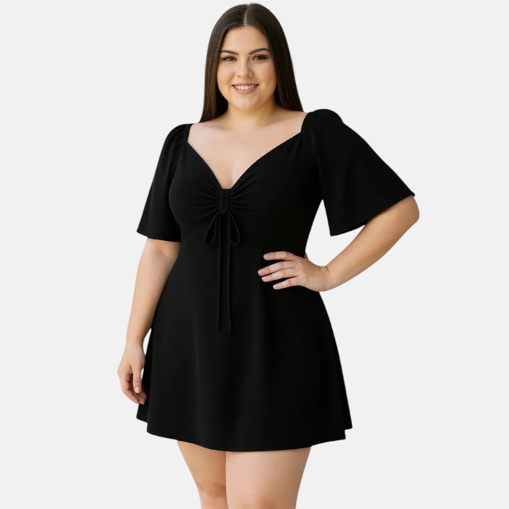 Vestido Curto Plus Size Decotado Sexy Tecido Crepe