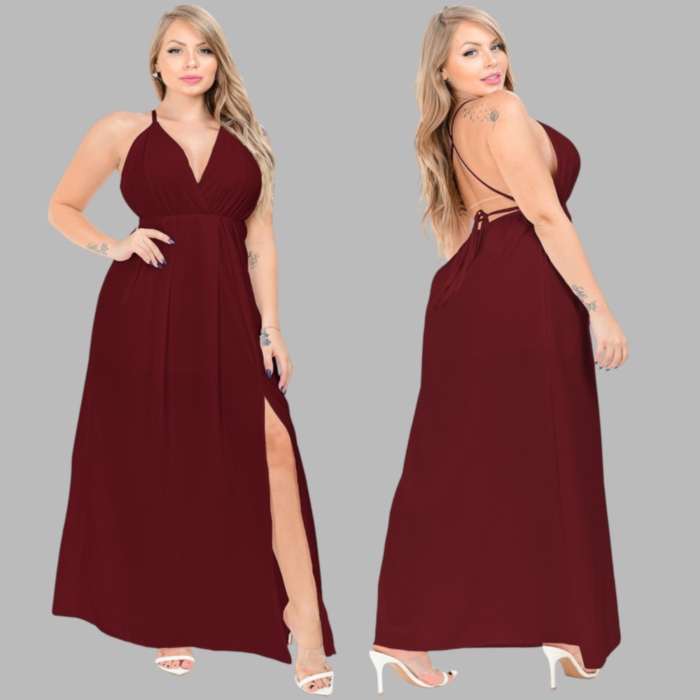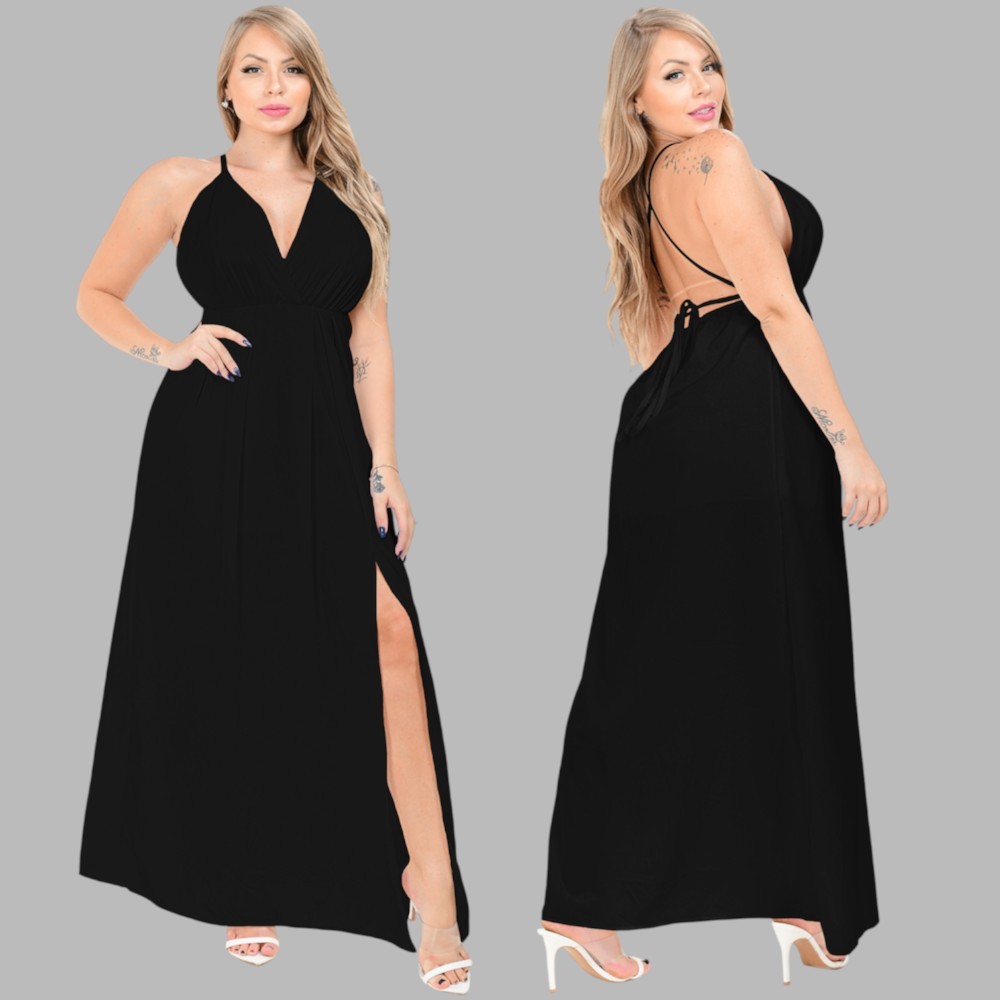 Vestido Longo casamento Festa Final de Ano Decotado fenda Na Perna Vermelho Preto Branco Madrinha