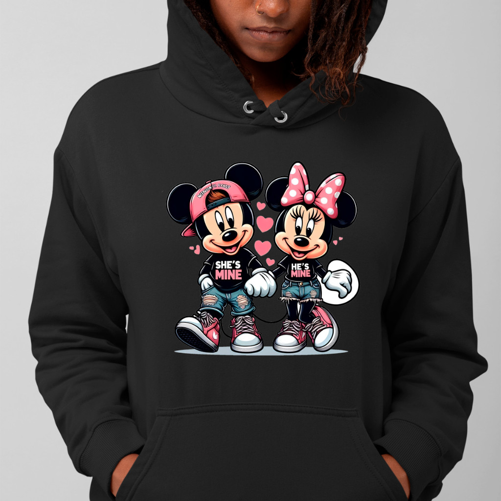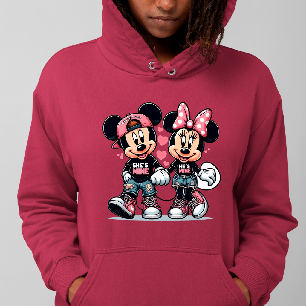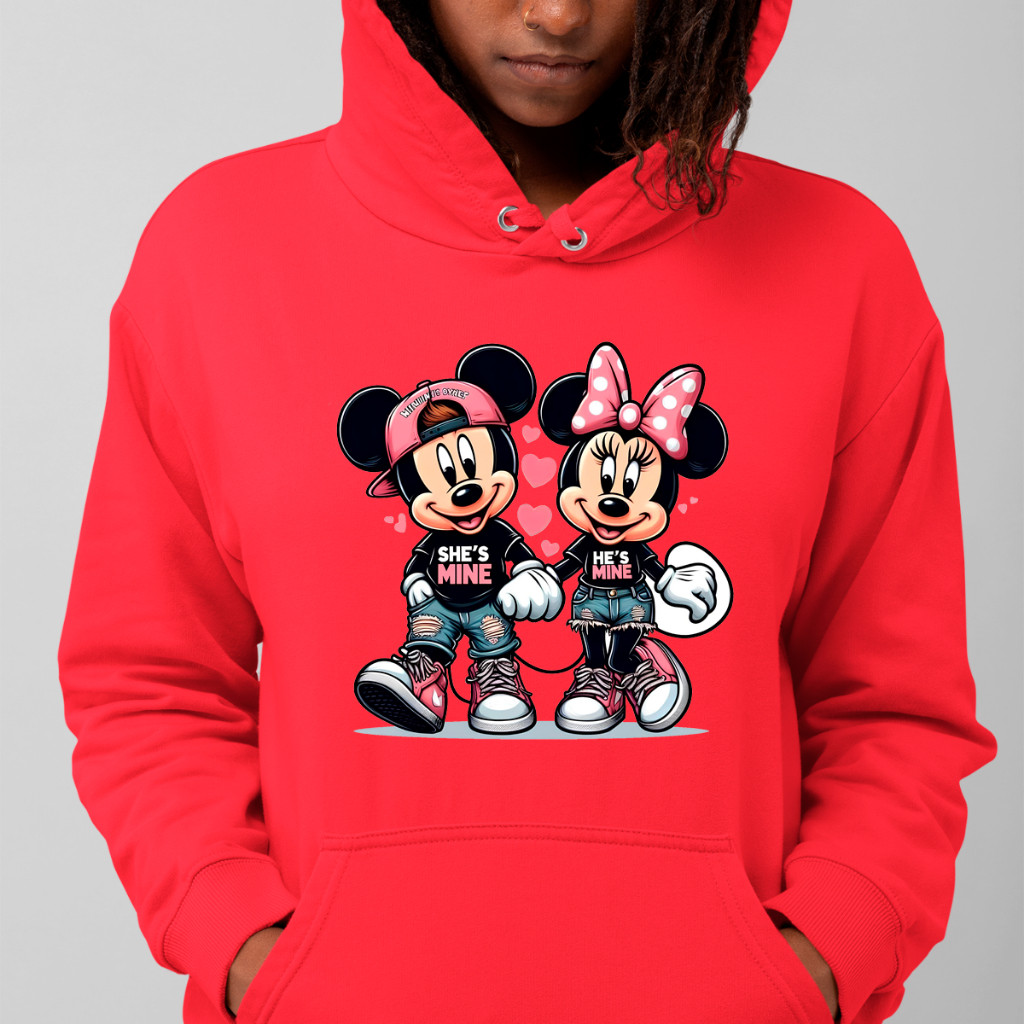 Moletom Canguru Feminino Gorro E Bolsos Casal Mickey E Minnie Super Fofos 100% Algodão Flanelado