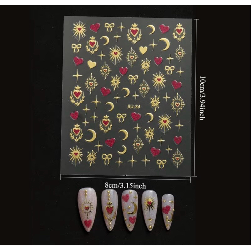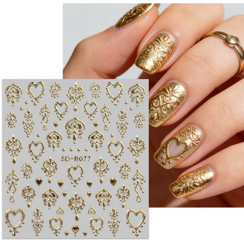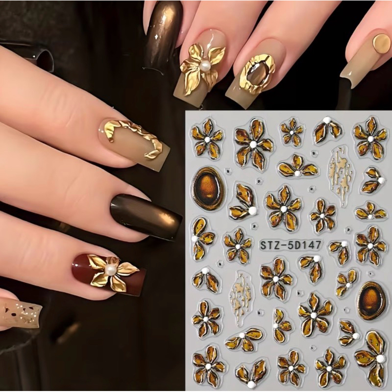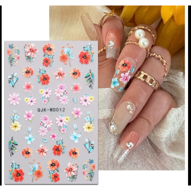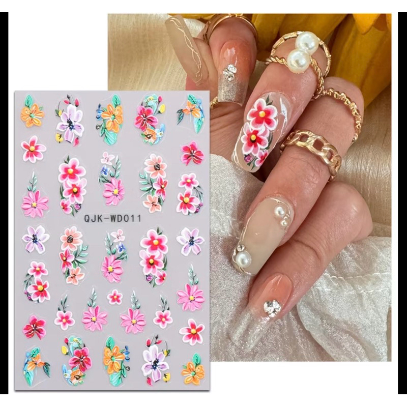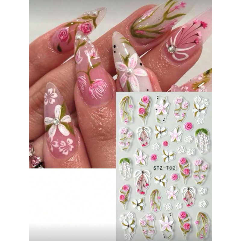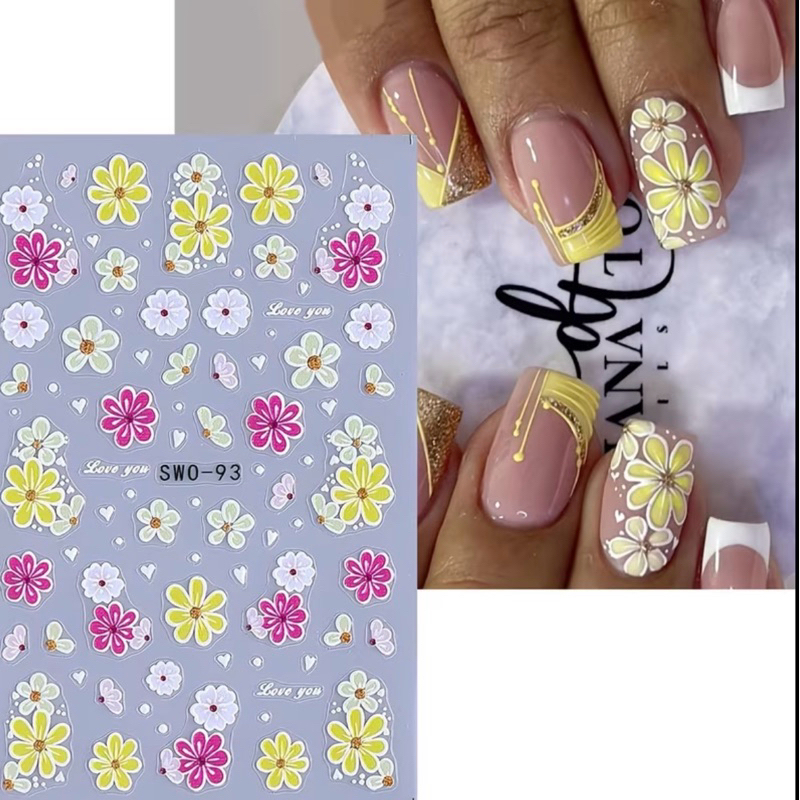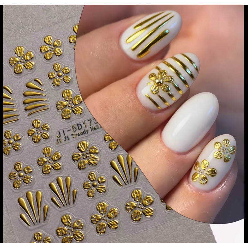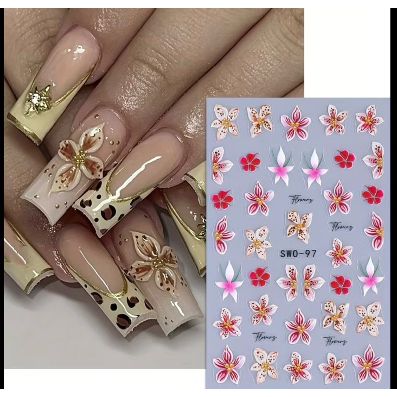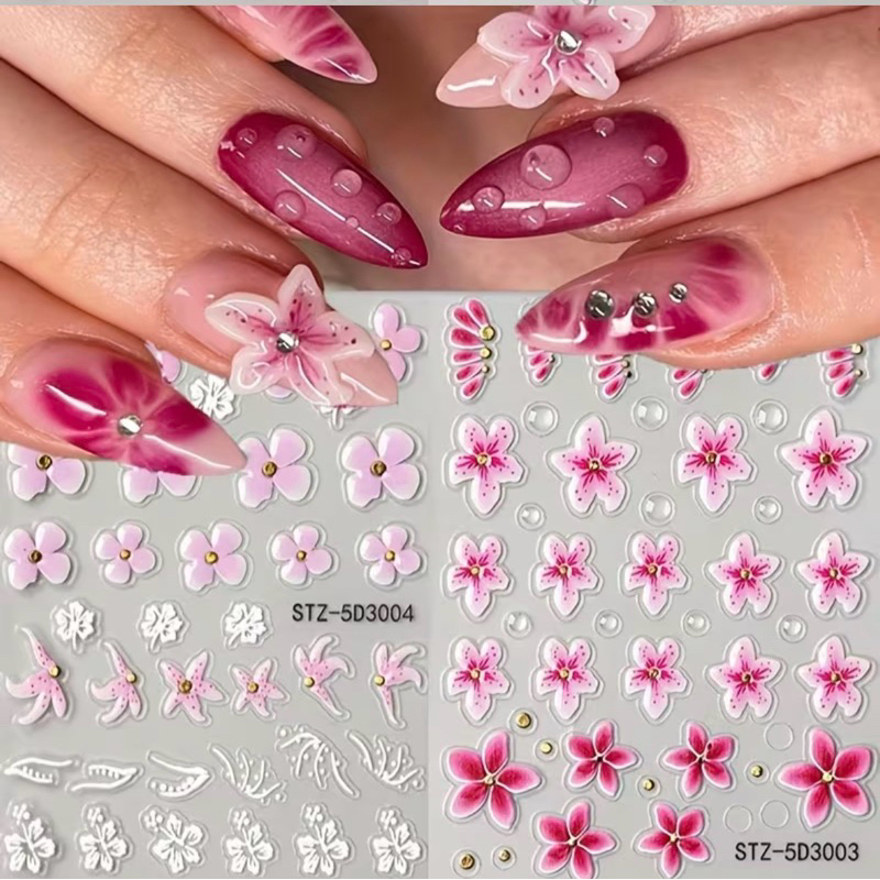 Uma Cartela De Adesivos de Unhas Flores Rosas com Detalhes Dourados | Nail Art Autocolante Y2K - ENVIO RÁPIDO