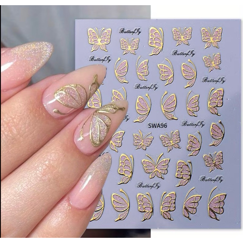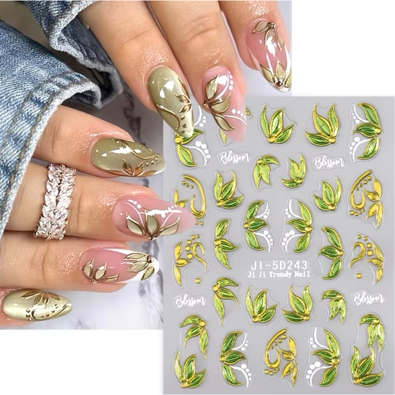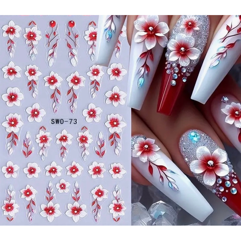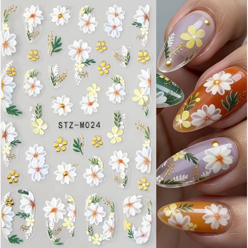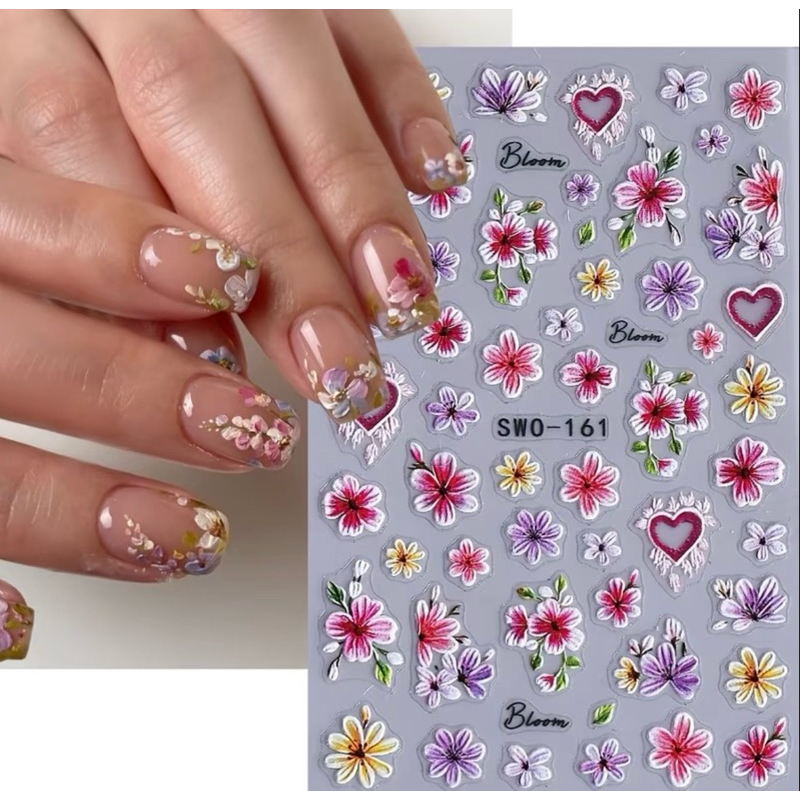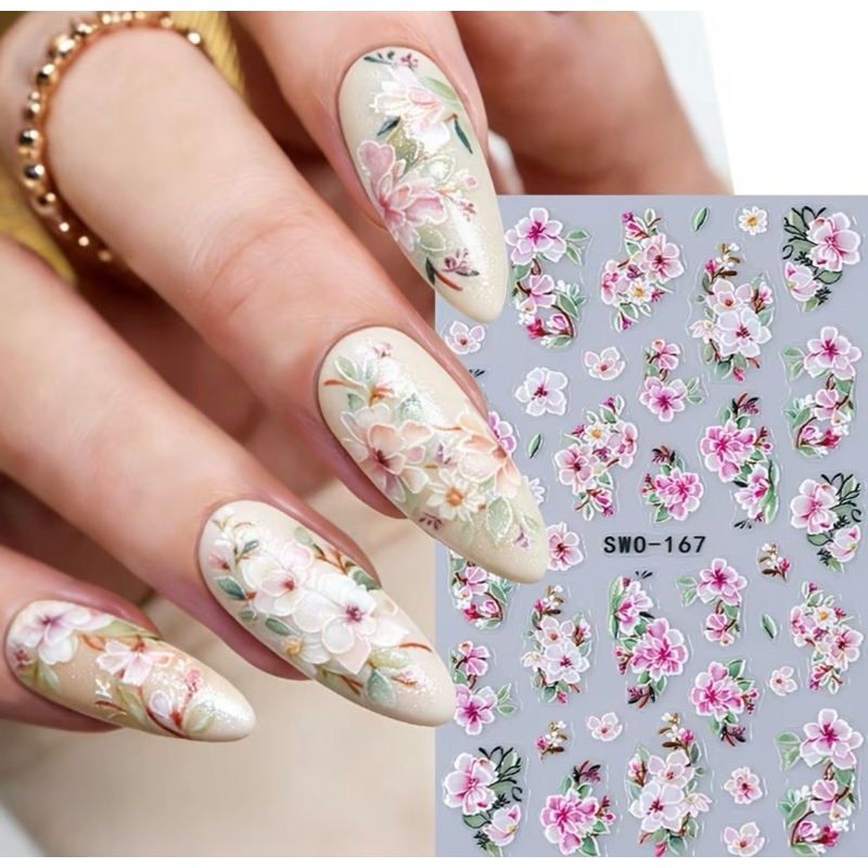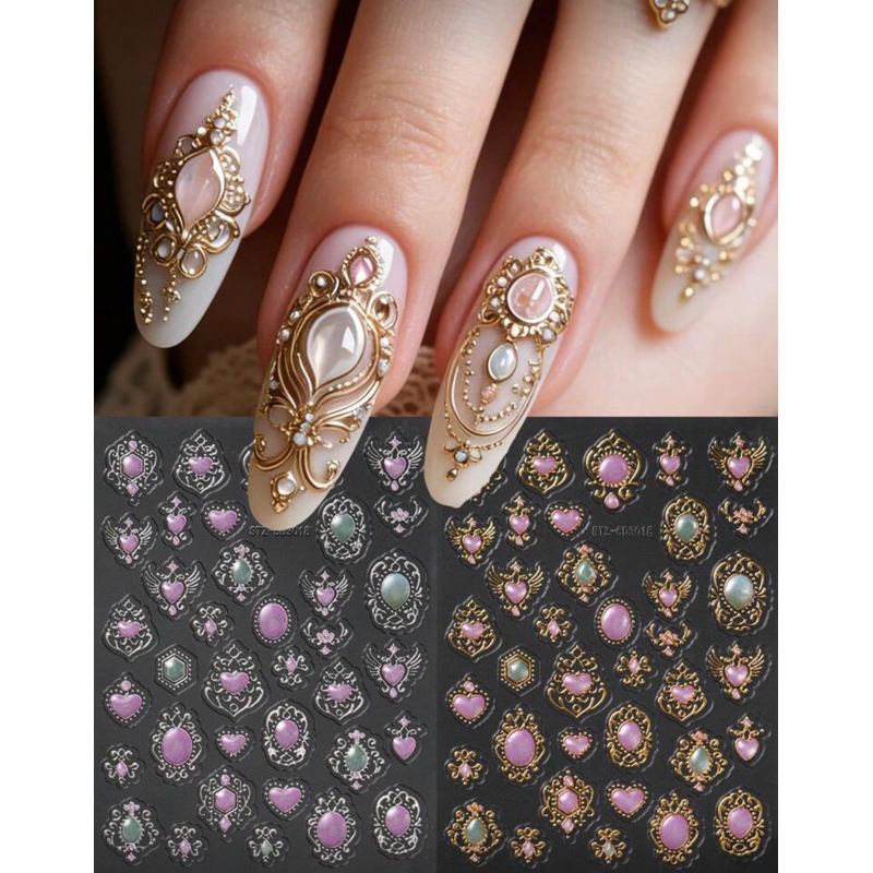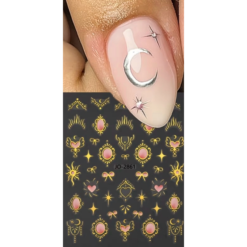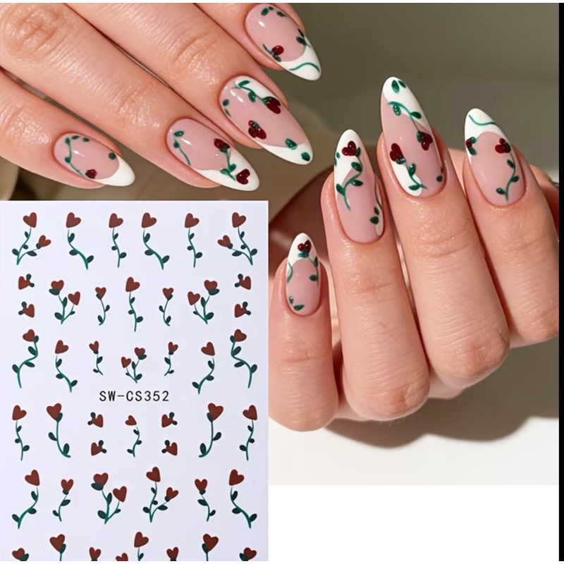Uma Cartela De Adesivos de Unhas Flores Rosas com Detalhes Dourados | Nail Art Autocolante Y2K - ENVIO RÁPIDO