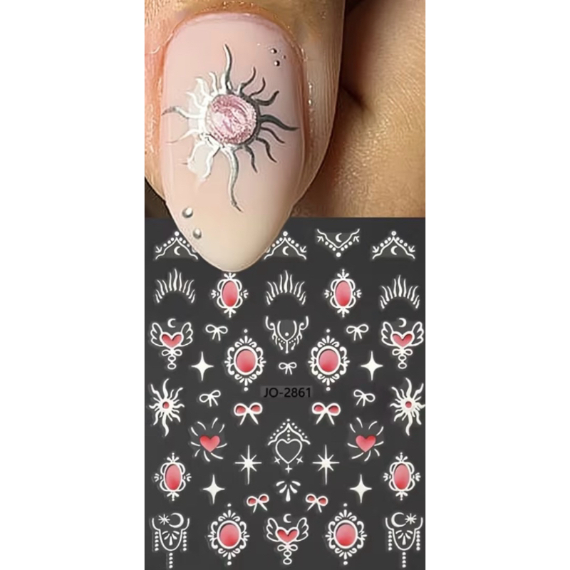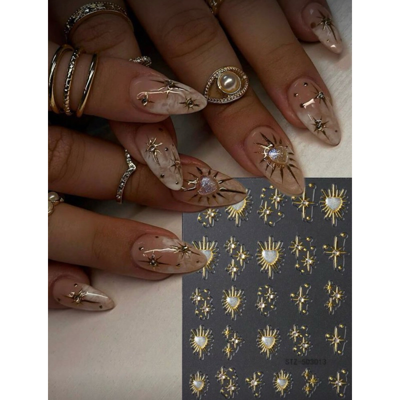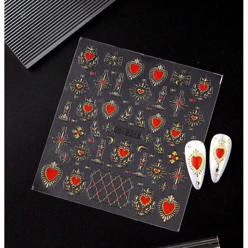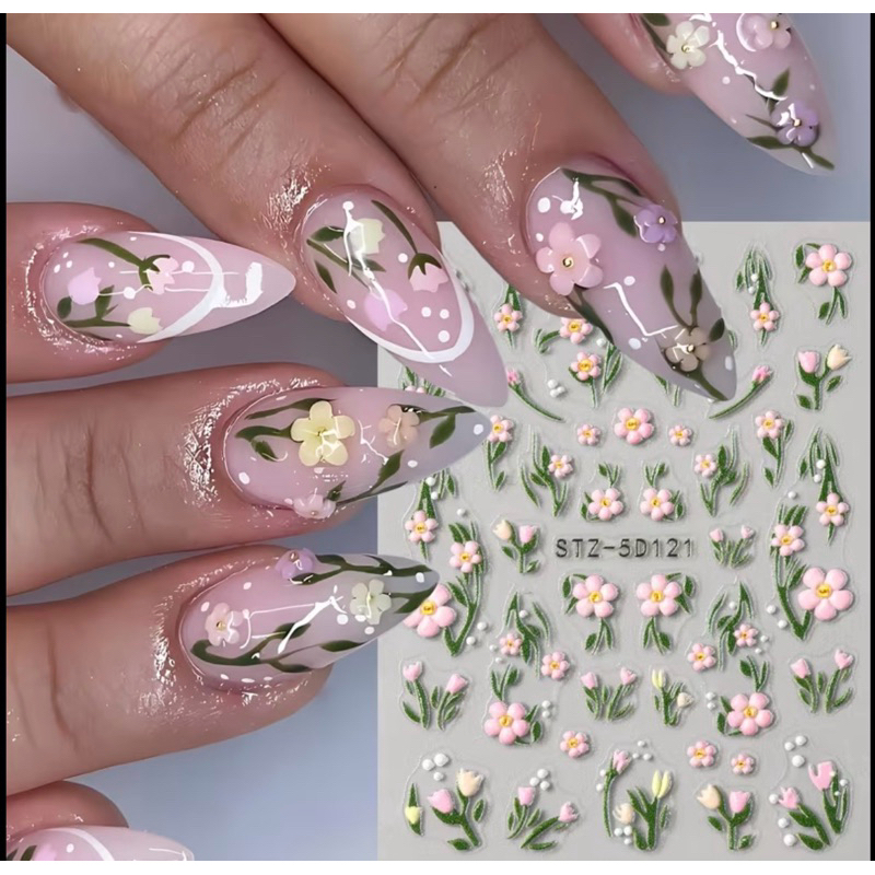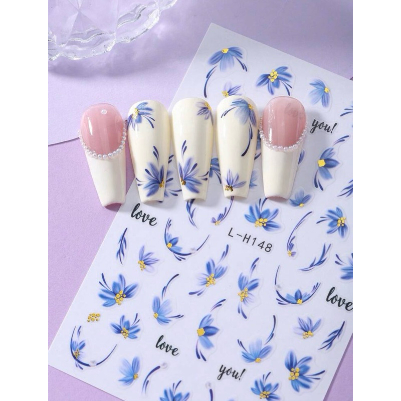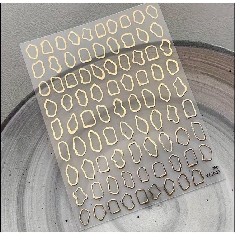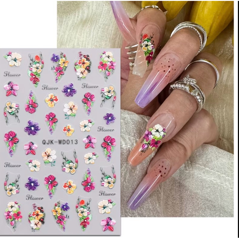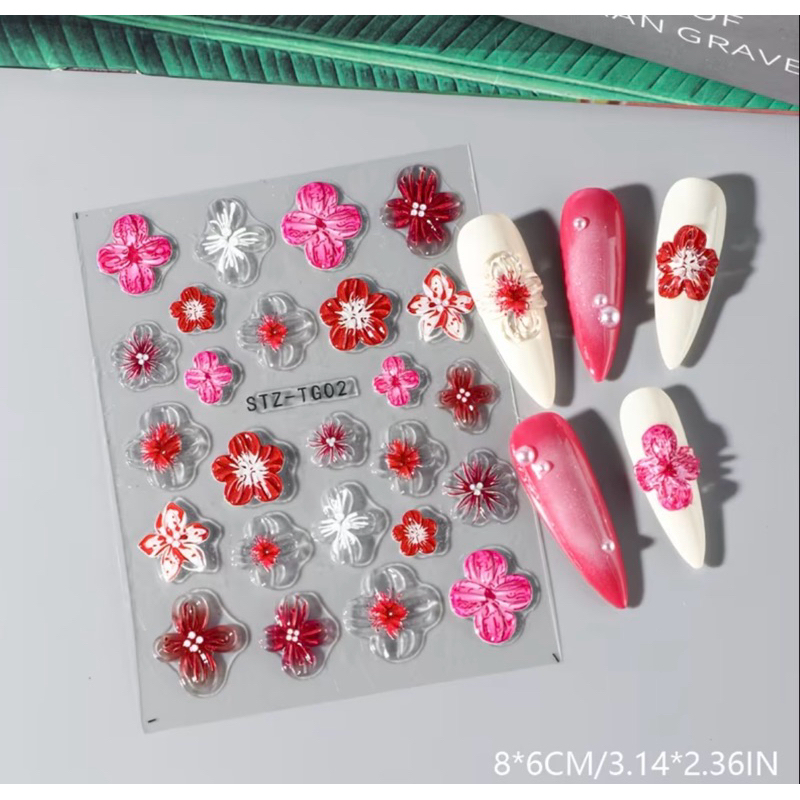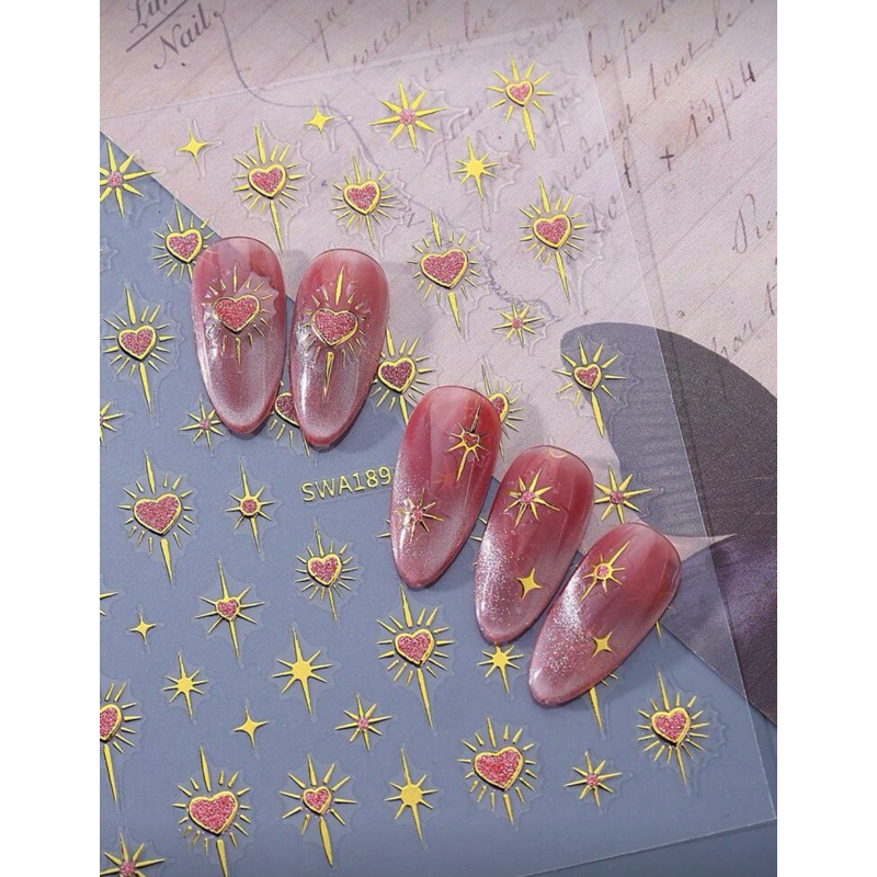Uma Cartela De Adesivos de Unhas Flores Rosas com Detalhes Dourados | Nail Art Autocolante Y2K - ENVIO RÁPIDO