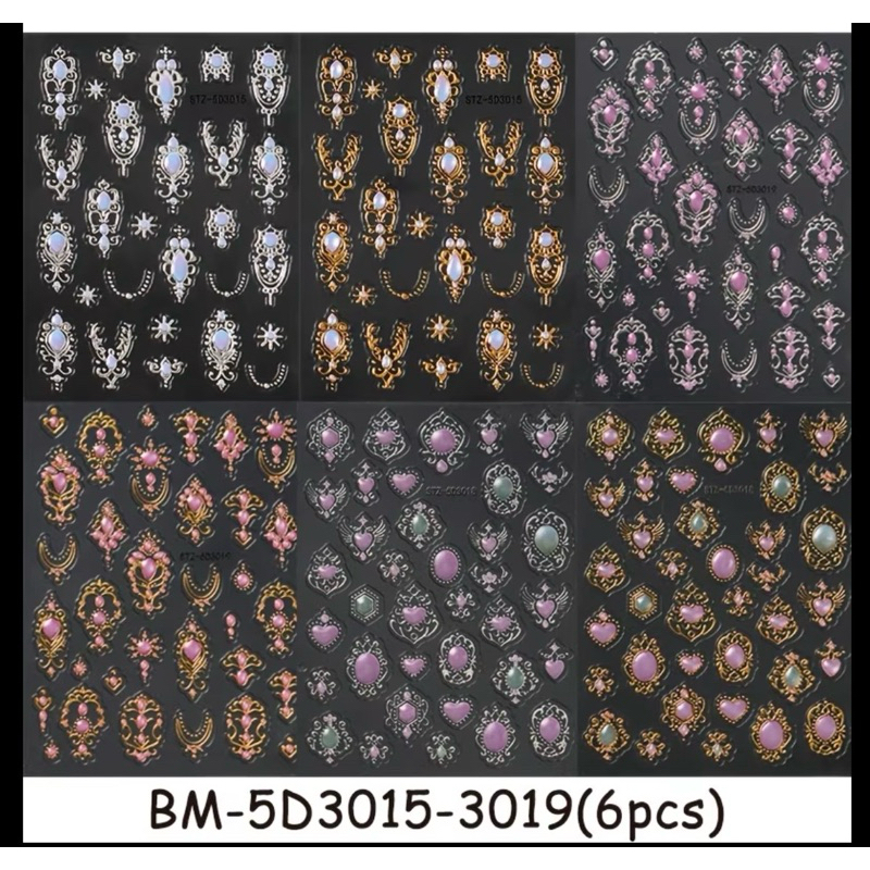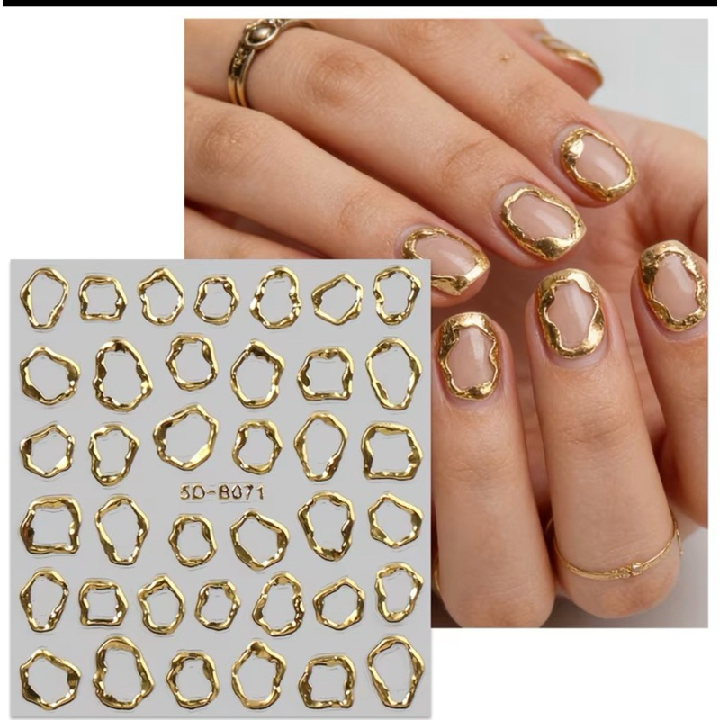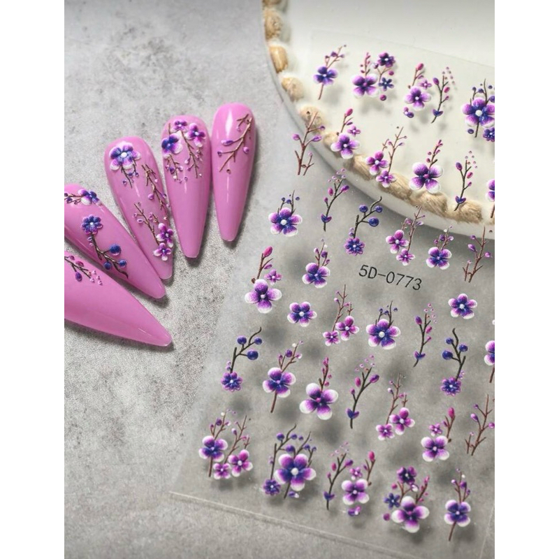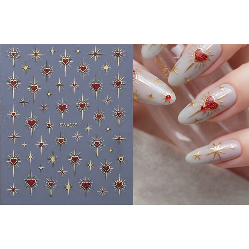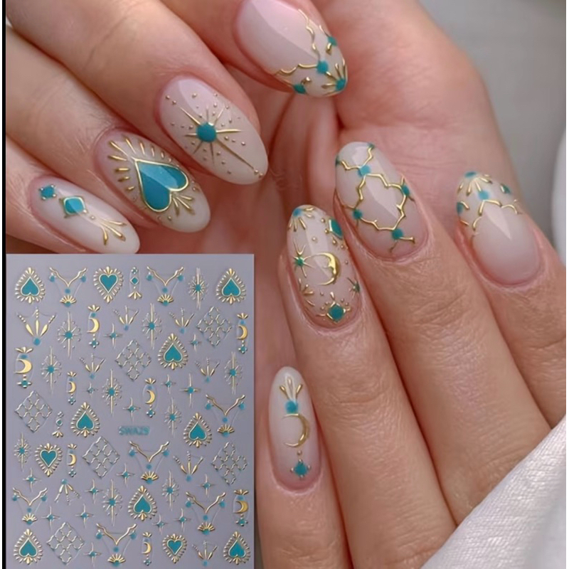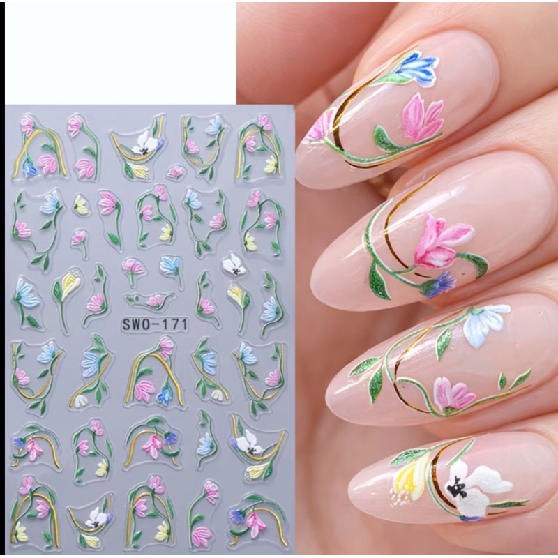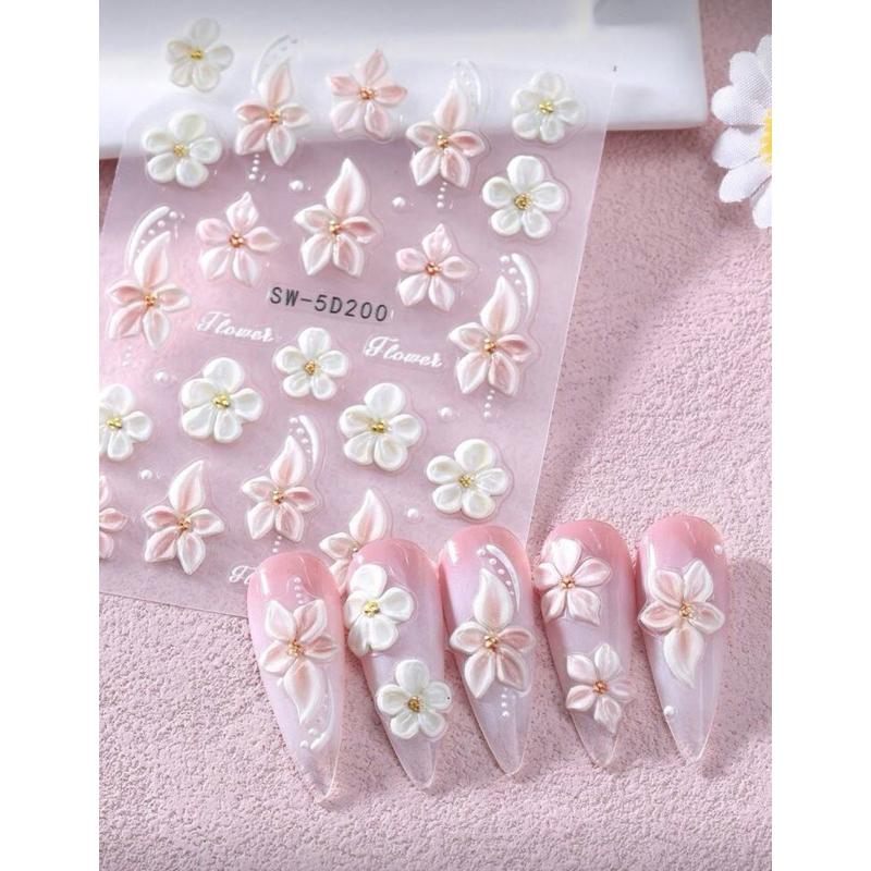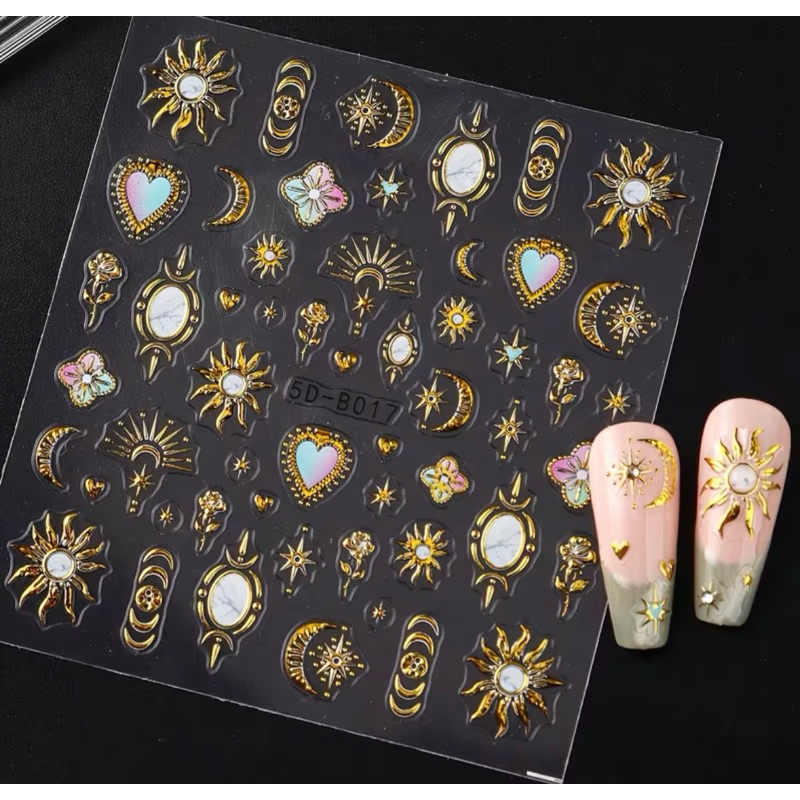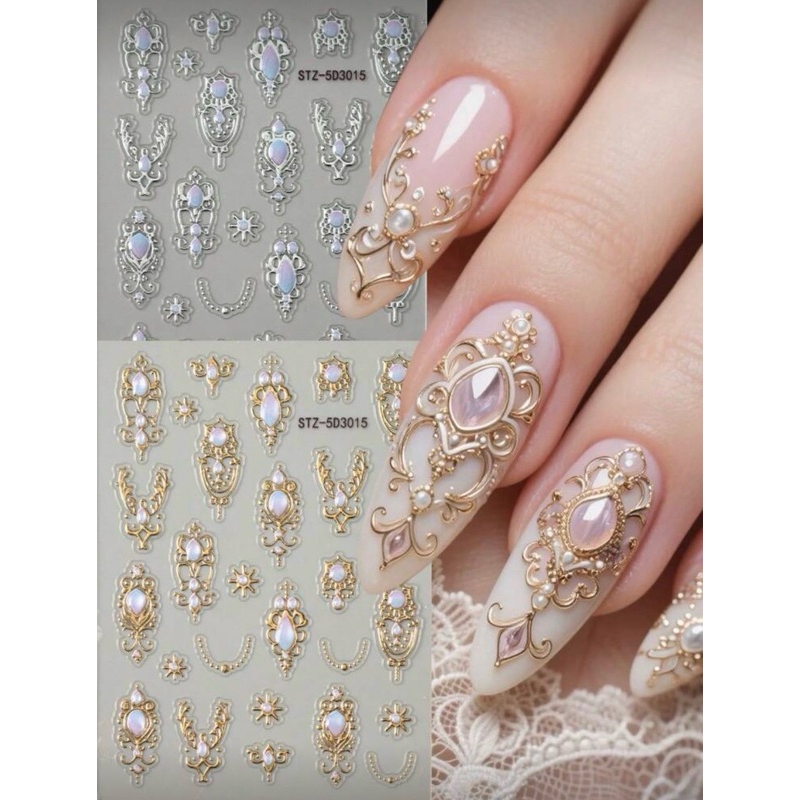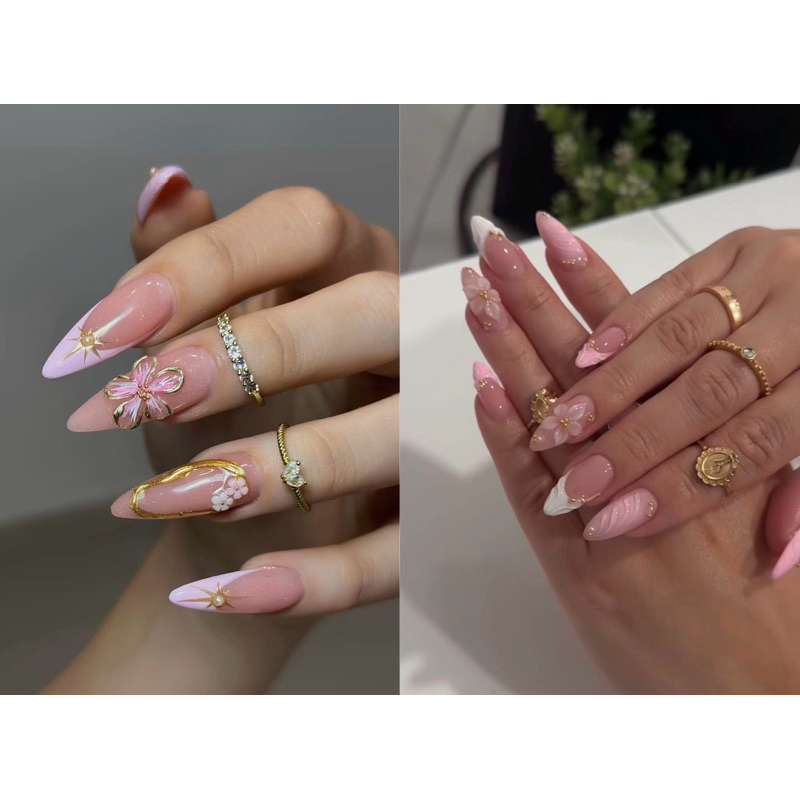 Uma Cartela De Adesivos de Unhas Flores Rosas com Detalhes Dourados | Nail Art Autocolante Y2K - ENVIO RÁPIDO