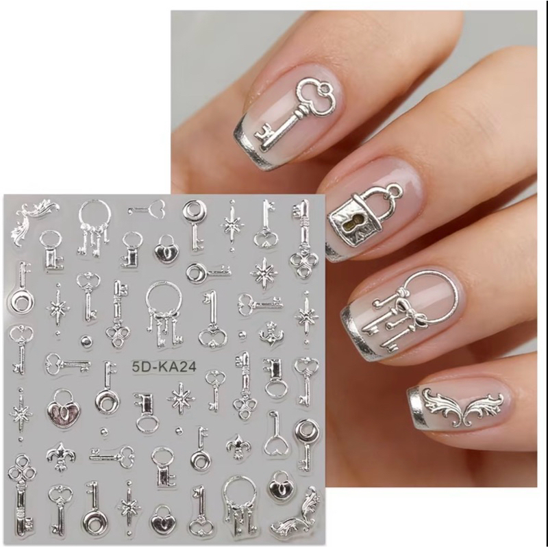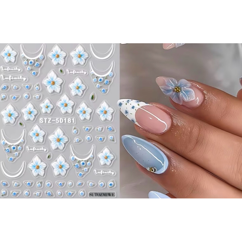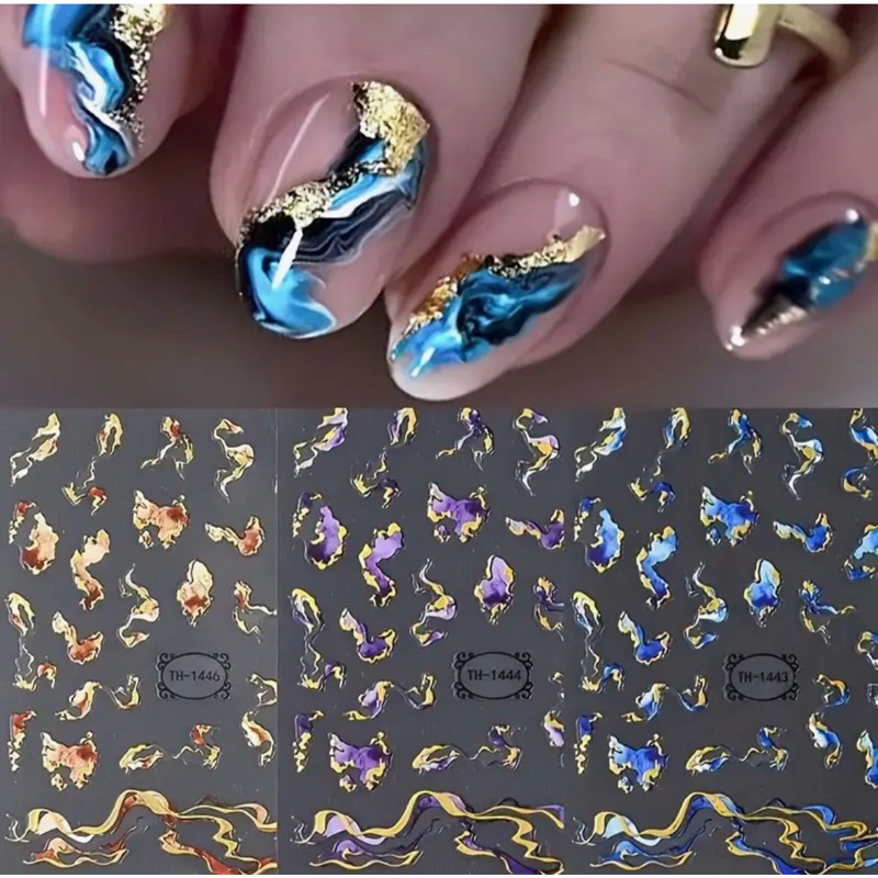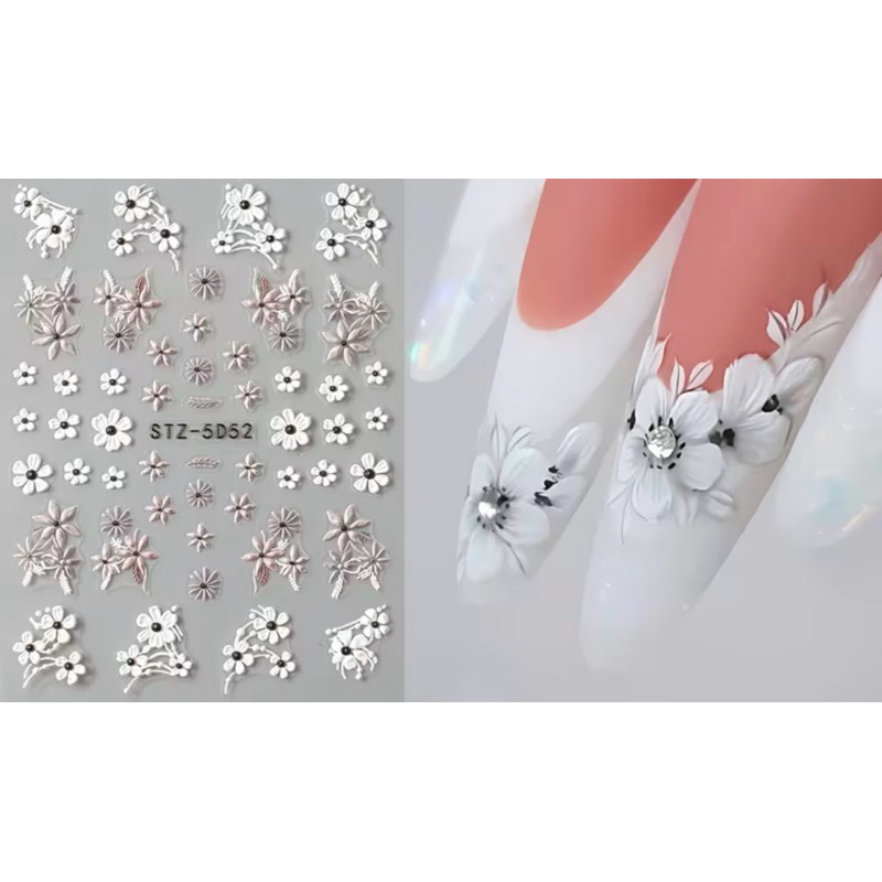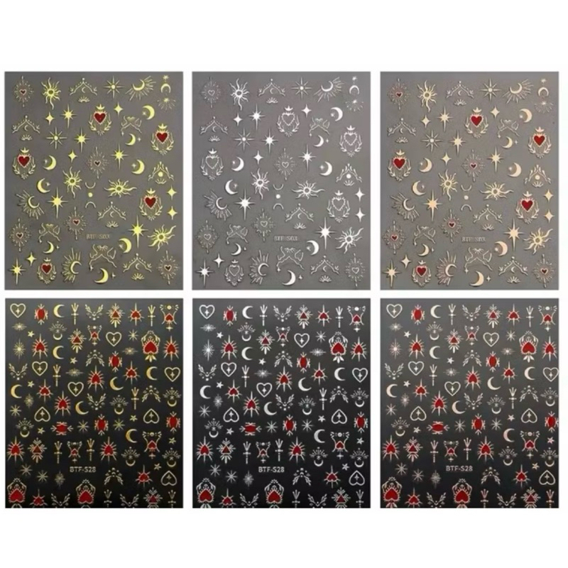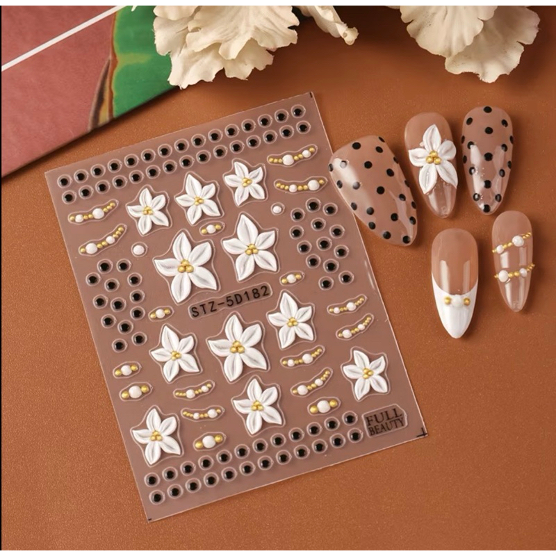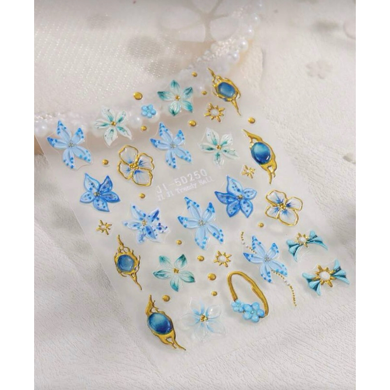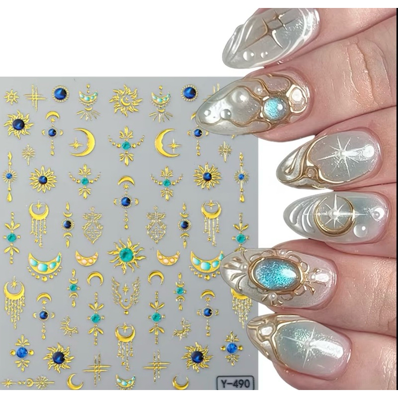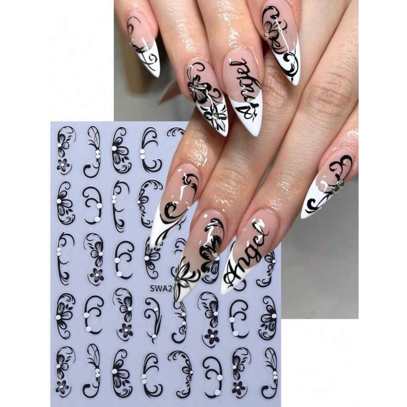 Uma Cartela De Adesivos de Unhas Flores Rosas com Detalhes Dourados | Nail Art Autocolante Y2K - ENVIO RÁPIDO