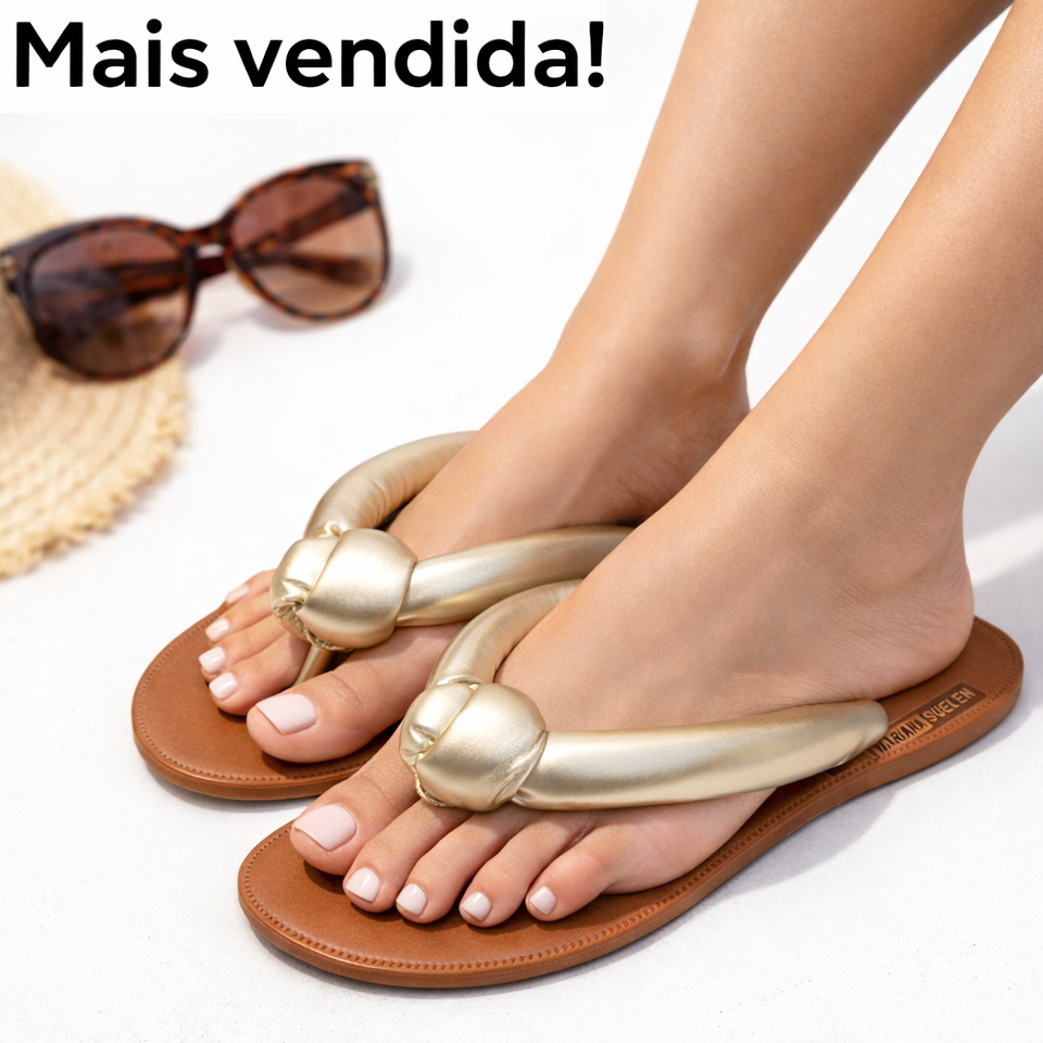 Chinelo rasteira feminina acolchoado nuvem confortável dourada 205