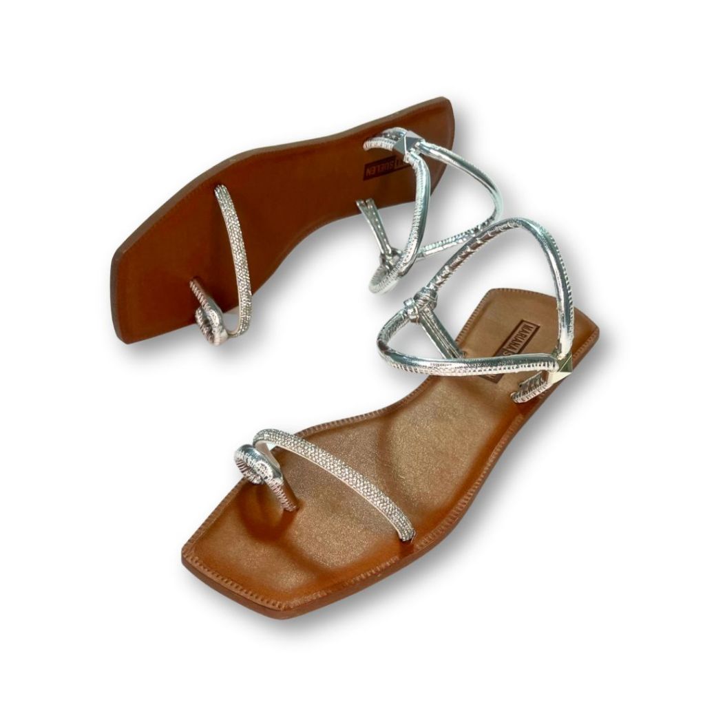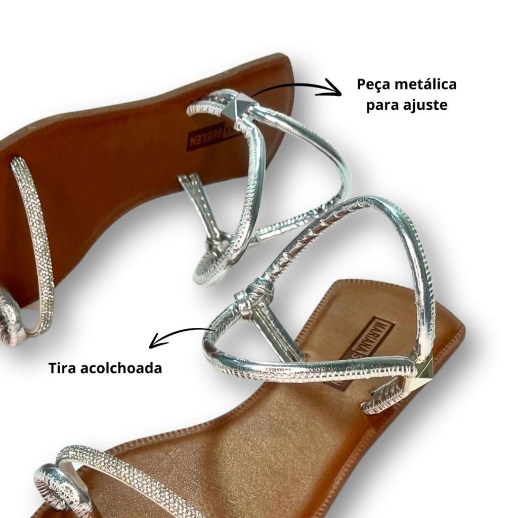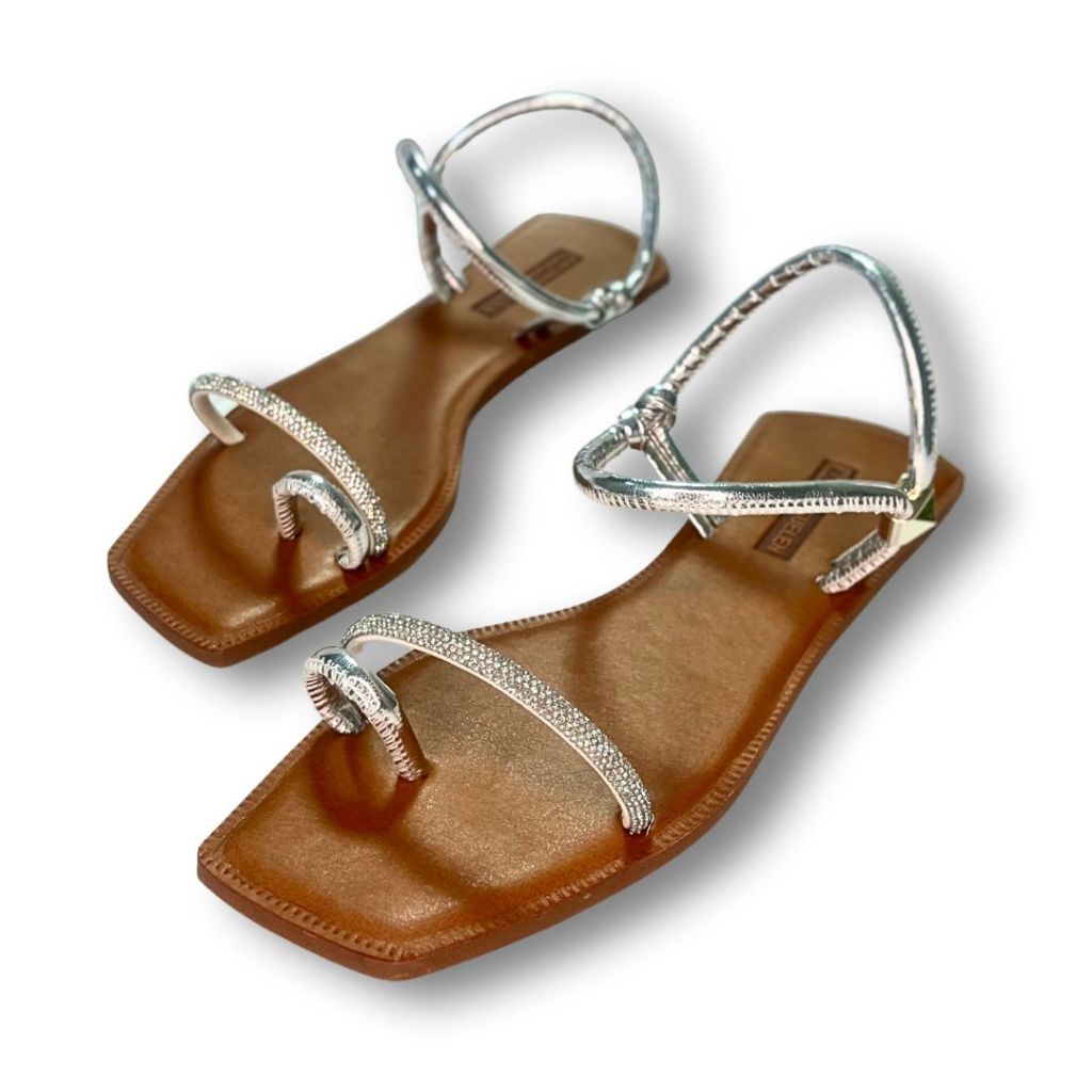 Sandália Feminina Rasteira confortável Prata com Strass 008