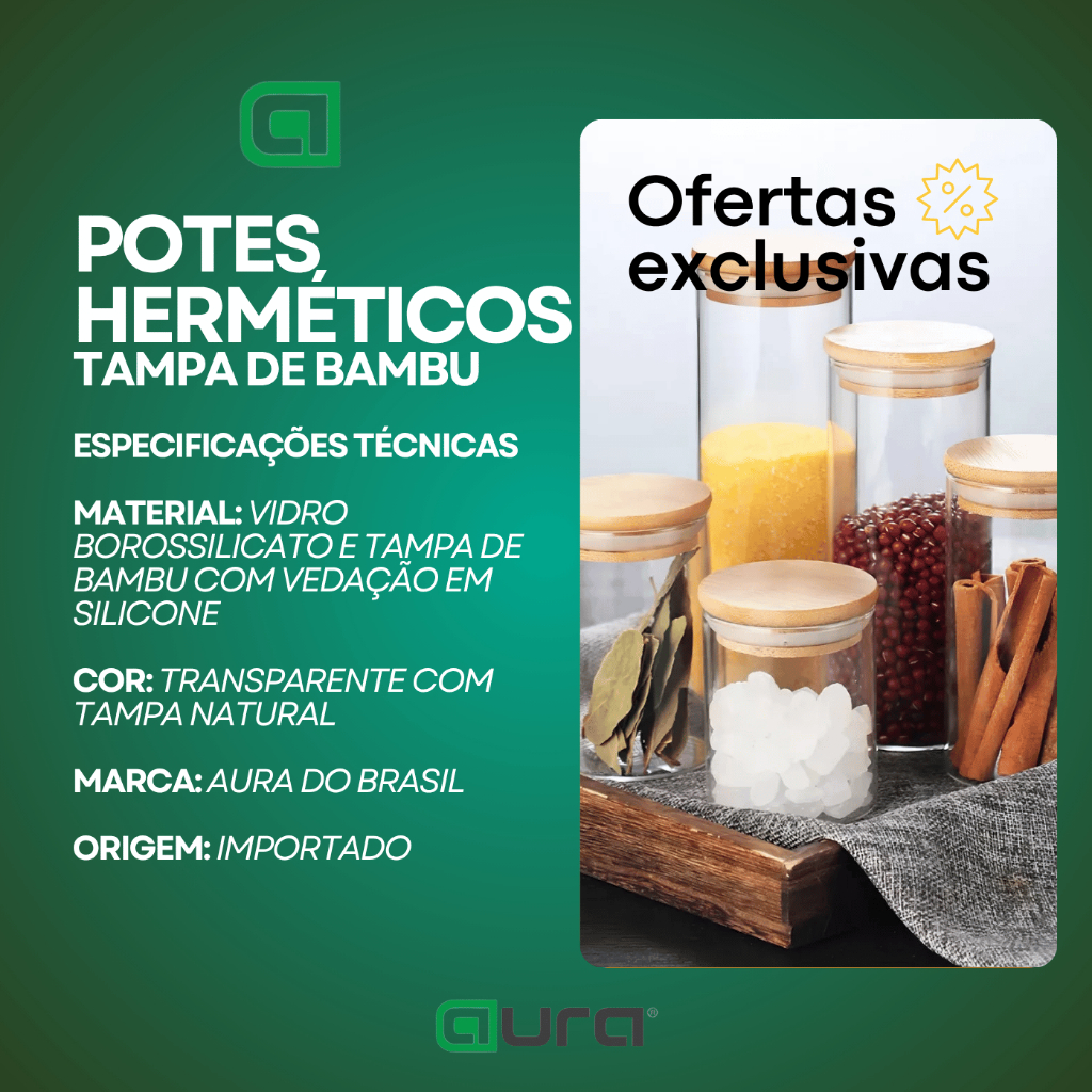Porta Mantimento De Vidro Herméticos Potes Tampa De Bambu