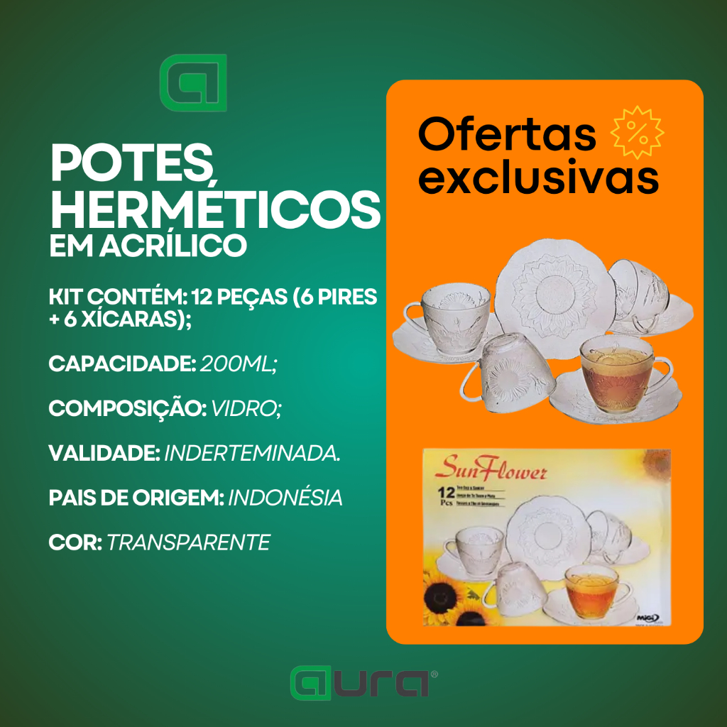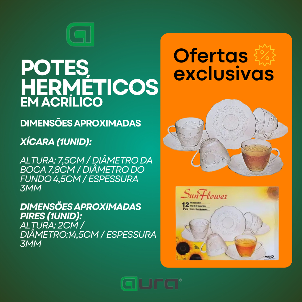 Conjunto de Xícaras e Pires em Vidro 200 Ml 12 Peças