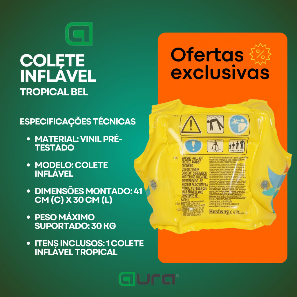 Colete Boia Inflável Infantil Tropical Salva Vidas Bel