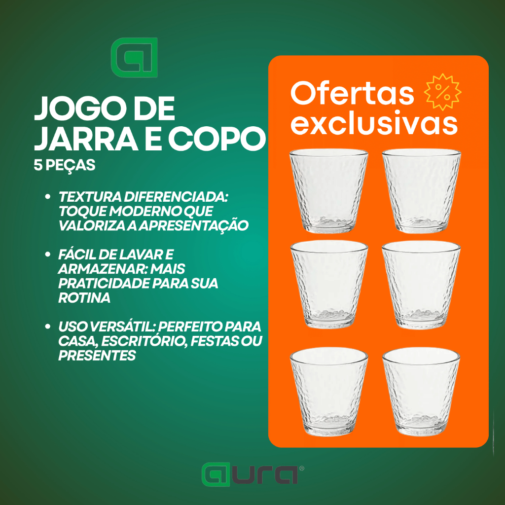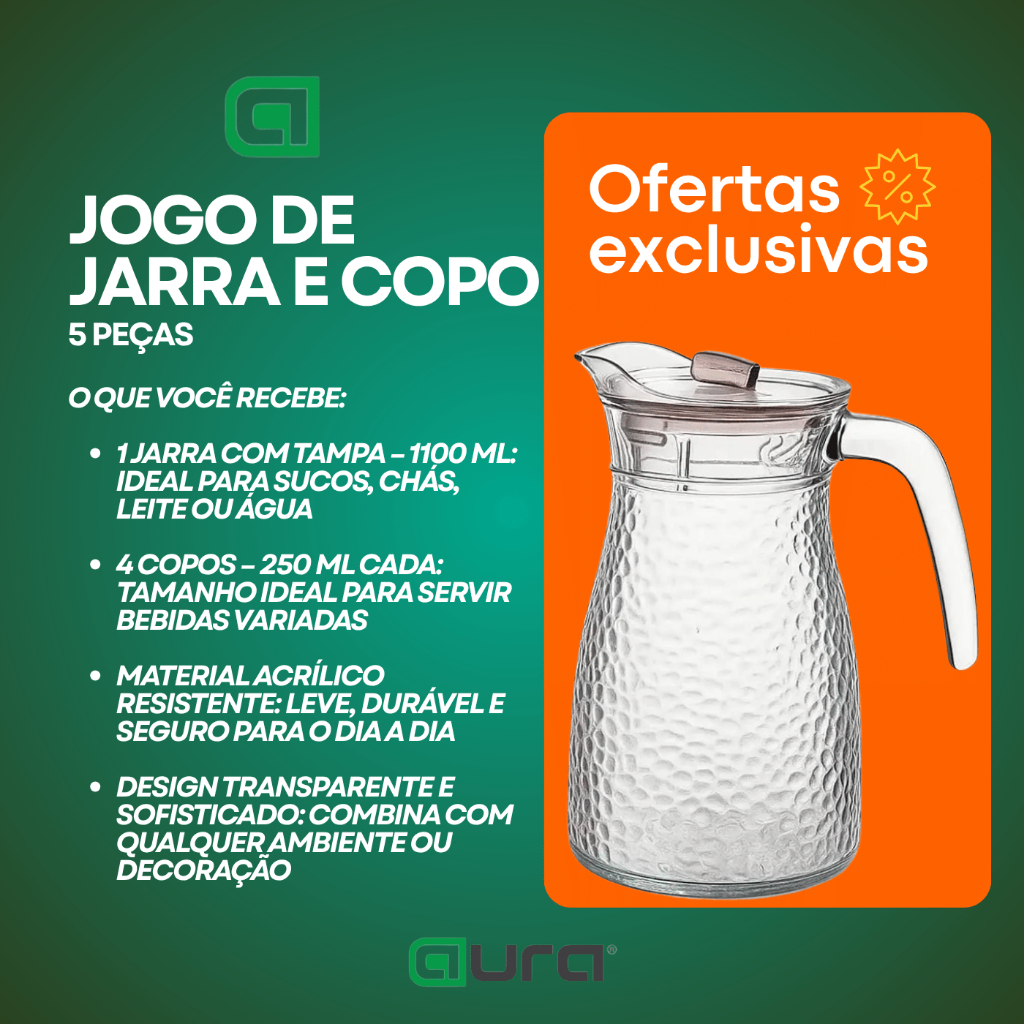 Conjunto Jogo Kit Jarra Copo De Vidro 5 Peças Suco Agua 1,1L