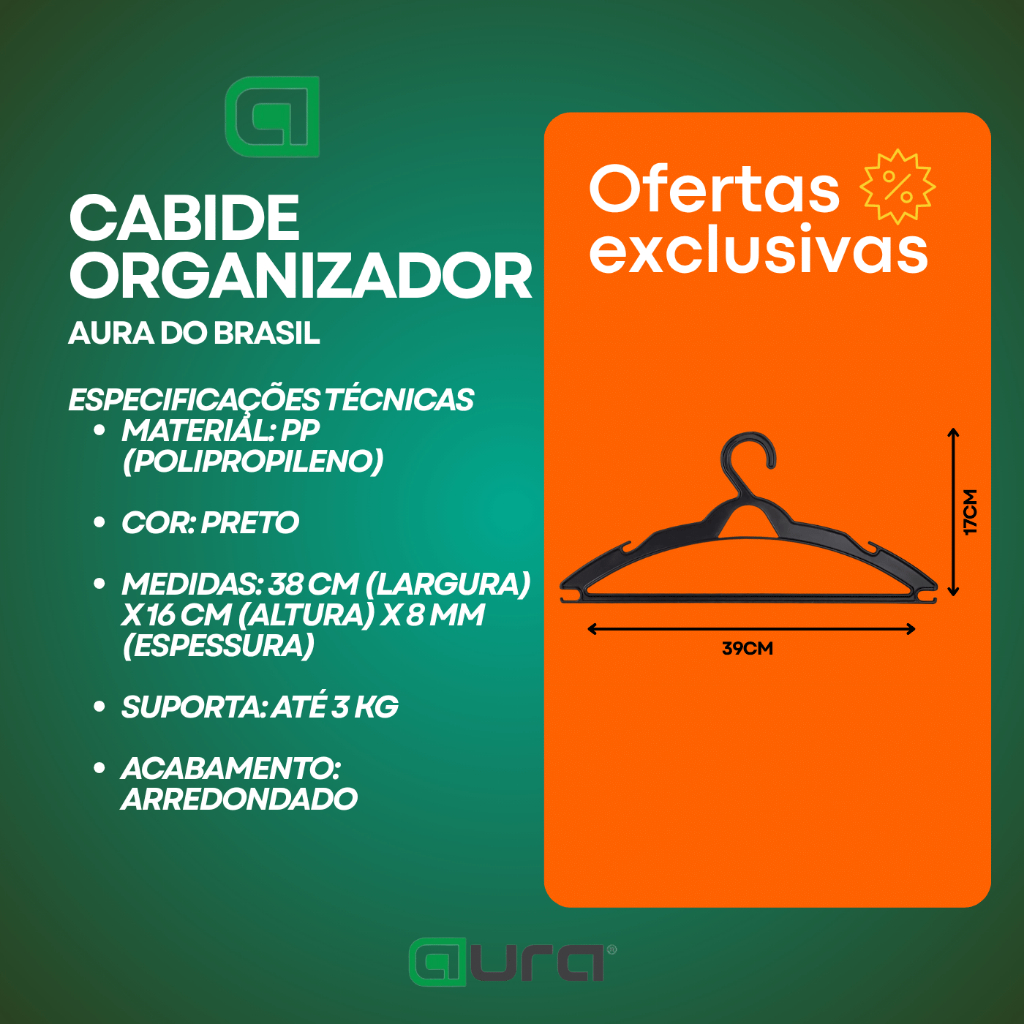 kit de Cabides Preto Adulto Aura do Brasil Achatado Reforçado