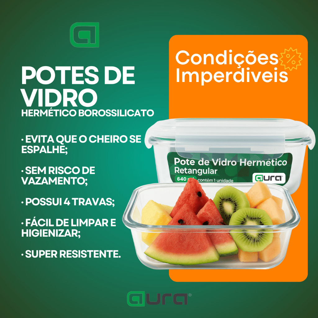 Conjunto 10 Potes 640ml Vidro Hermético Borossilicato 4 Travas Marmita