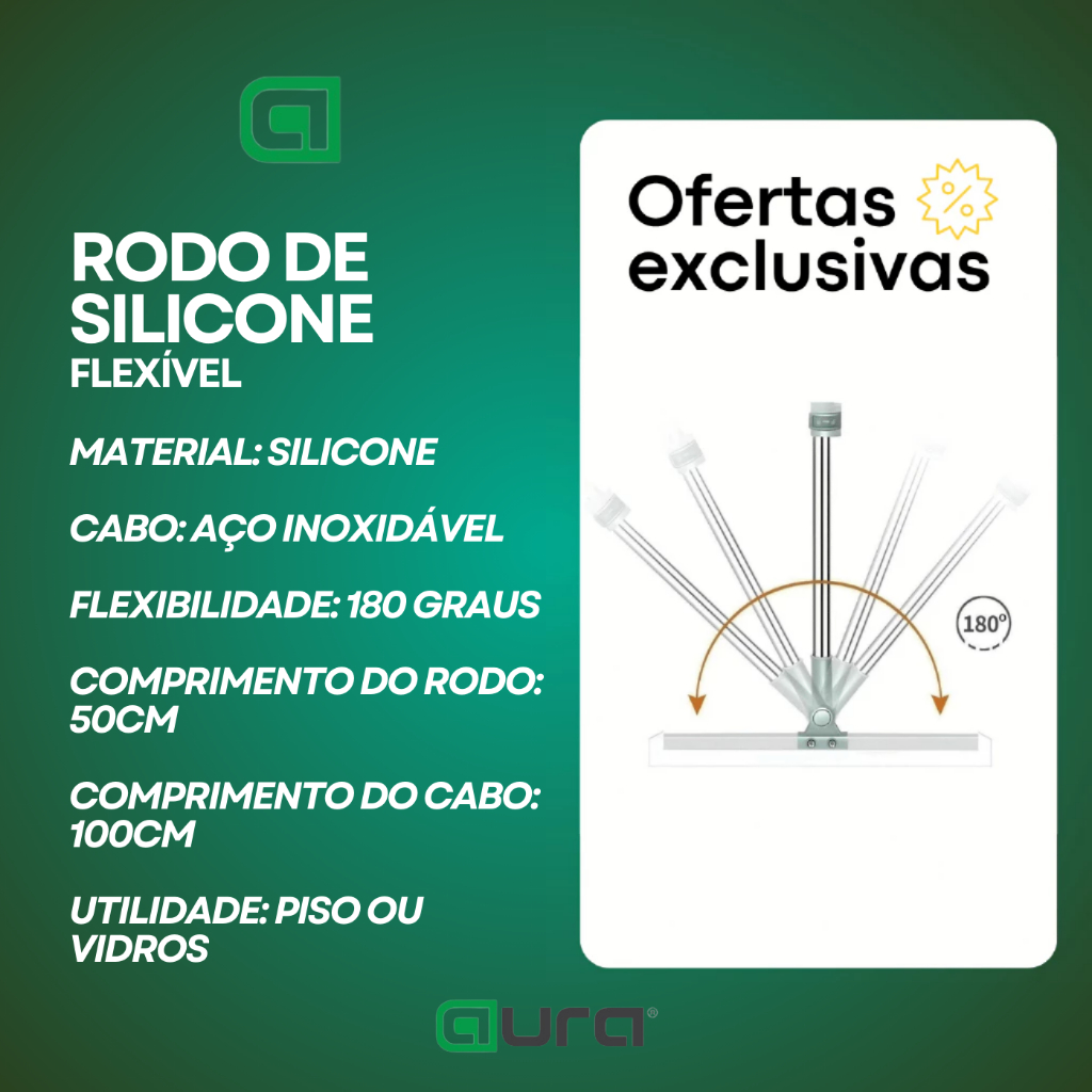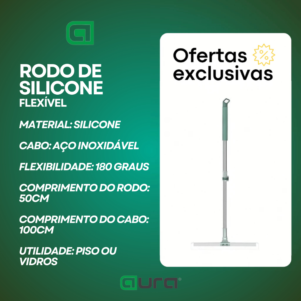 Rodo de Silicone Para Limpeza de Piso Vidros Com Gancho Secos e Molhados Uso Duplo Vassoura Mágica